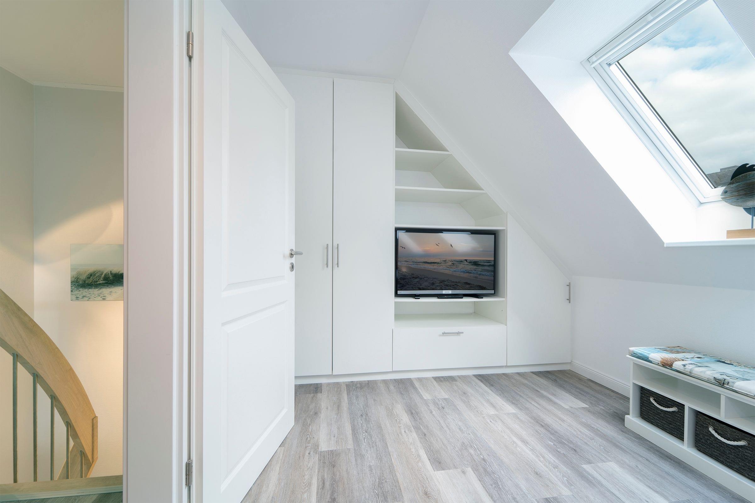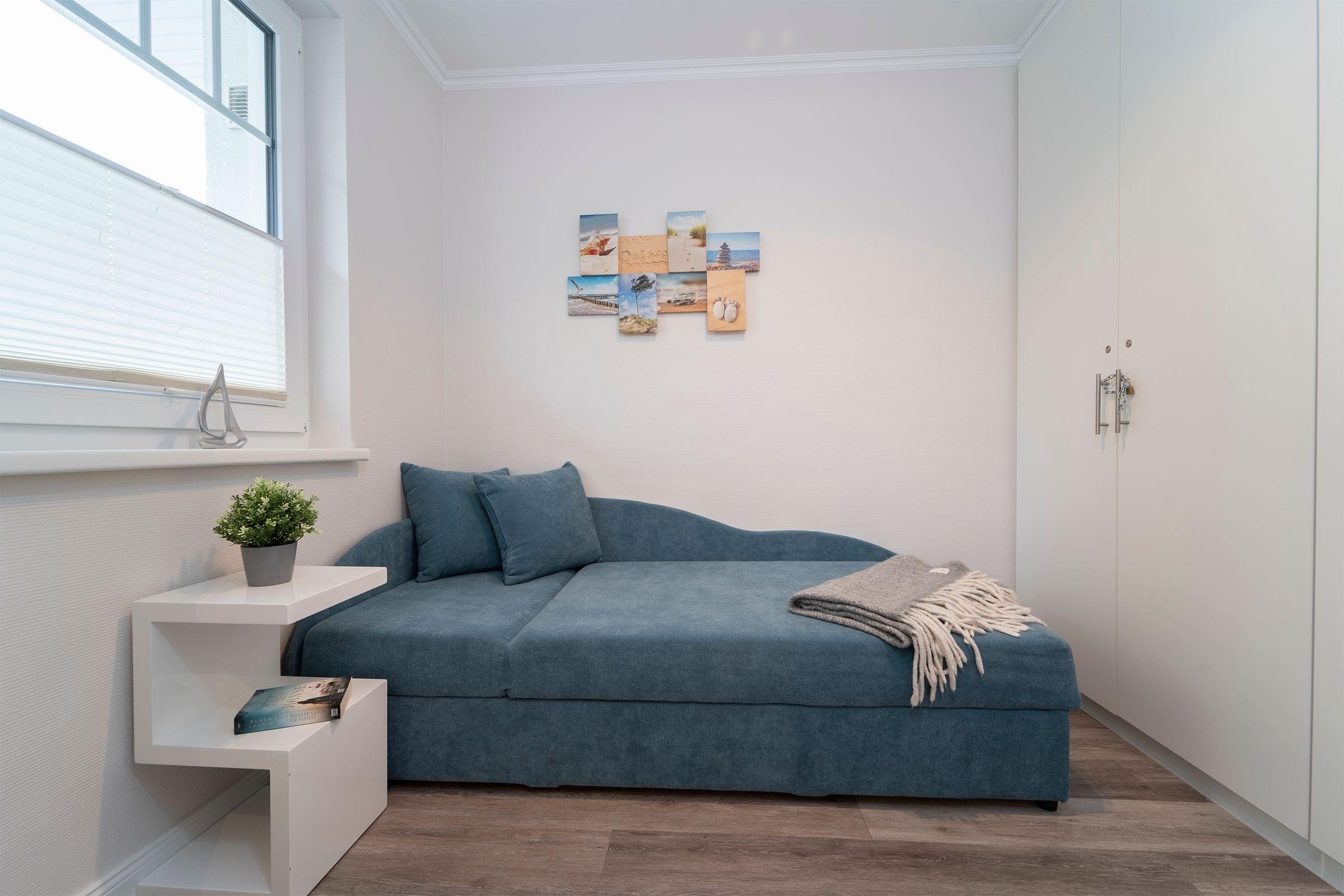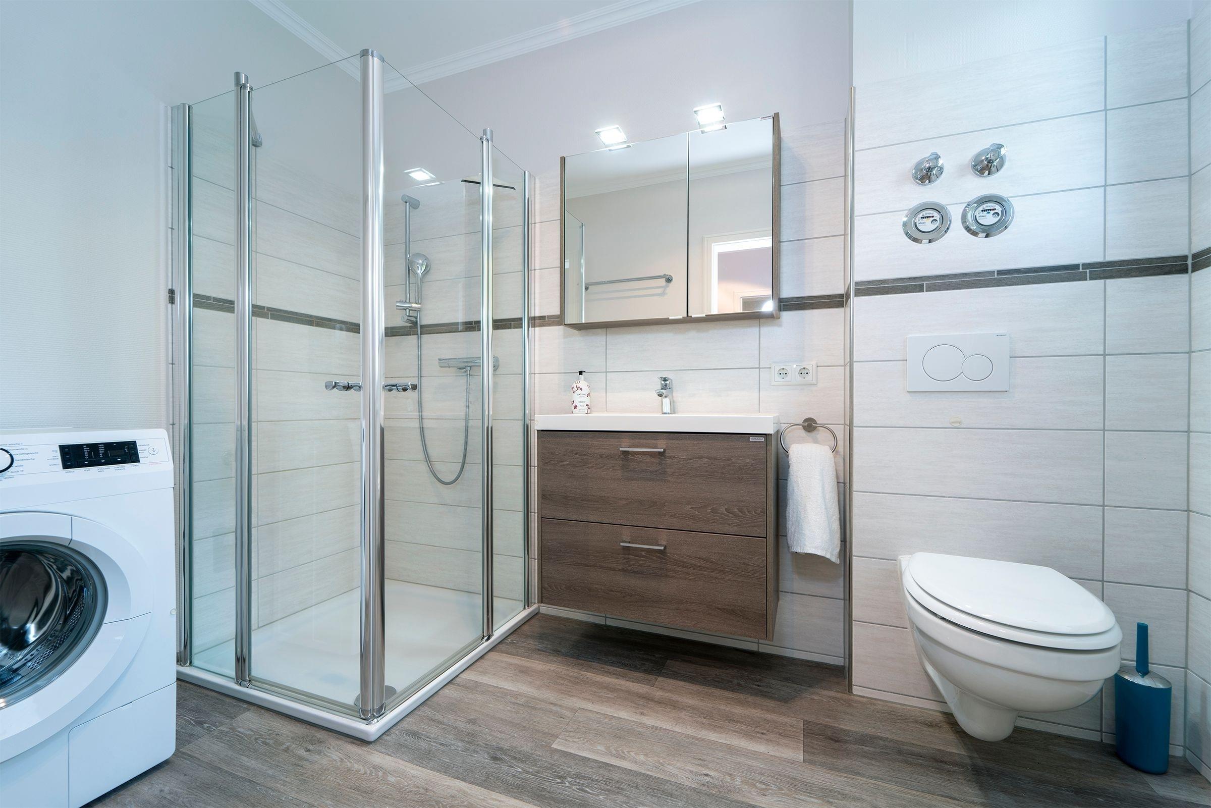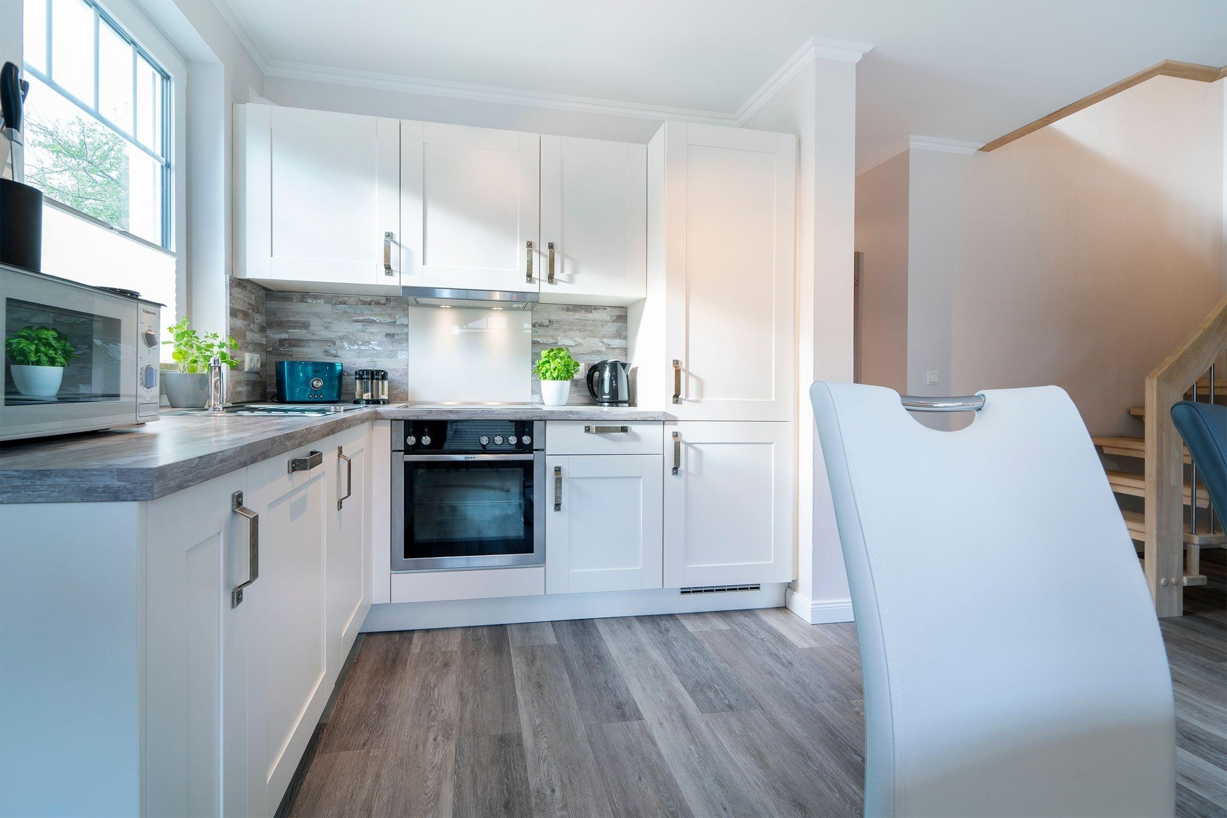 Im Erdgeschoss finden Sie ein helles, lichtdurchflutetes Wohnzimmer mit einer gemütlichen Sofalandschaft und einem modernen Flachbildfernseher. Im angrenzenden Essbereich trifft sich die ganze Familie um schöne Abende zu verbringen. In der komfortablen Küche bleiben keine Wünsche offen. Von der Spülmaschine, der Mikrowelle, einem Kühlschrank mit Gefrierfach und Backofen bis hin zum Wasserkocher und Toaster ist alles für Ihr perfektes Dinner vorhanden. Im Erdgeschoss steht ein Gästezimmer mit einem Einzelbett (Federkernmatratze, 90x200 cm) zur Verfügung. Auf gleicher Etage befindet sich ein Duschbad mit Waschbecken, WC und Waschmaschine gegen Gebühr. Das Haus verfügt über ein zweites, geräumiges Badezimmer mit Dusche und Sauna in der 1. Etage. Ebenfalls in der 1. Etage befinden sich zwei komfortable Schlafzimmer. Nach einem erlebnisreichen Urlaubstag finden Sie mit den hochwertigen Original ORTHOPÄDIKA Boxspring-Doppelbetten (180x200 cm bzw. 160x200 cm) problemlos Entspannung und Ruhe. In jedem Schlafzimmer befindet sich ein Einbauschrank und ein Flachbild-TV sowie Verdunklungsrollos.
