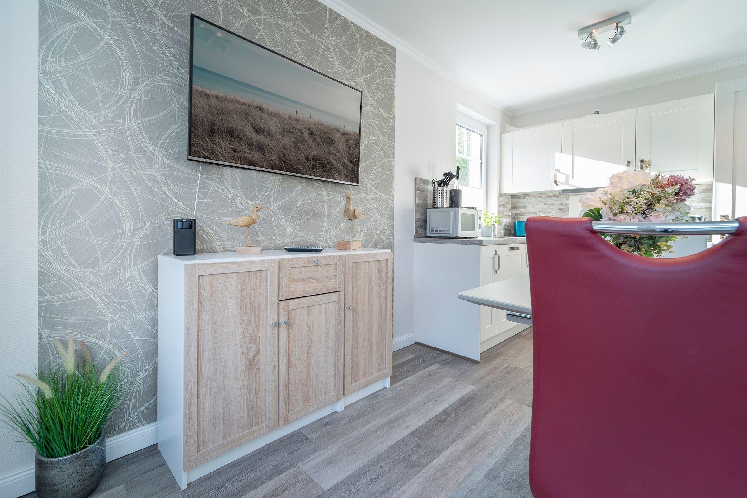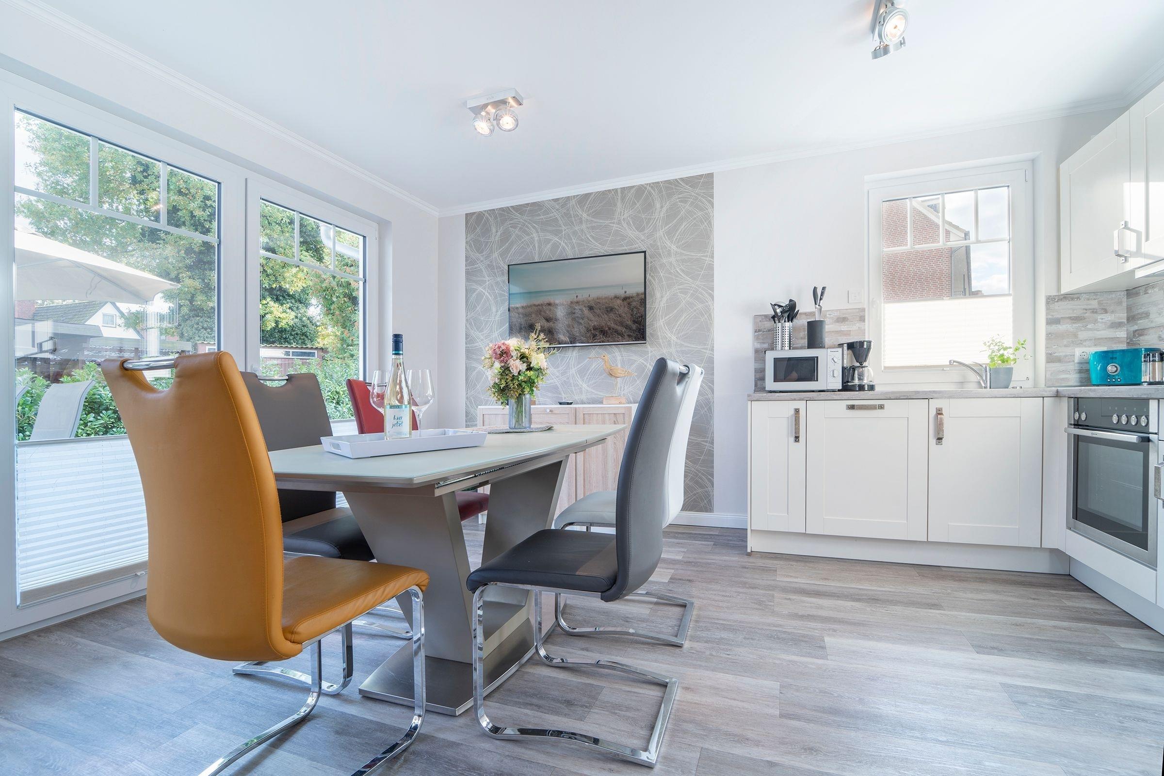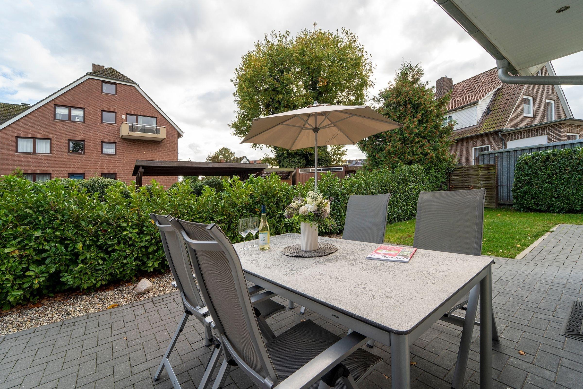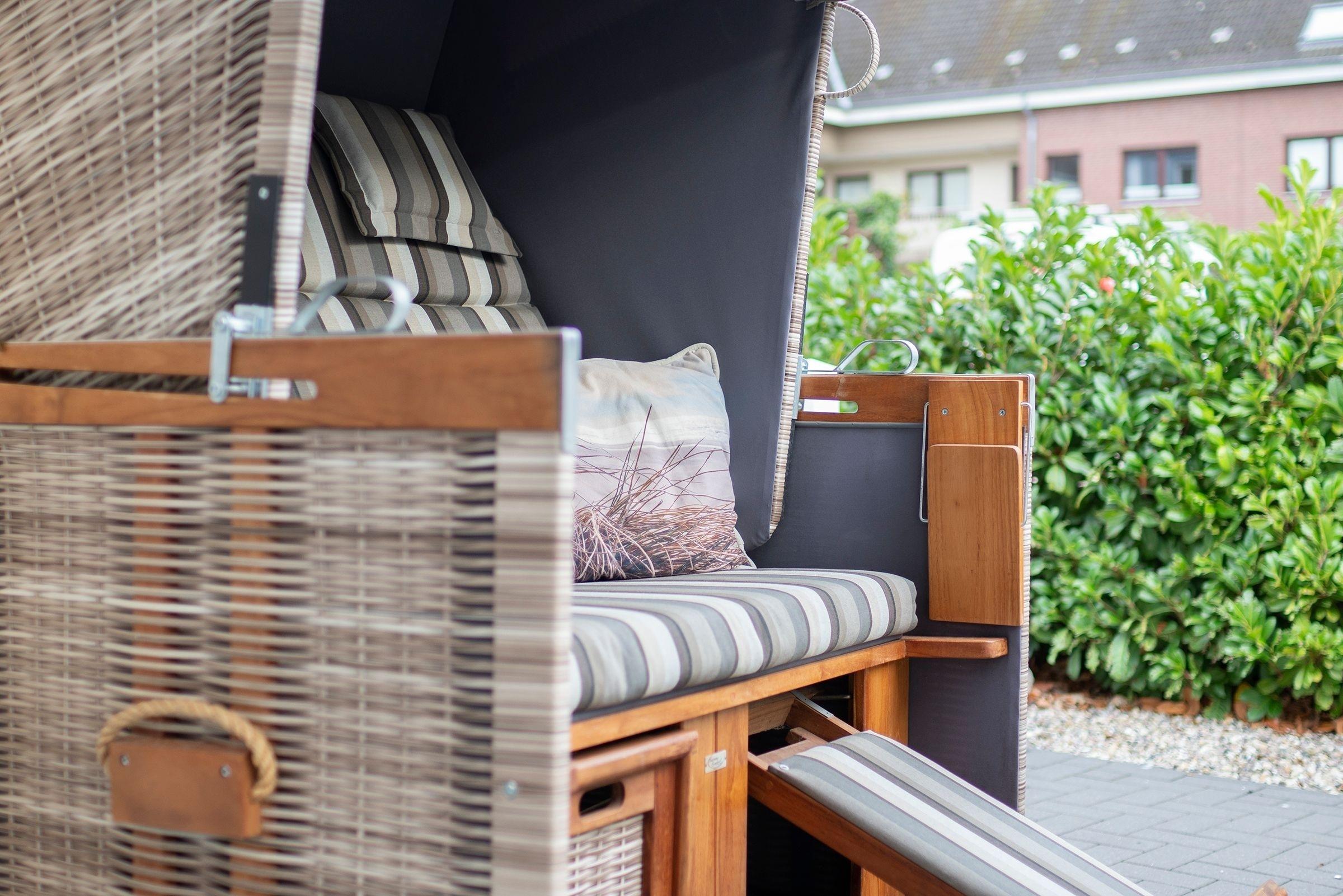 Für wohlige Wärme an kälteren Tagen sorgt die Fußbodenheizung im gesamten Haus. Alle Räumlichkeiten im Parterre verfügen über Außenrollläden. Die große, teilüberdachte Terrasse mit hochwertigen Gartenmöbeln und Strandkorb lädt Sie zum Verweilen in der Sonne ein. Zusätzlich als kleines Extra steht Ihnen ein Kinder-Hochstuhl zur Verfügung. Um auch immer up to date zu sein können Sie gern den kostenfreien WLAN Zugang nutzen.