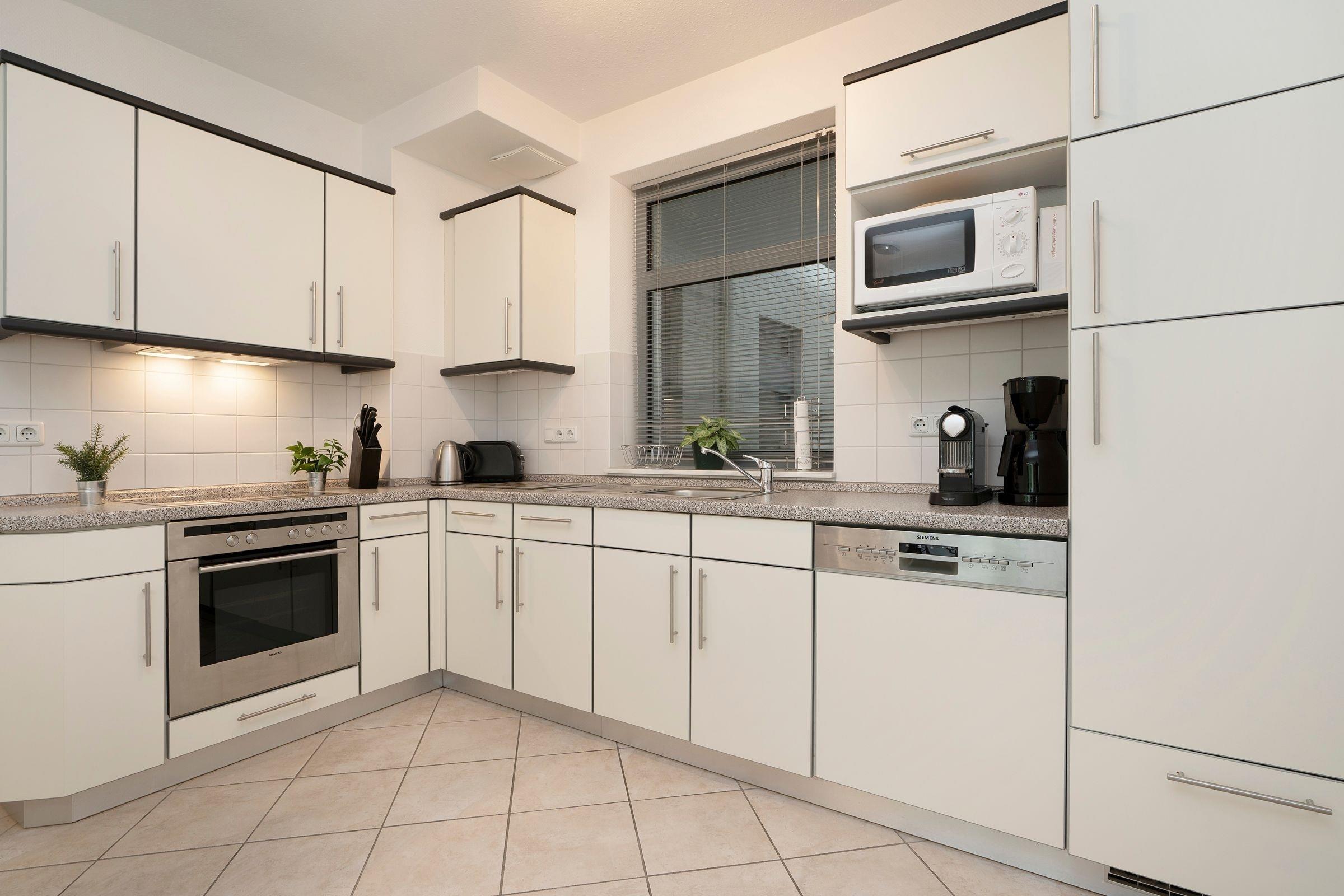 Genießen Sie den traumhaften Meerblick vom Balkon - Dank der Überdachung können Sie den Balkon auch bei nicht so gutem Wetter gemütlich und geschützt nutzen. Das geschmackvoll ausgestattete Wohnzimmer mit kuscheliger Sofalandschaft bietet zudem viel Platz zum Entspannen. Der Flachbildschirm und die Stereo-Anlage mit CD-Player sowie ein Design- Bluetooth Lautsprecher ermöglichen Ihnen die passende Urlaubsunterhaltung. Bereiten Sie in der gut ausgestatteten Küche Ihre Lieblingsspeisen zu oder genießen Sie einen Kaffee aus der Kapselmaschine. Das Schlafzimmer mit Doppelbett (2x 90x200 cm) sowie ein weiteres Schlafzimmer mit einem Einzelbett (90x200 cm) und einem zweiten Flachbildschirm-Fernseher garantieren erholsame Nächte. Einen guten Start in den Morgen ermöglicht das gepflegte Badezimmer mit Dusche, WC sowie zwei Waschbecken.