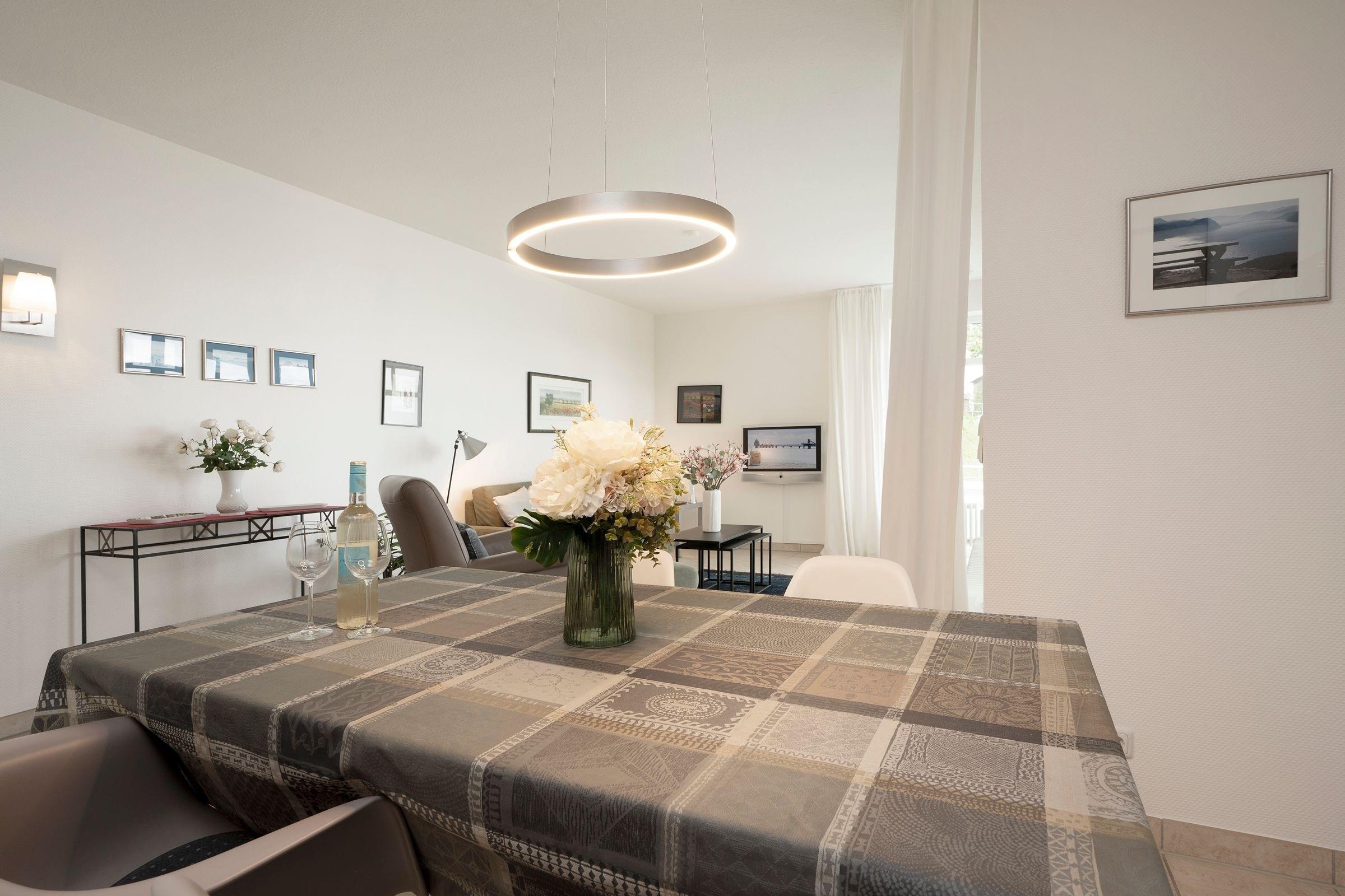 Eine traumhafte und großzügig geschnittene 3-Zimmer-Wohnung der gehobenen Klasse in herrlicher Lage, nur 3 Gehminuten vom Strand entfernt,100% Seeblick und großer Süd-Ostbalkon in der Nähe des Yachthafens ermöglichen Ihnen hier den perfekten Urlaub.