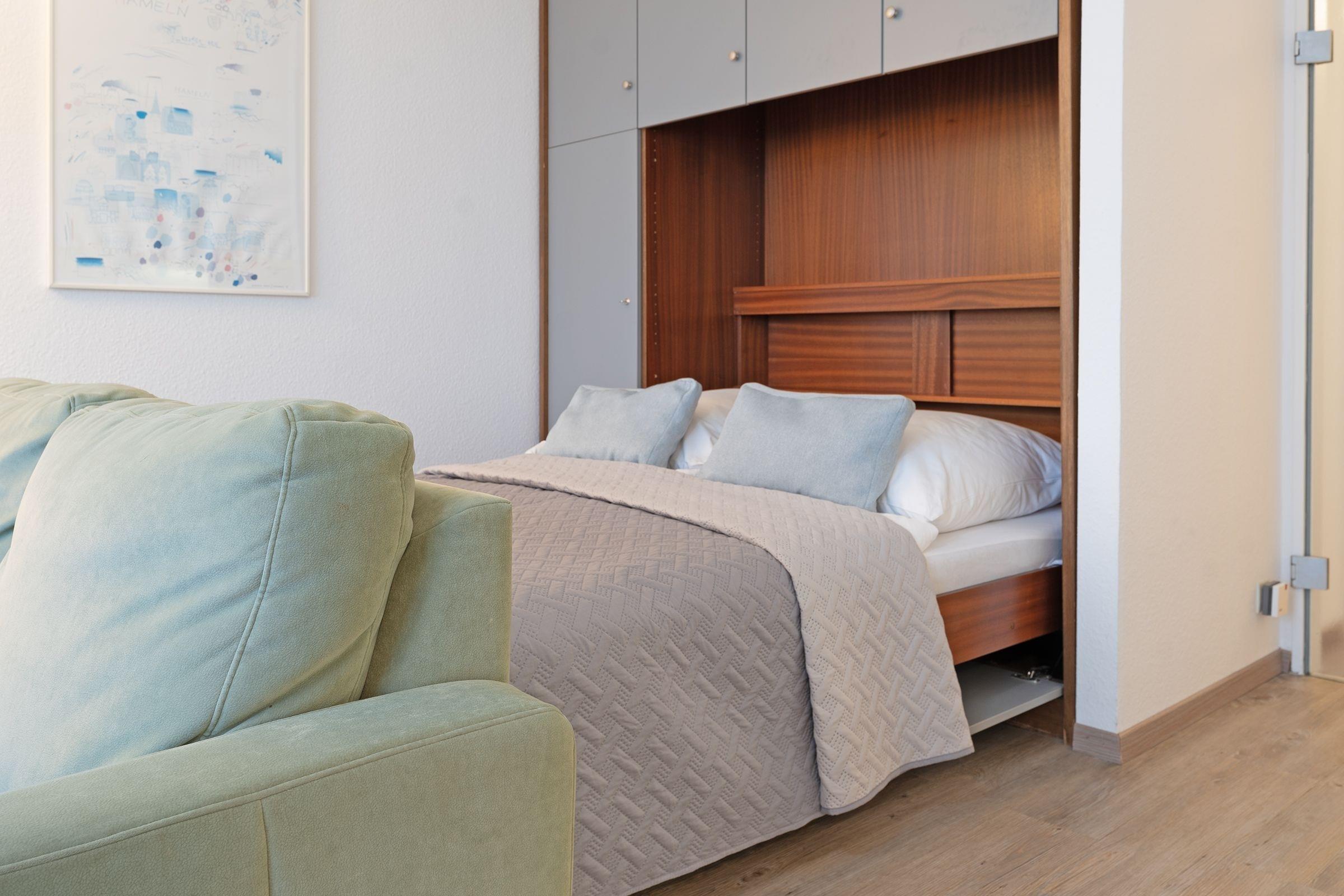 Wohnzimmer: 1 Schrankbett (2x 70x200 cm), Verdunkelung: Vorhänge