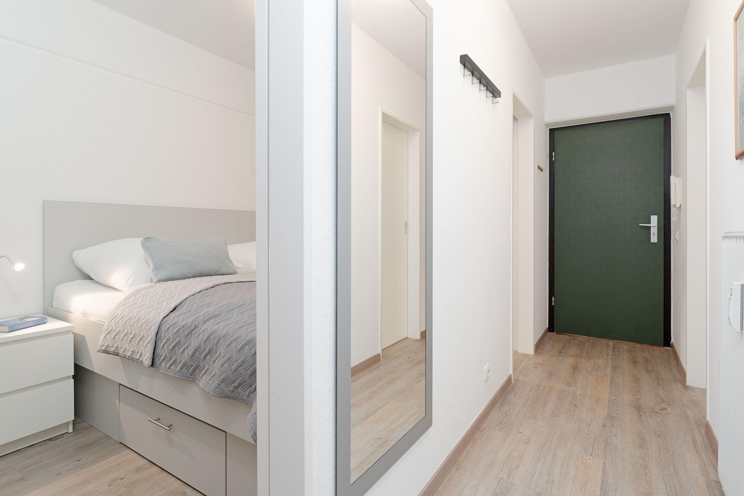 Die Wohnung erreichen Sie bequem mit dem Fahrstuhl, über eine Übergangsbrücke können Sie die Wohnung auch mit dem Rollstuhl befahren. Ihr helles und freundliches Feriendomizil umfasst 3 Zimmer, davon 2 separate Schlafzimmer und verfügt über eine Wohnfläche von ca. 55m², somit bietet es ausreichend Platz für bis zu 4 Personen.