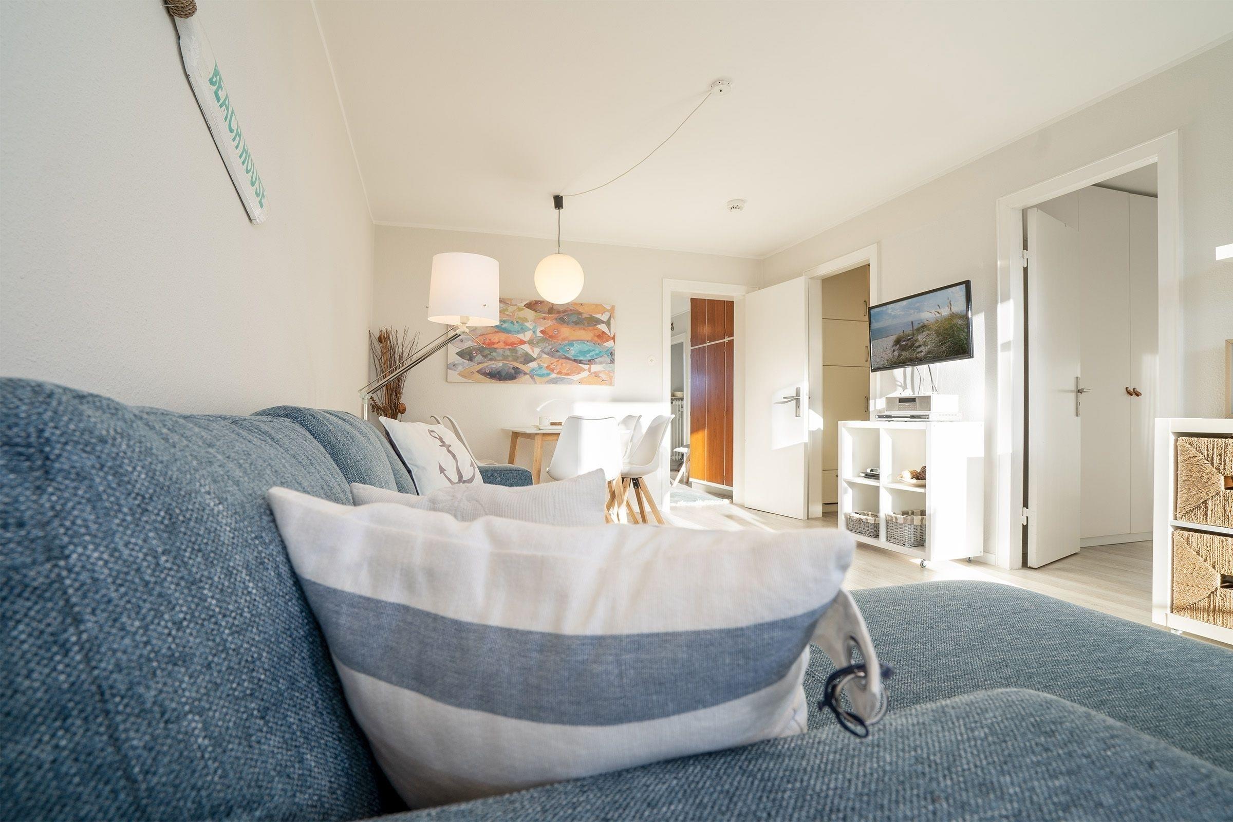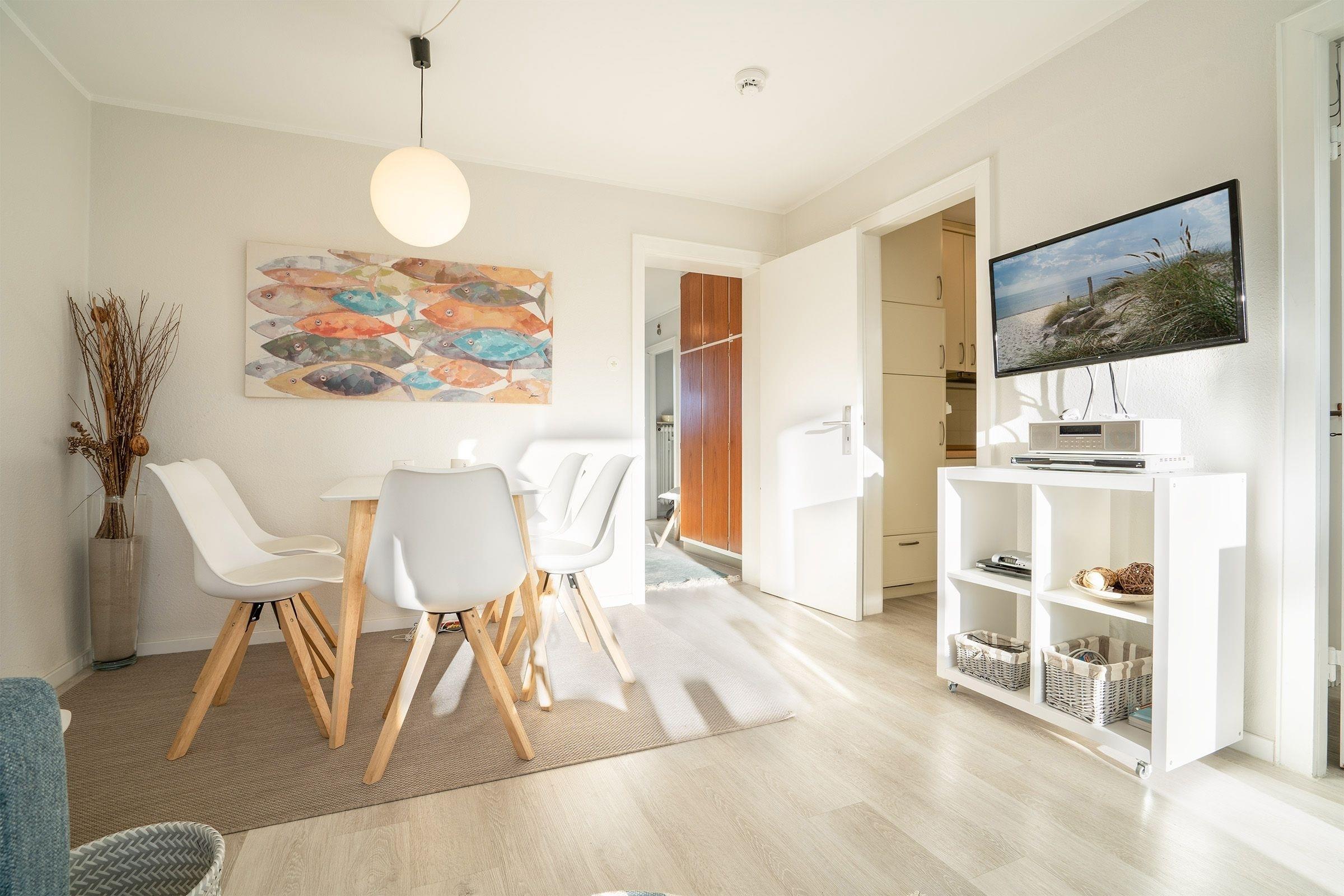 Diese geschmackvolle 3-Zimmer-Ferienwohnung umfasst eine Wohnfläche von ca. 58 m² und bietet mit 2 Schlafzimmern, offen gestaltetem Wohnbereich, separater Küche, Duschbad und Balkon ausreichend Platz und Komfort für bis zu 3 Erwachsene und 2 Kinder.