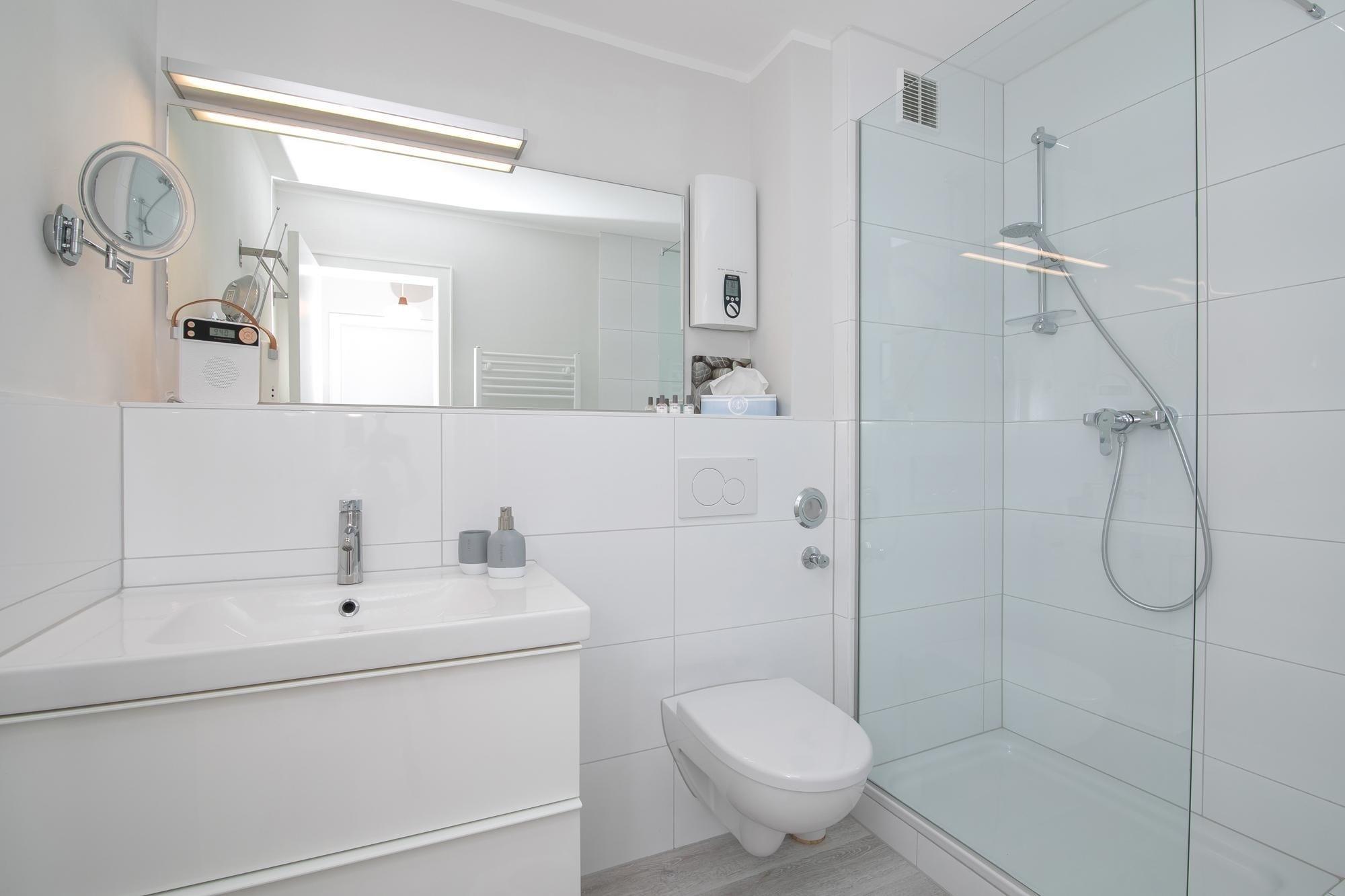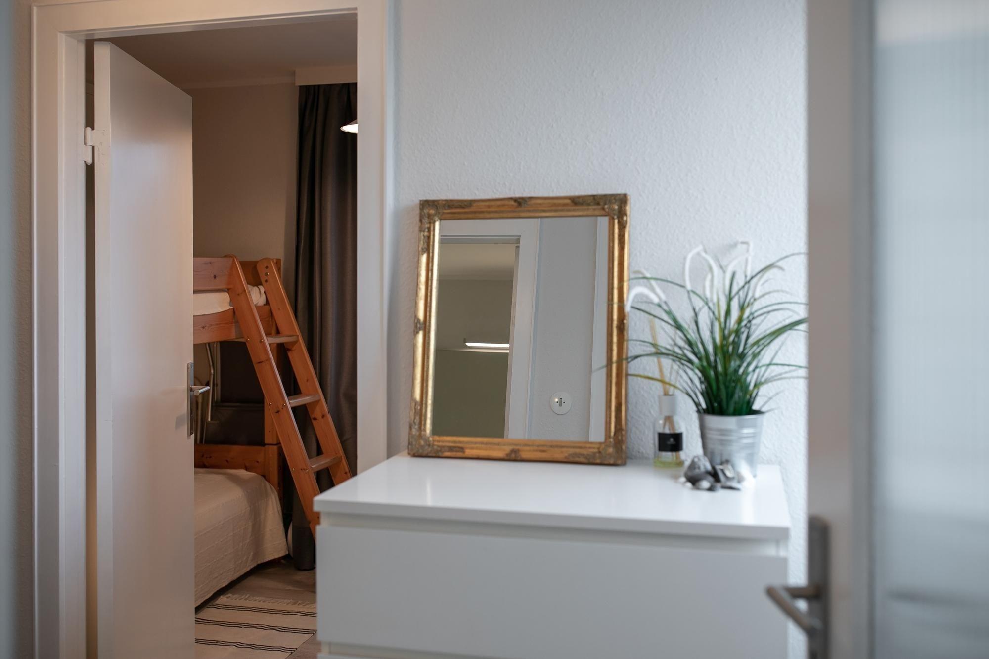 Die separate Küche ist mit Annehmlichkeiten wie Mikrowelle, Backofen und Kühlschrank mit Gefrierfach gut ausgestattet, die Spülmaschine erleichtert den Urlaubsalltag. Ein Schlafzimmer sorgt mit bequemem Doppelbett (2x 80x200 cm) für erholsame Nächte, ein weiteres Schlafzimmer verfügt über ein Etagenbett (je 90x200 cm), sowie ein Einzelbett (90x200 cm). Die Badezimmereinrichtung ist mit praktischer Handtuchheizung und bodentiefer Dusche anspruchsvoll gestaltet. Vom lichtdurchfluteten Wohnbereich mit gemütlicher Sofaecke und TV führt ein direkter Zugang auf den möblierten Balkon, von dem aus Sie einen seitlichen Blick auf die schimmernde Ostsee genießen können. Der WLAN-Anschluss ist für Sie inklusive.