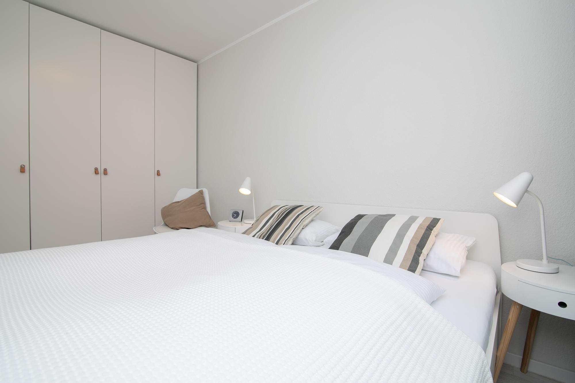 Schlafzimmer 1: 1 Doppelbett (2x 80x200 cm), Kleiderschrank, blickdichte Vorhänge