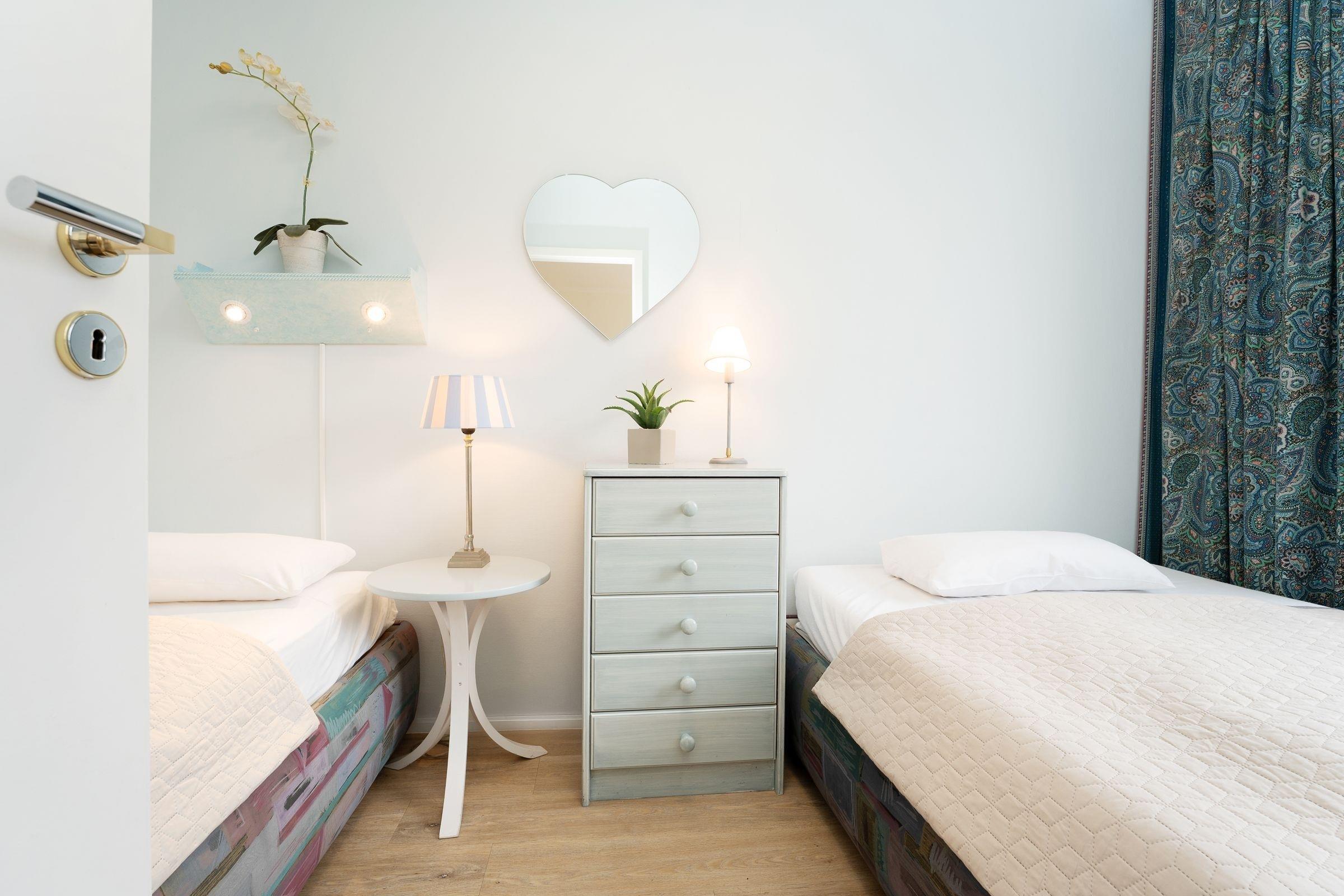 Schlafzimmer: 2 Einzelbetten (90x200 cm), Verdunkelungsvorhänge