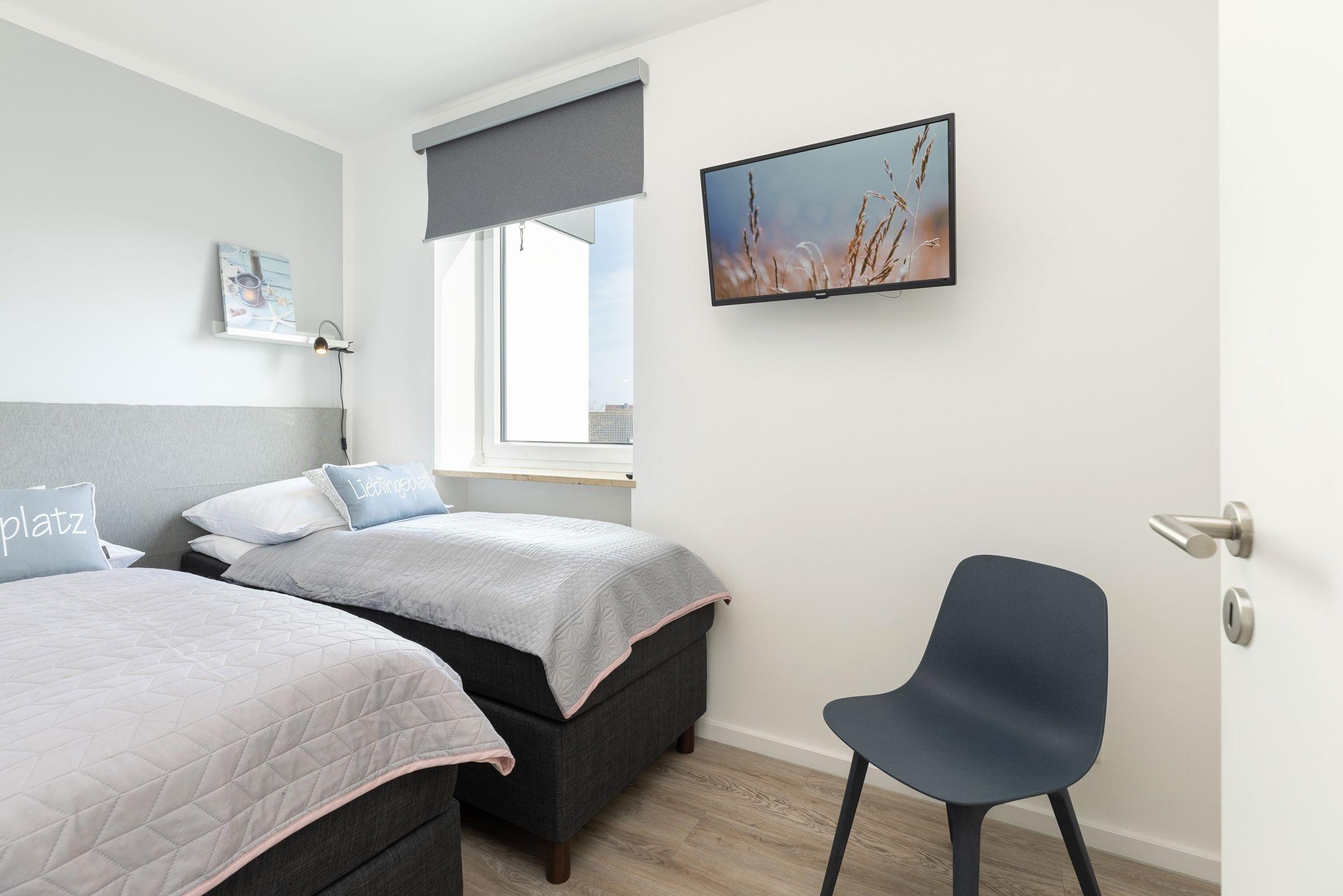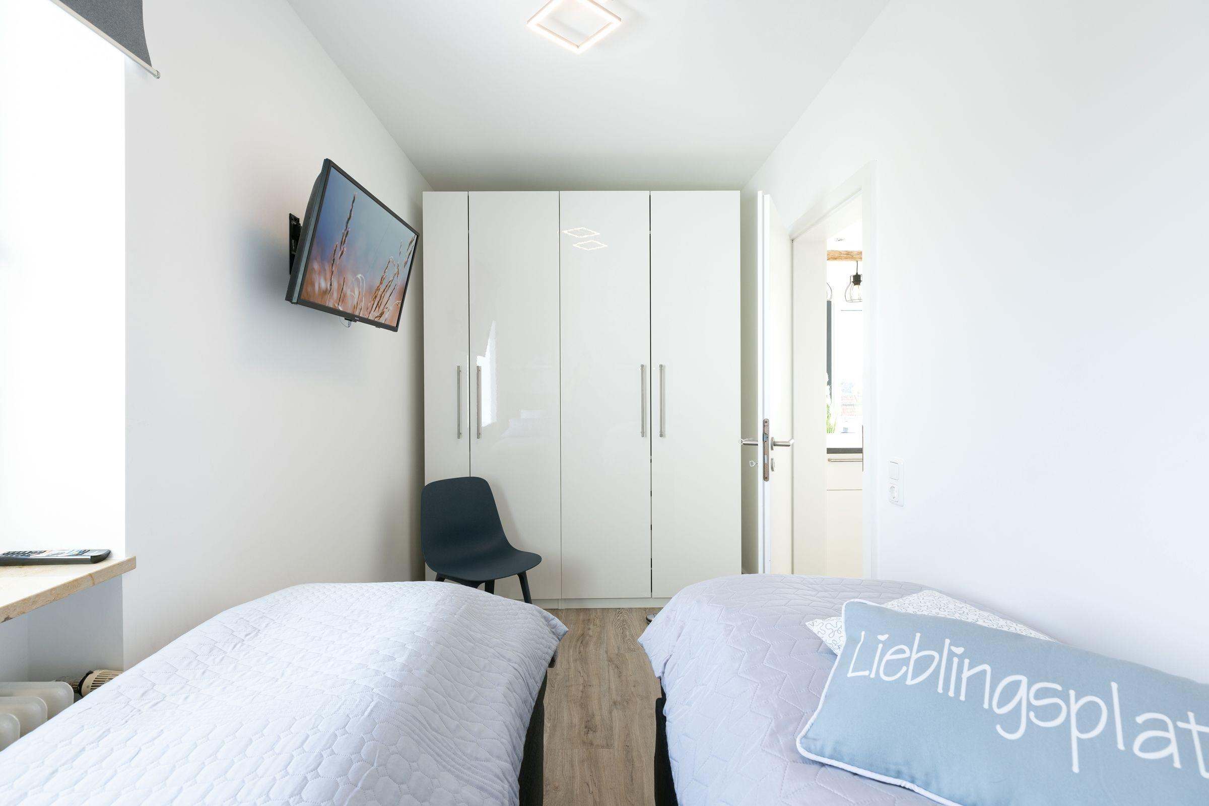 Schlafzimmer: 2 Einzel-Boxspringbetten (2x 80x200 cm), TV, Kleiderschrank