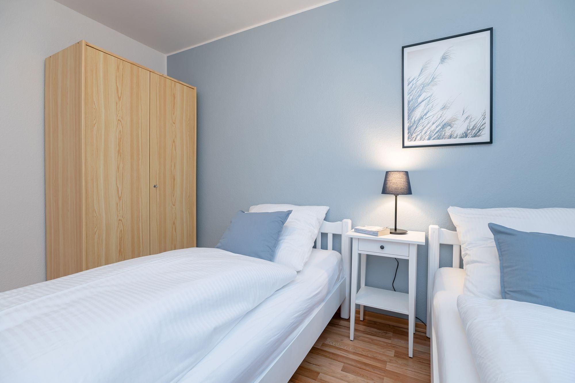 2. Schlafzimmer: 2 Einzelbetten (je 90x200 cm), Kleiderschrank