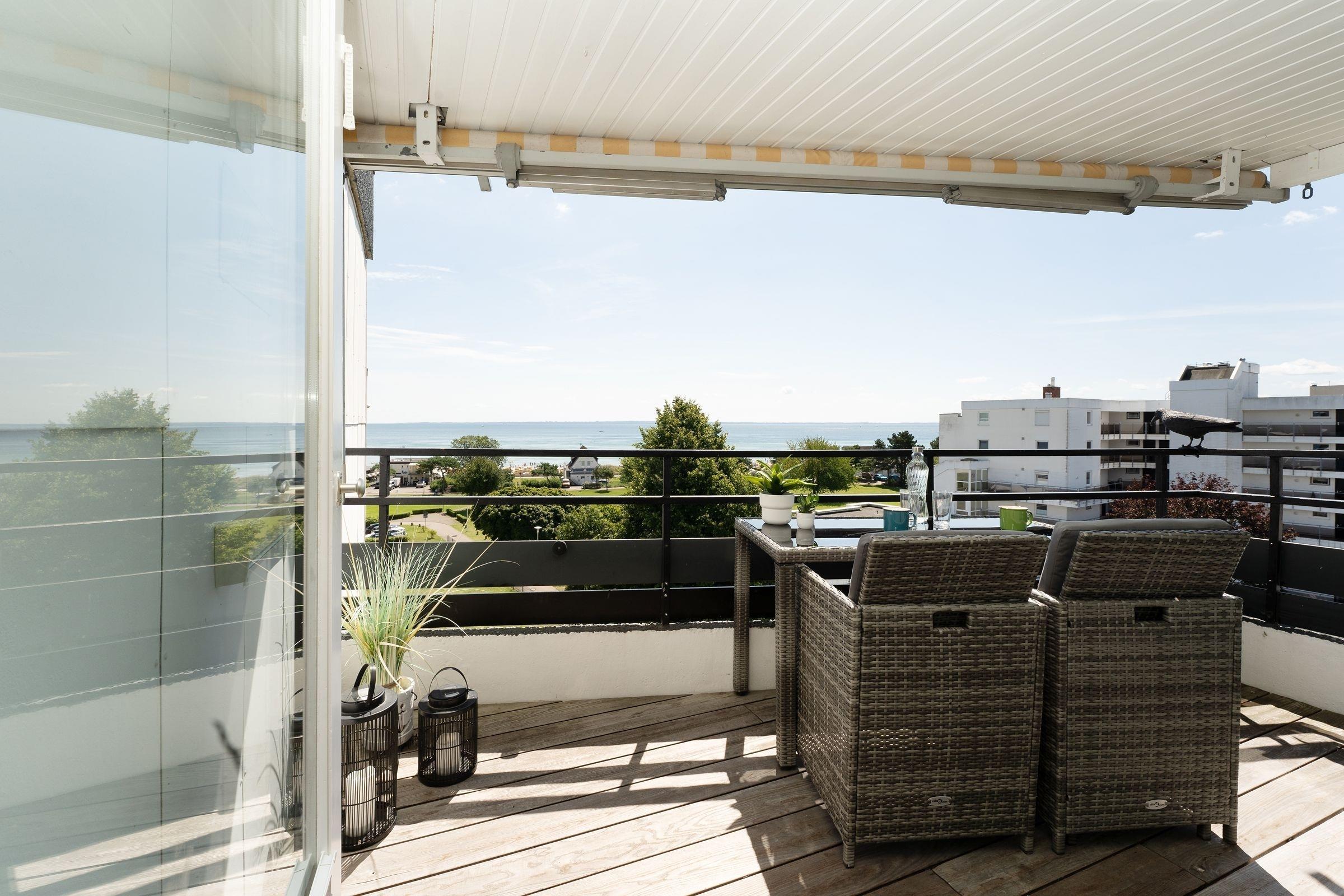 Genießen Sie den einzigartigen Ausblick auf die Ostsee beim Frühstück vom überdachten Balkon aus oder lassen Sie den Tag bei einem Glas Wein vor dem Panoramafenster ausklingen. Der traumhafte Blick auf das Meer lässt den Alltag zu jeder Jahreszeit schnell vergessen ...
