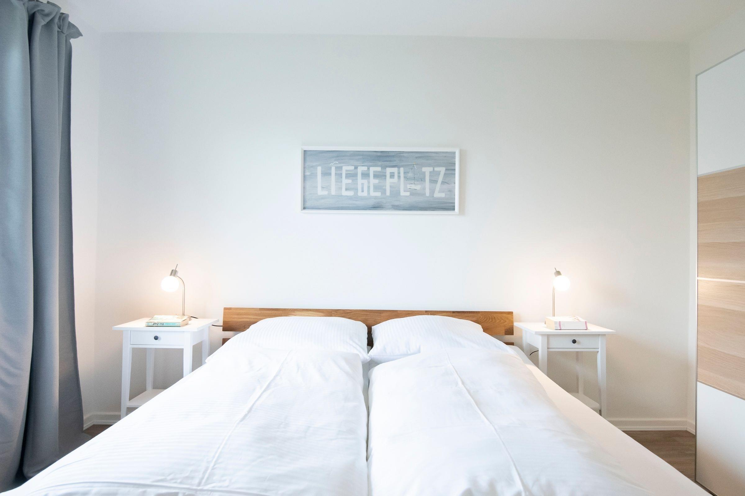 Schlafzimmer: 1 Doppelbett (2 x 90x200 cm), Gardinen