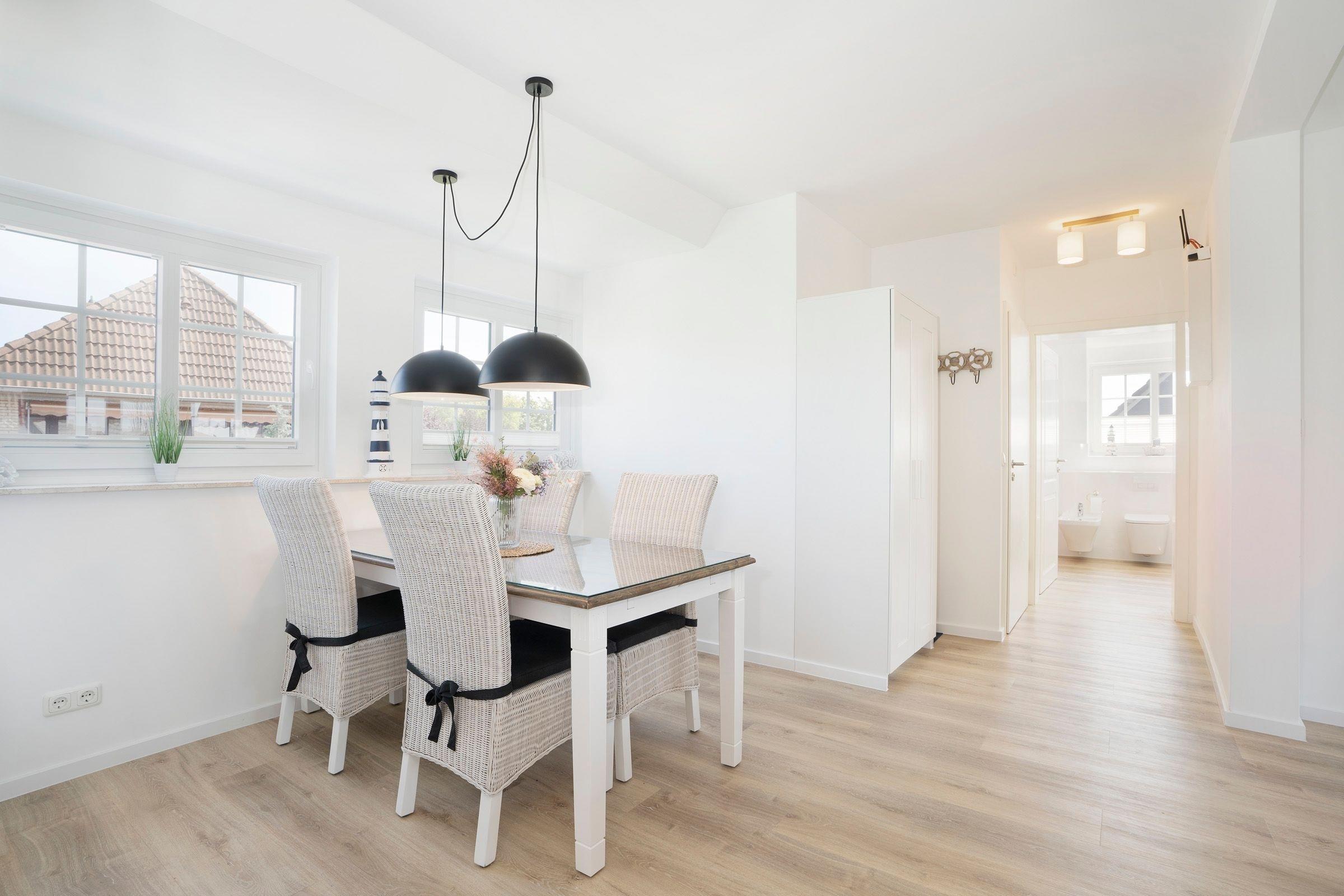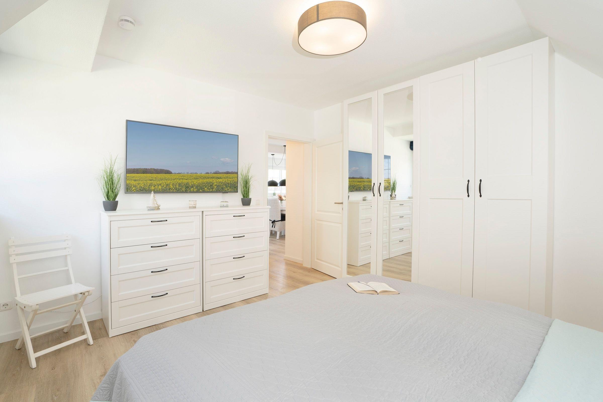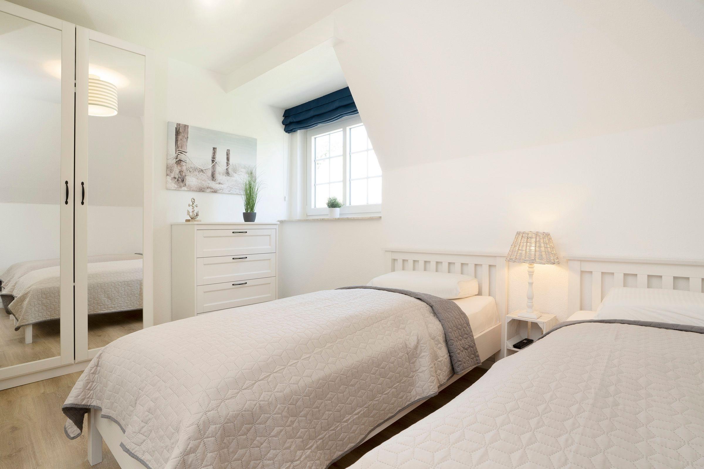 Der kombinierte Wohn- und Essbereich mit großem Esstisch und gemütlichem Ecksofa grenzt an die offene und moderne Küche mit Induktionsherd und Nespresso Kapselmaschine. Von hier aus gelangen Sie auch auf den nach Süd-Westen ausgerichteten Balkon mit eigenem Strandkorb. Wellness im Urlaub ist in dieser Wohnung garantiert! Sie können lange Strandtage in der Whirlwanne oder in der eigenen Sauna (120x200 cm) im Badezimmer ausklingen lassen. Für musikalische Unterhaltung sorgt eine WLAN-Sonos-Musikbox. Zur Erholung stehen außerdem zwei separate Schlafzimmer mit Smart-TV, einem großen Kleiderschrank und Verdunkelungsmöglichkeiten zur Verfügung - eines mit einem Doppelbett (2x 90x200cm) und eines mit zwei Einzelbetten (je 90x200cm).