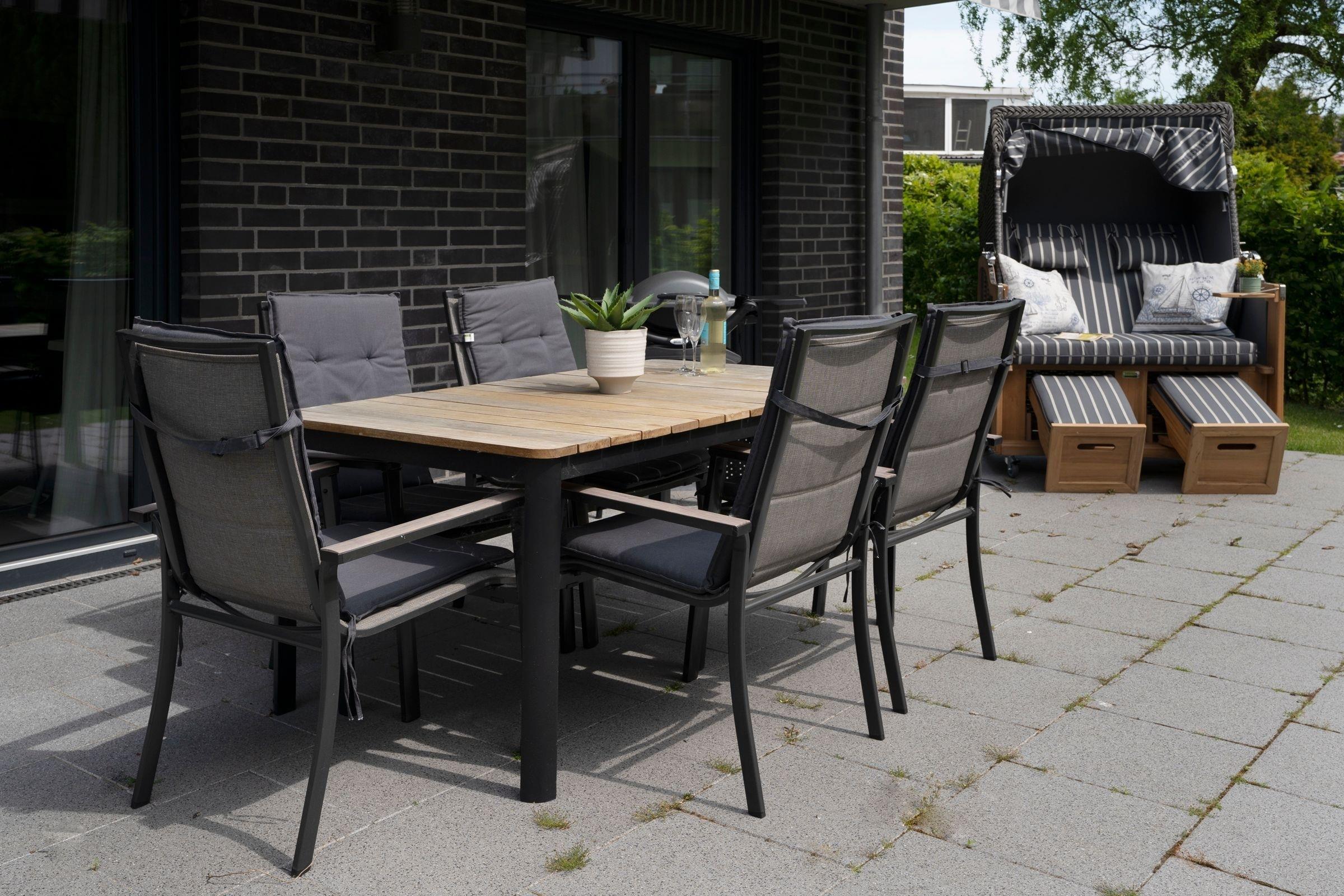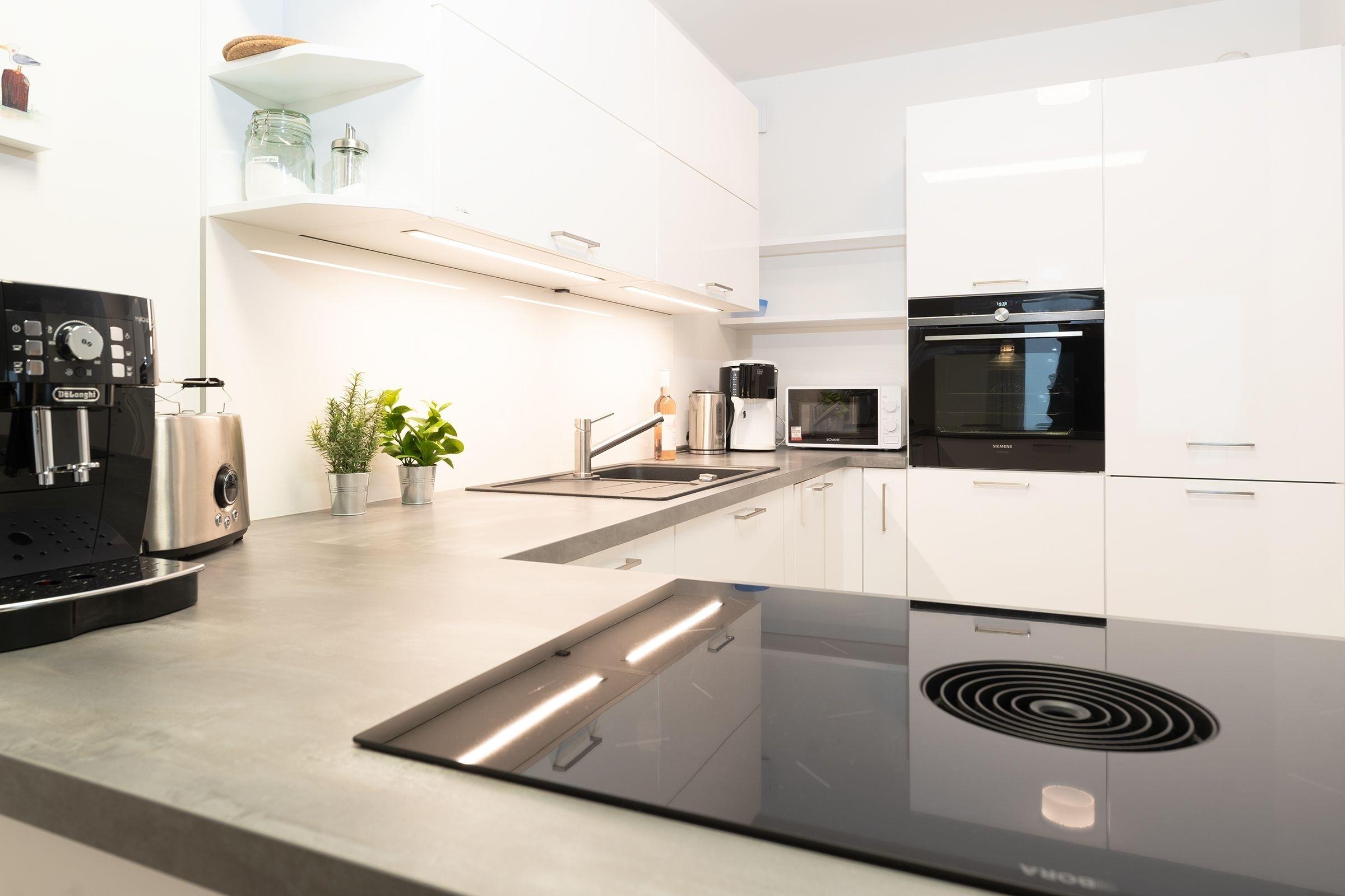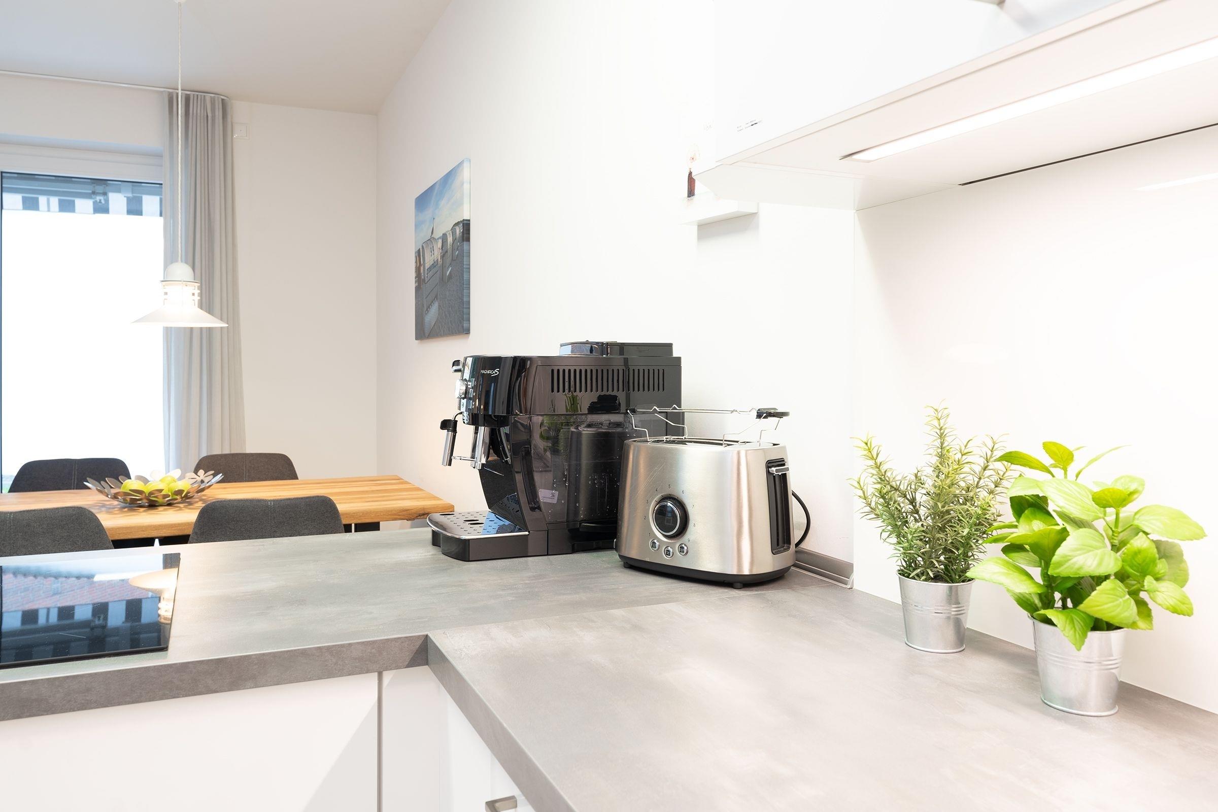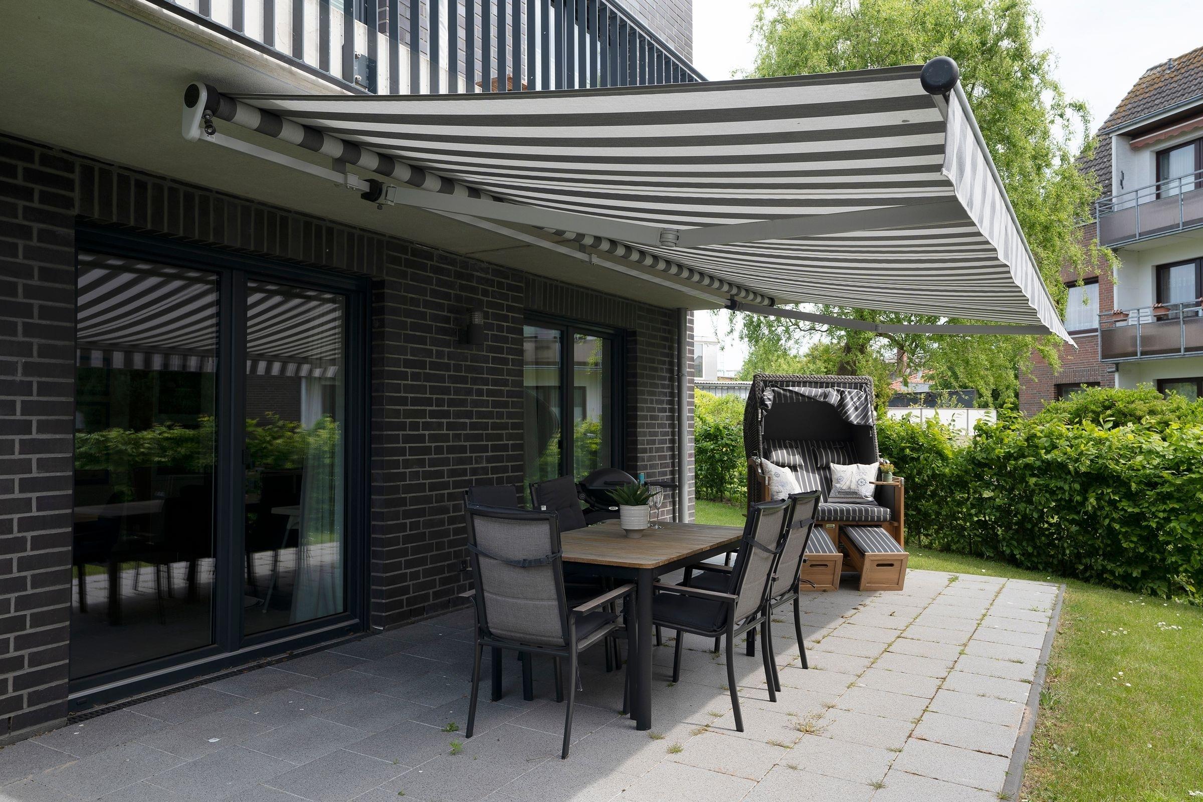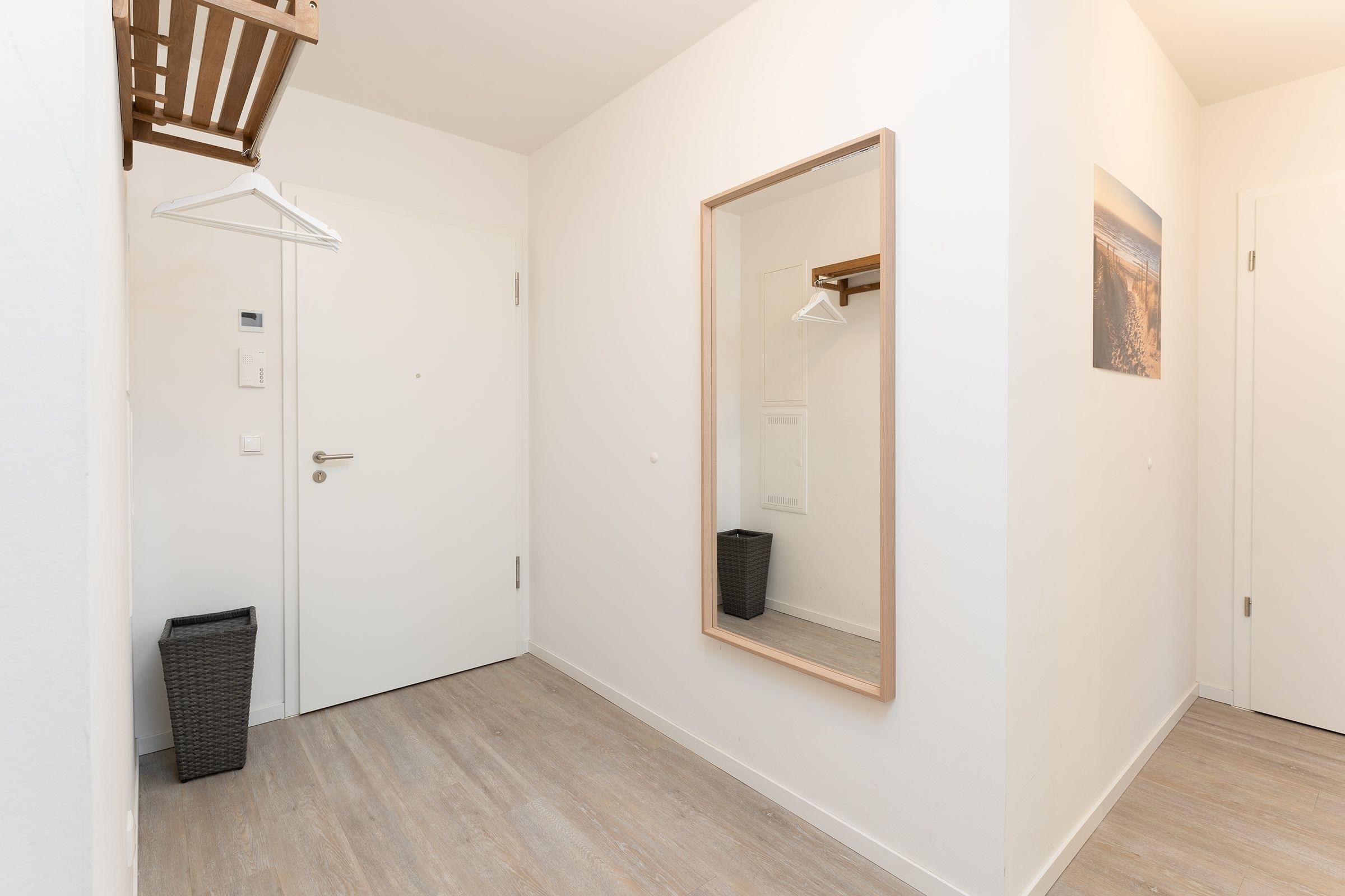 Ein offen und modern gestalteter Wohnbereich bildet das Zentrum Ihres Urlaubsreiches. Von dort aus gelangen Sie auf die Sonnenterrasse inklusive eigenem Strandkorb, Elektrogrill und großzügigem Garten. Das Wohnzimmer bietet mit HiFi - Anlage und Smart TV gute Unterhaltung, während in der offenen Wohnküche das Abendessen auf dem Induktionsherd köchelt. Das Schlafsofa lässt sich ausklappen und als Bett (150x200cm) für eine Einzelperson nutzen. Die weiteren Gäste verteilen sich auf die beiden Schlafzimmer, die jeweils über einen Kleiderschrank, elektrische Außenjalousien und ein großes Doppelbett (2x 90x200cm) verfügen. Als weitere Räume finden Sie hier einen Abstellraum, ein separates Gäste-WC, sowie das Tageslichtbad mit ebenerdiger Dusche und beheizbarem Handtuchhalter. Besonderen Komfort bietet die Fußbodenheizung in der gesamten Wohnung.