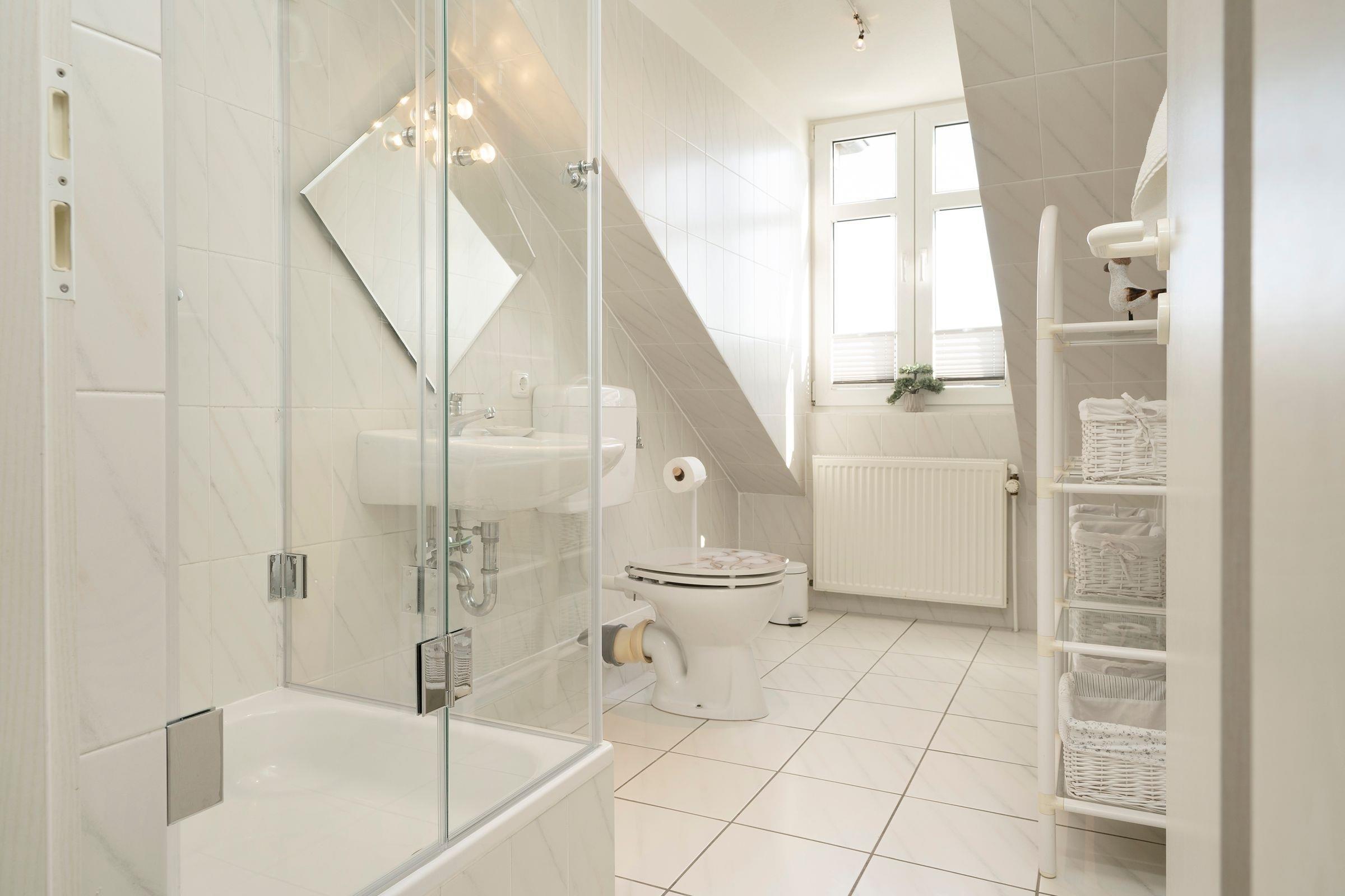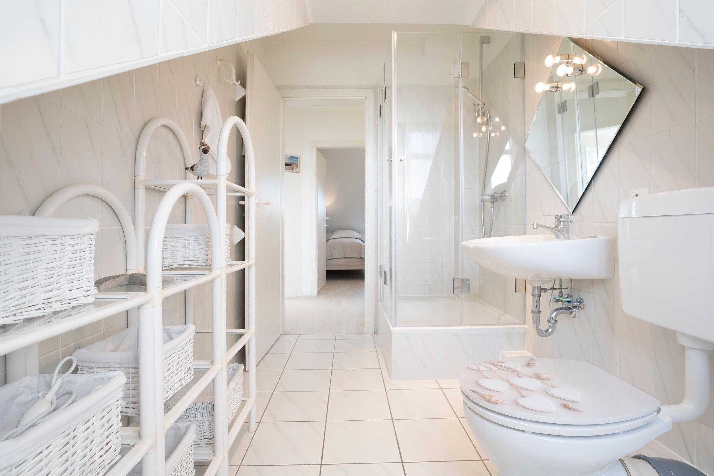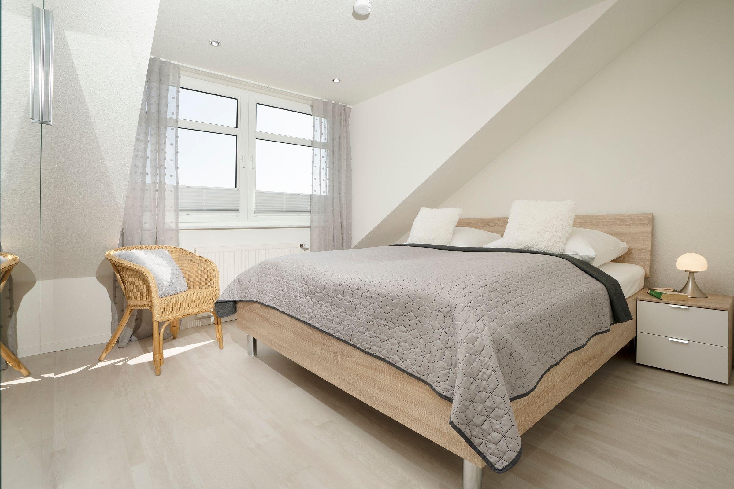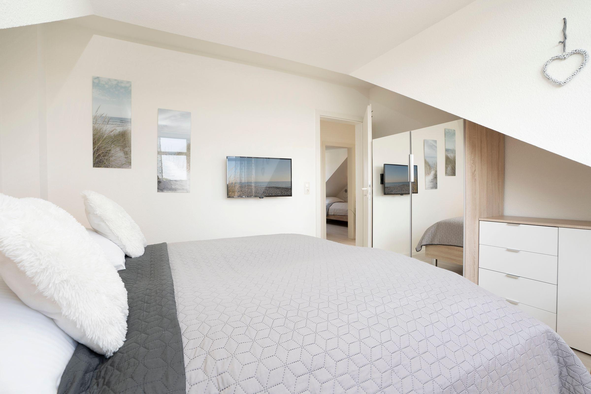 Geruhsame Nächte verbringen Sie in den beiden separaten Schlafzimmern, wovon das eine mit einem Doppelbett (2x 90x200 cm) und das andere mit 2 Einzelbetten (je 90x200 cm) ausgestattet ist. Der neue Urlaubsmorgen beginnt mit einer erfrischenden Dusche im hell gefliesten Tageslichtbad. 2 Fernseher und der vorhandene WLAN-Anschluss runden das Unterhaltungsangebot in dieser Ferienwohnung ab.