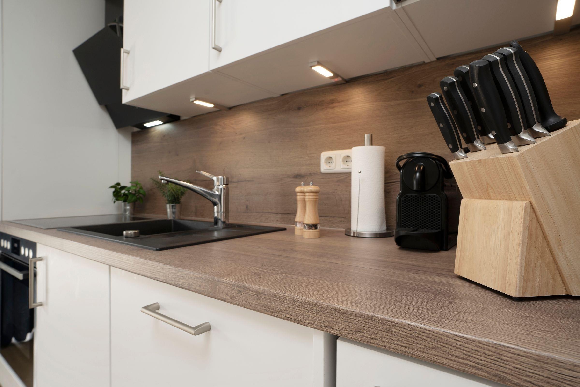 Die Ferienwohnung Meeresrauschen im Haus Schönes Leben empfängt Sie mit einem modern eingerichteten hellen Wohnbereich. In den Wohnbereich integriert ist die offene Küchenzeile, die mit ihrer sehr guten Ausstattung, inklusive Nespresso-Kaffeemaschine, keine Wünsche offen lässt. Lassen Sie sich nach einem guten Abendessen auf die gemütliche Couch fallen, lauschen Sie der wohnungseigenen WLAN-Sonos-Musikbox oder genießen Sie einen Blockbuster auf dem mit dem Streaming-Dienst Netflix ausgestatteten TV. Ihr Feriendomizil kann mit zwei voll abdunkelbaren Schlafzimmern trumpfen, die jeweils über ein eigenes Bad en suite verfügen. Ein bequemes Boxspringbett (2x 180x200cm) im ersten Schlafzimmer sowie zwei Einzelbetten (90x200cm) im zweiten Schlafzimmer sorgen für einen geruhsamen Schlaf. Die Lieblingsserie kann dabei auch vom Bett aus genossen werden, denn beide Schlafzimmer bestechen mit einem eigenen TV. Eines der beiden Dusch-Bäder bietet mit einem unterfahrbaren Waschbecken, einem WC-Haltegriff sowie einem Duschhocker barrierearme Bedingungen. Kalte Füße vermeiden Sie mit der Fußbodenheizung, die in der gesamten Wohnung verlegt ist. Die Highlight Ihres Feriendomizils sind die 58 m² große, nach Südwesten ausgerichtete Terrasse, auf der Sie die letzten Sonnenstrahlen des Tages genießen können sowie die gemeinschaftlich nutzbare Gartensauna.