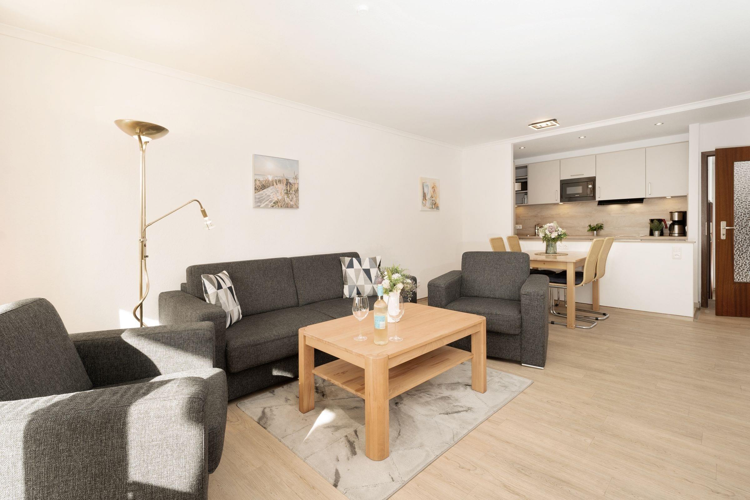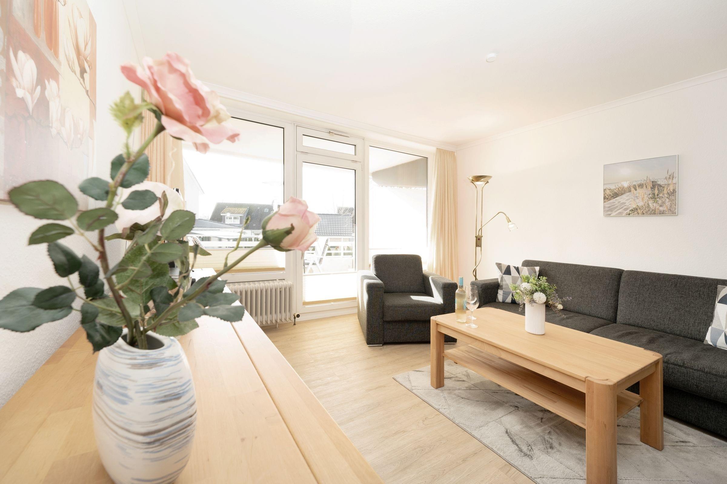 In der besten Lage von Grömitz: strandnahe 2-Zimmer-Ferienwohnung im 1. Stock mit Balkon, Fahrstuhl und einer Wohnfläche von 51 m² für bis zu 4 Personen.