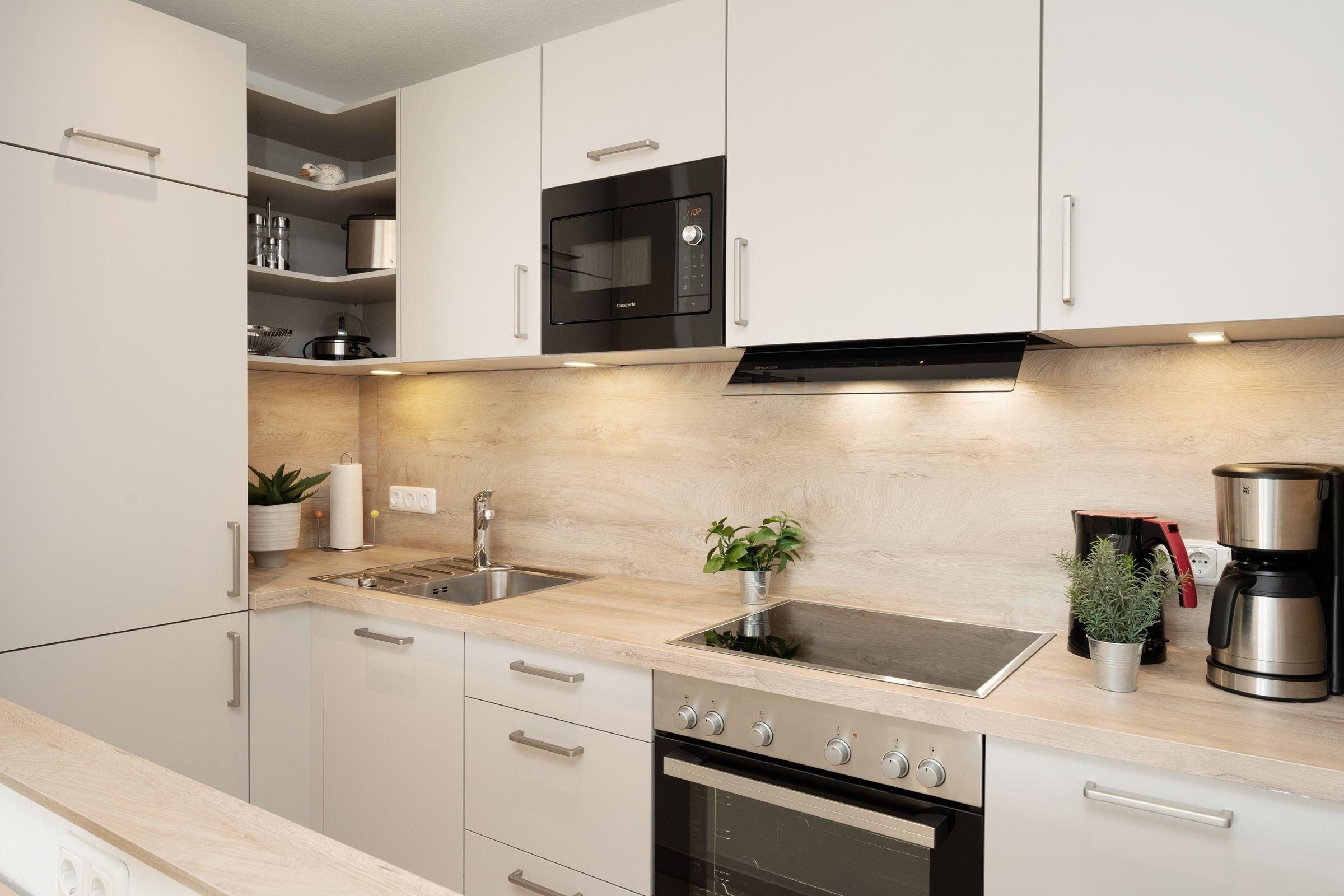 Sie möchten der Ostsee ganz nah sein? Dann sind Sie in dieser charmanten Ferienwohnung genau richtig. Nur 100 Meter vom schönen Ostseestrand entfernt befindet sich das Objekt in der Ferienwohnanlage Belvedere. Der helle Wohnbereich lädt zum gemütlichen Verweilen ein. Ein Highlight ist sicher der überdachte, möblierte Balkon mit seitlichem saisonalen Meerblick. Wie wäre es hier mit einem Willkommens-Drink? Die zum Wohnbereich hin offene Küche mit Spülmaschine bietet sämtliche Annehmlichkeiten, die Ihnen die Selbstversorgung im Urlaub erleichtern. Für die Nacht steht im Wohnbereich ein bequemes Schlafsofa (ca. 170x200 cm). Zudem finden Sie im separaten Schlafzimmer ein kuscheliges Doppelbett (2x 90x200 cm). Einen guten Start in den nächsten Tag verspricht das innenliegende Duschbad.