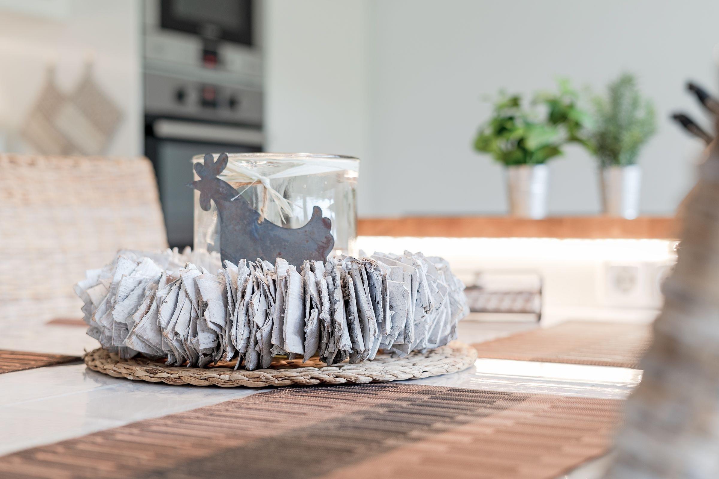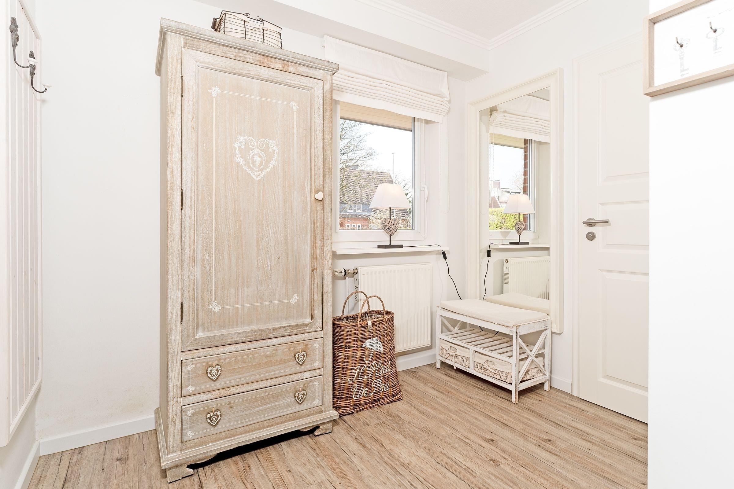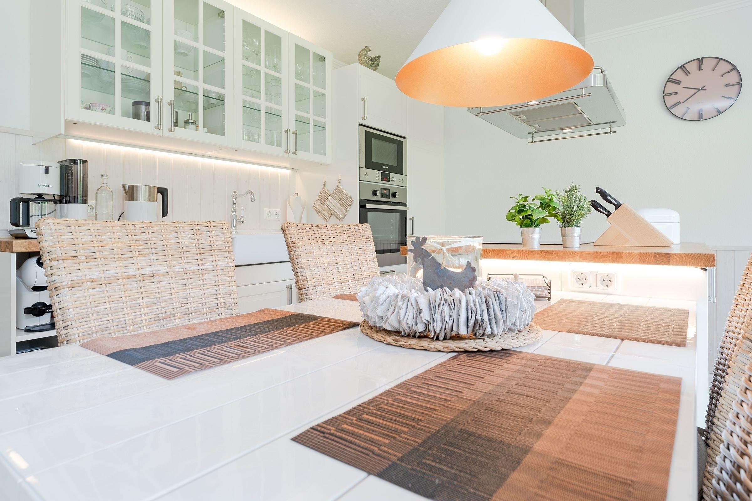Eine wundervolle Auszeit mit viel Platz und vielen Extras verspricht die Wohnung Wellenreiter im Beachhouse-Stil. Im Wohnbereich können Sie es sich vor dem TV-Gerät (Video on Demand zur Selbstanmeldung) gemütlich machen. Ein Elektrokamin sorgt für eine wohlige Atmosphäre. Auch beim Zubereiten Ihrer Lieblingsspeisen können Sie sich von einem TV-Gerät unterhalten lassen. Die moderne Küche im Landhausstil mit vielen Annehmlichkeiten wie Induktionsherd, Espressomaschine (Dolce Gusto) und Geschirrspüler bringt jeden Hobby-Koch zum Lächeln. Alternativ können Sie im Garten grillen – oder sich auf den Sonnenliegen, im Strandkorb oder auf den Terrassen entspannen. Wie unter einem Sternenhimmel übernachten Sie im Doppelbett (160x200 cm) im Schlafzimmer. Das tageslichthelle Bad en suite punktet mit einer bodengleichen Dusche. Zudem gibt es ein Gäste-WC.