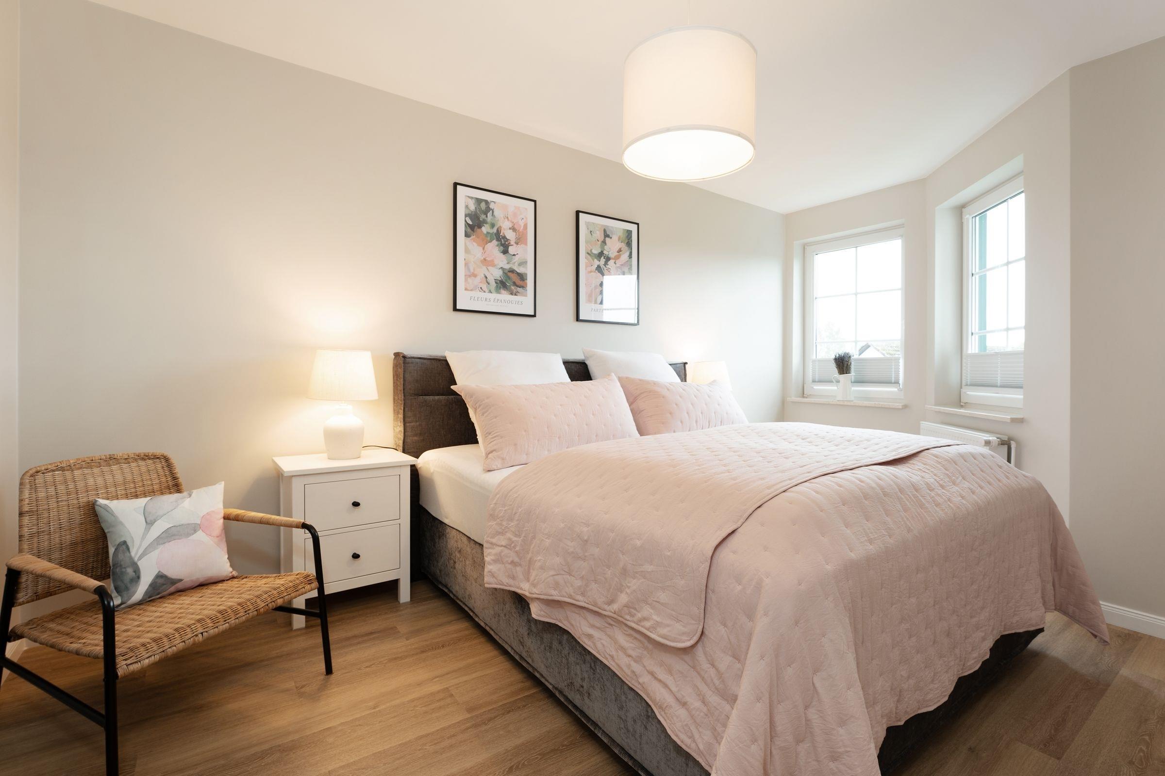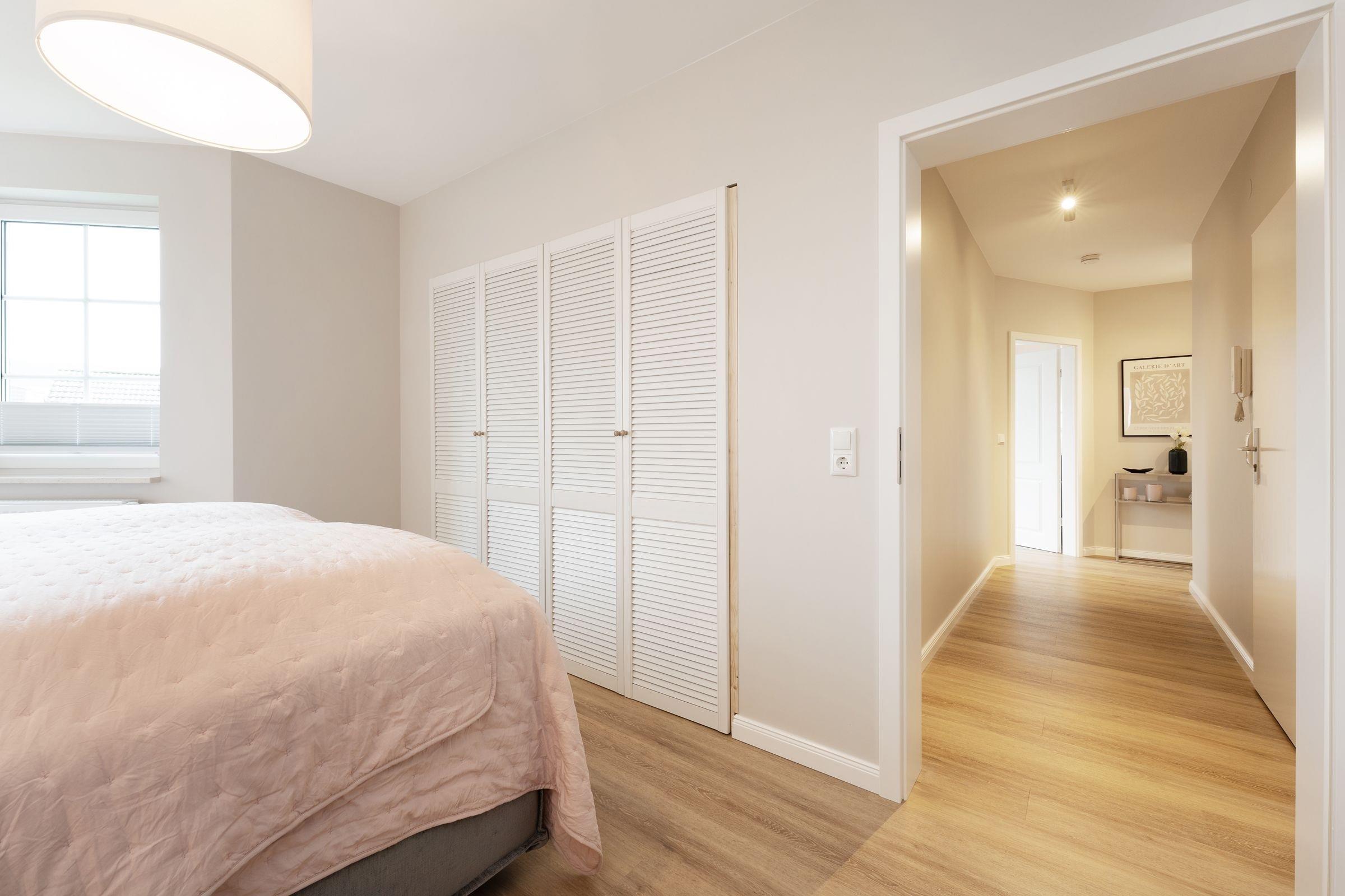 Diese schöne Ferienwohnung befindet sich in der gepflegten Wohnanlage Commodore und begrüßt Sie mit einem liebevoll eingerichteten Wohnbereich. Für die persönliche Unterhaltung sorgt ein Smart-TV (Streamingdienste zur Selbstanmeldung) sowie ein Bluetooth-Audiogerät. Der kleine, möblierte Balkon ist nach Nord-West ausgerichtet und verspricht ein gemütliches Beisammensein in der Abendsonne. Leckere Speisen dazu können Sie wunderbar in der separaten Küche zaubern. Die gute Ausstattung mit Annehmlichkeiten wie Nespresso-Maschine und Geschirrspüler wird Sie sicher erfreuen. Nächtigen können Sie im bequemen Doppelbett (180x200 cm) im Schlafzimmer. Hier befindet sich auch ein zusätzliches TV-Gerät. Oder auf dem Schlafsofa (ca. 160x197 cm) im Wohnzimmer. Das innenliegende Bad verfügt über eine bodengleiche Dusche, Föhn, Kosmetikspiegel und Handtuchwärmer.