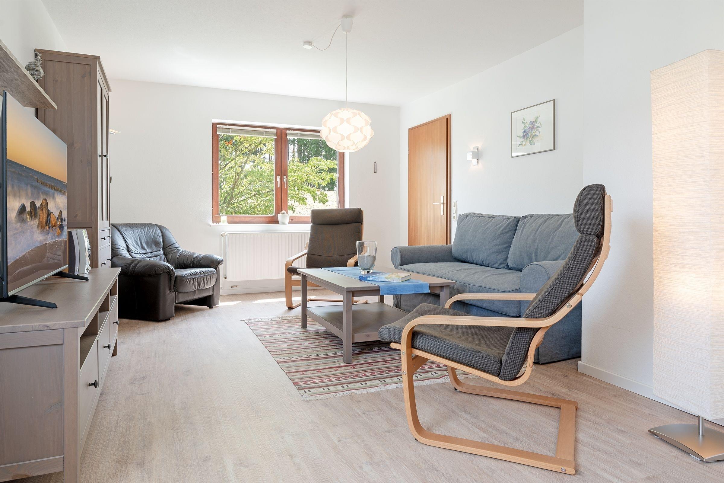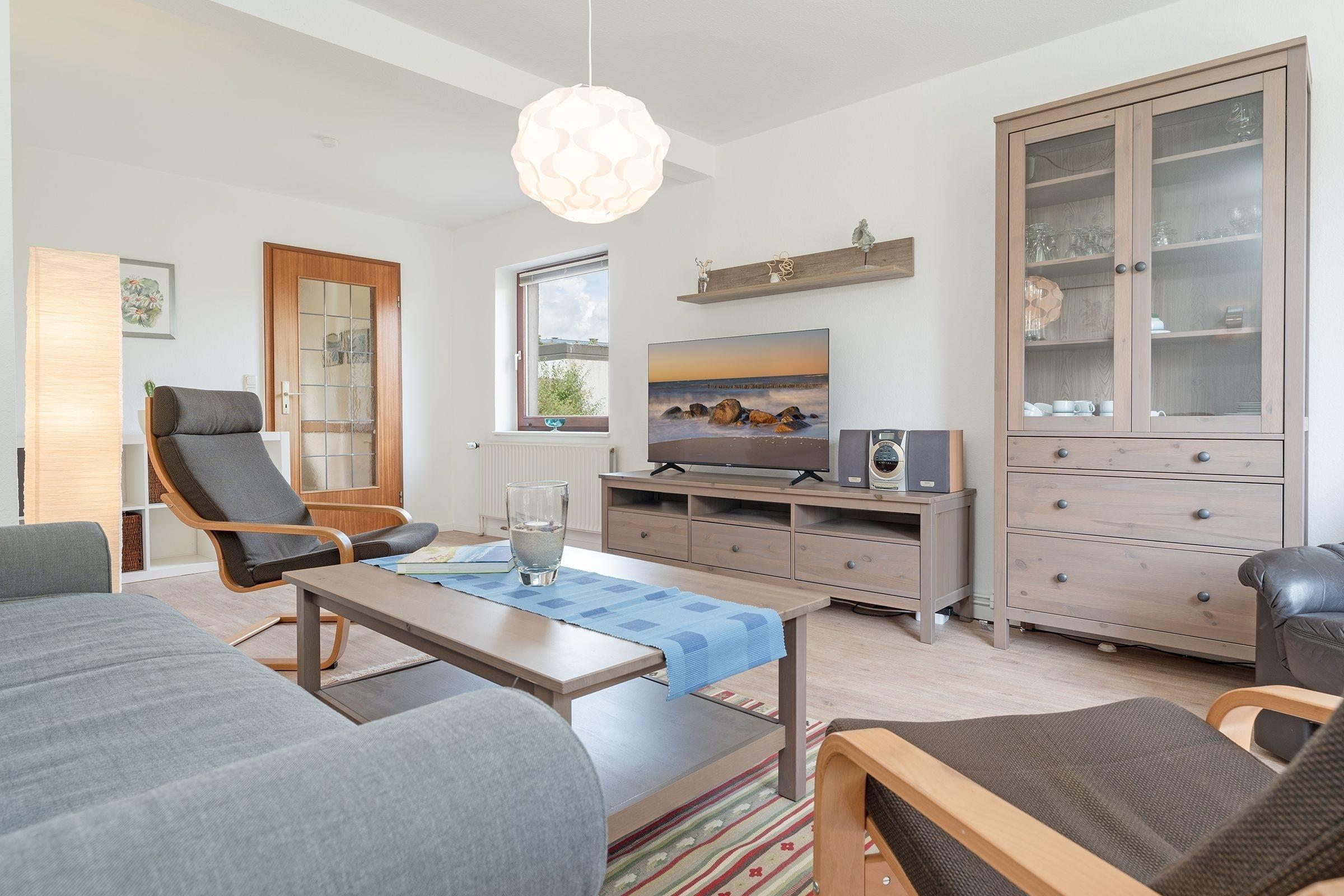 Wohnzimmer (EG): 1 Schlafsofa (160x200 cm), TV, kein Platz für Babybett vorhanden