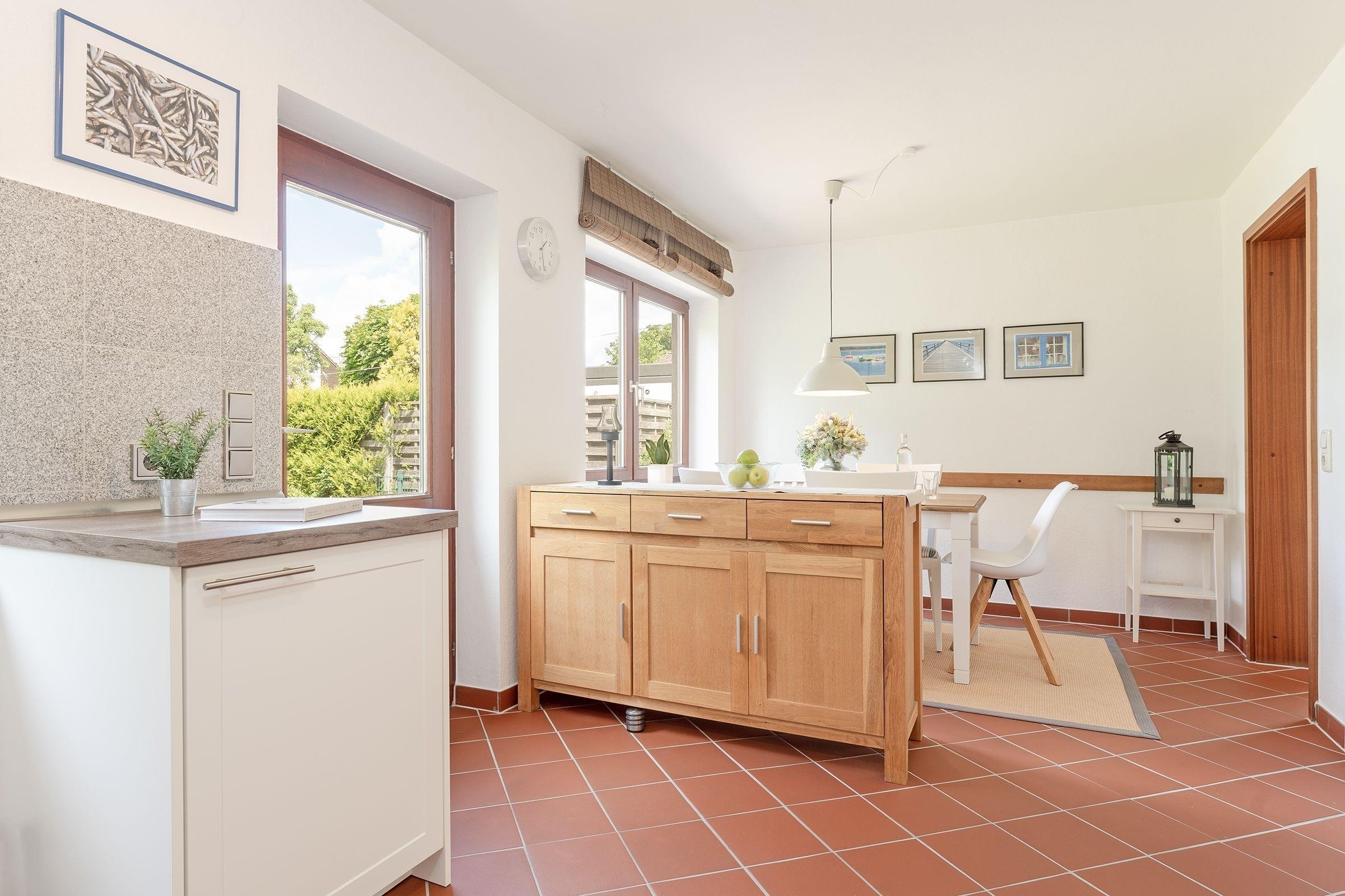 In der 1. Reihe, nur 220 Meter vom Ostseestrand entfernt, erwartet Sie diese gemütliche Doppelhaushälfte. Nehmen Sie im kuscheligen Wohnbereich Platz und lassen Sie sich vom TV-Gerät, Ihren Lieblings-CDs oder dem Radio unterhalten. Im großen Garten ist das Grillen erlaubt. Die offene Küche mit Waschmaschine befindet sich in einem Raum mit einer Essecke. Ein Schrankelement fungiert als Raumteiler und sorgt für eine gemütliche Atmosphäre. Im OG befinden sich zwei Schlafräume mit jeweils einem Doppelbett (je 2x 90x200 cm), aus dem einen Zimmer haben Sie einen direkten Blick aufs Meer. Das Sofa im Wohnbereich bietet einen weiteren Schlafplatz (160x200 cm). Das innenliegendes Duschbad sowie ein Gäste-WC runden dieses schöne Angebot ab.