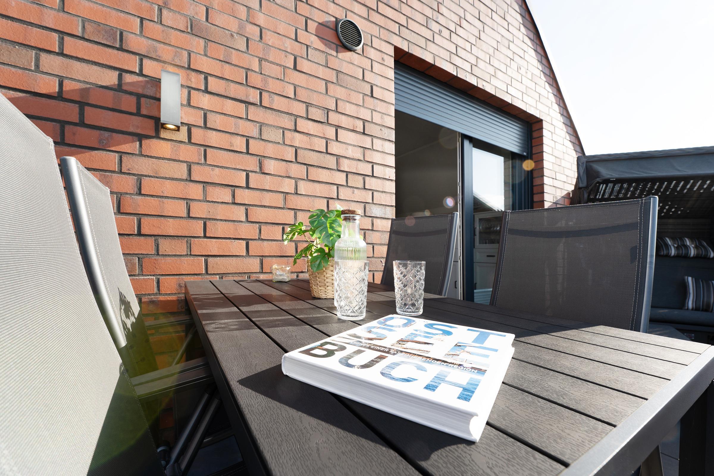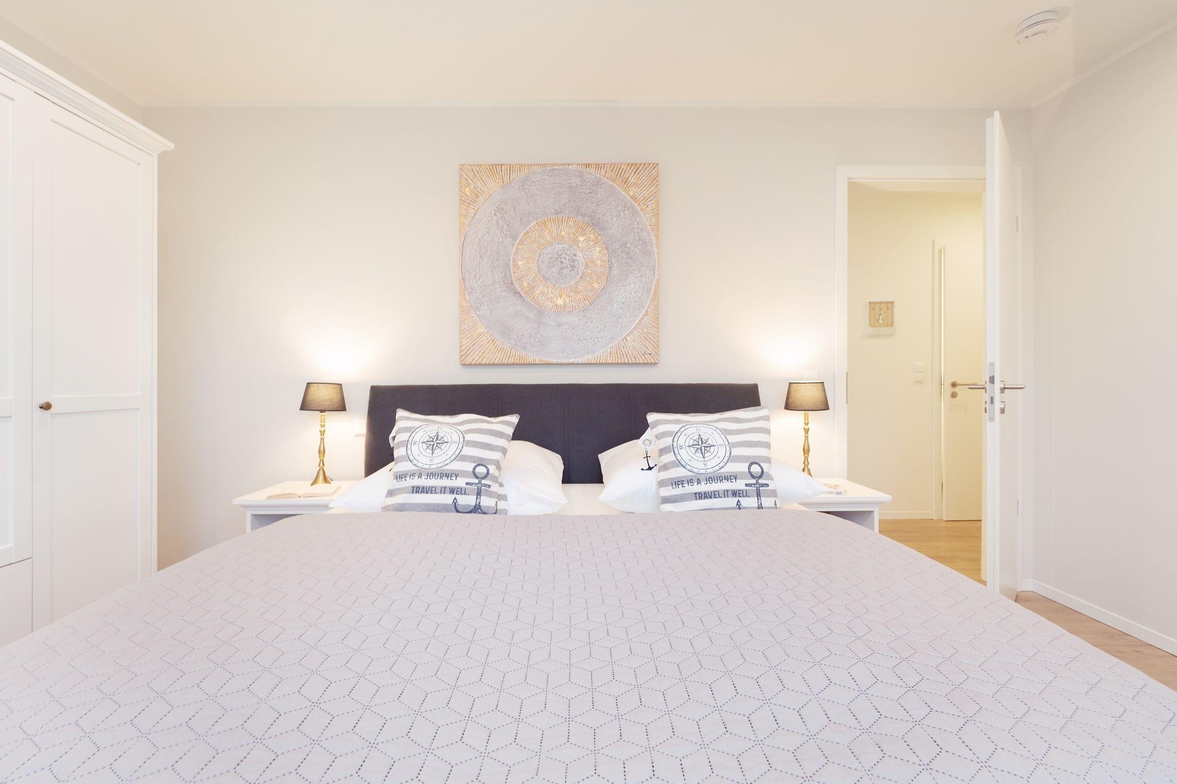 Diese familienfreundliche Ferienwohnung im Haus Kontor Fofftein bietet alles, was Sie für einen unvergesslichen Ostseeurlaub benötigen. Der großzügige Wohnbereich ist mit einem gemütlichen Sofa und einem Flachbild-TV ausgestattet. Ein großer Südbalkon mit Balkonmöbeln inkl. Sonnenschirm, Strandkorb und Sonnenliege lädt zum Entspannen ein. Die offene Küche ist modern ausgestattet und verfügt u.a. über einen Induktionsherd, Backofen, Mikrowelle und eine Spülmaschine. Der angrenzende Essbereich bietet ausreichend Platz für gemeinsame Mahlzeiten. Die Ferienwohnung bietet zwei Schlafzimmer, eins mit einem Doppelboxspringbett (180x200 cm) und eins mit einem Doppelbett (2x 90x200 cm). Beide Räume sind hell und freundlich gestaltet. Das moderne Badezimmer ist mit einer bodengleichen Dusche, Fußbodenheizung und beheizbarem Handtuchhalter ausgestattet. Zusätzlich sorgt ein separates Gäste-WC für Komfort.