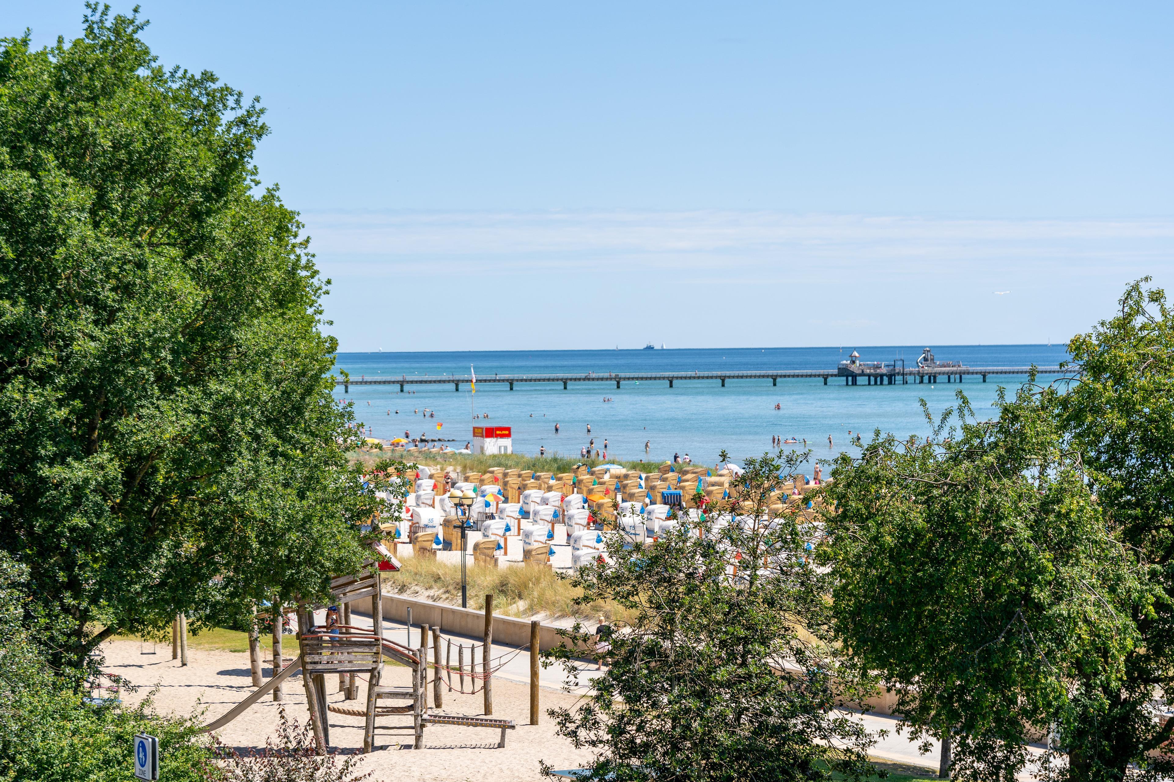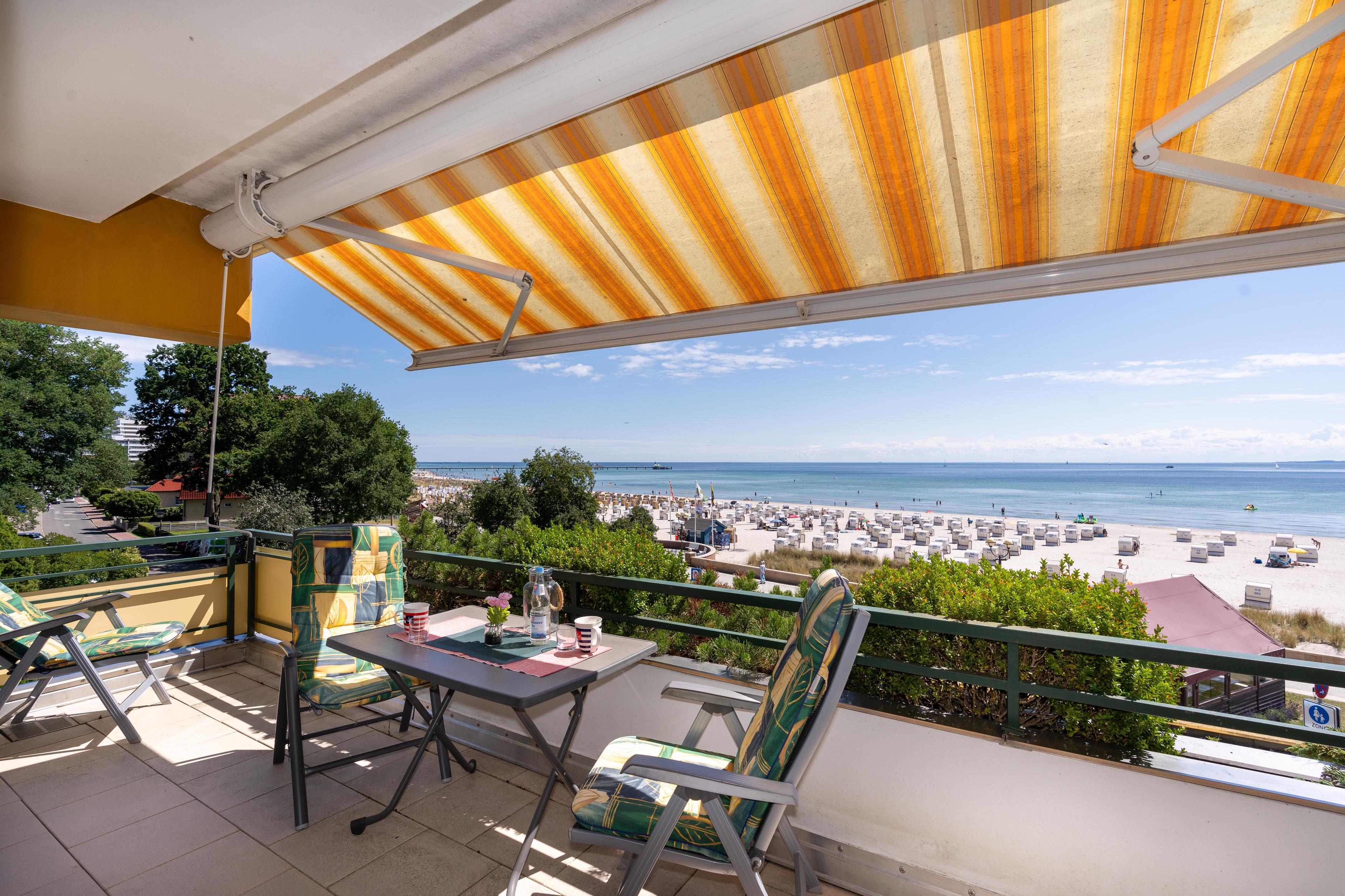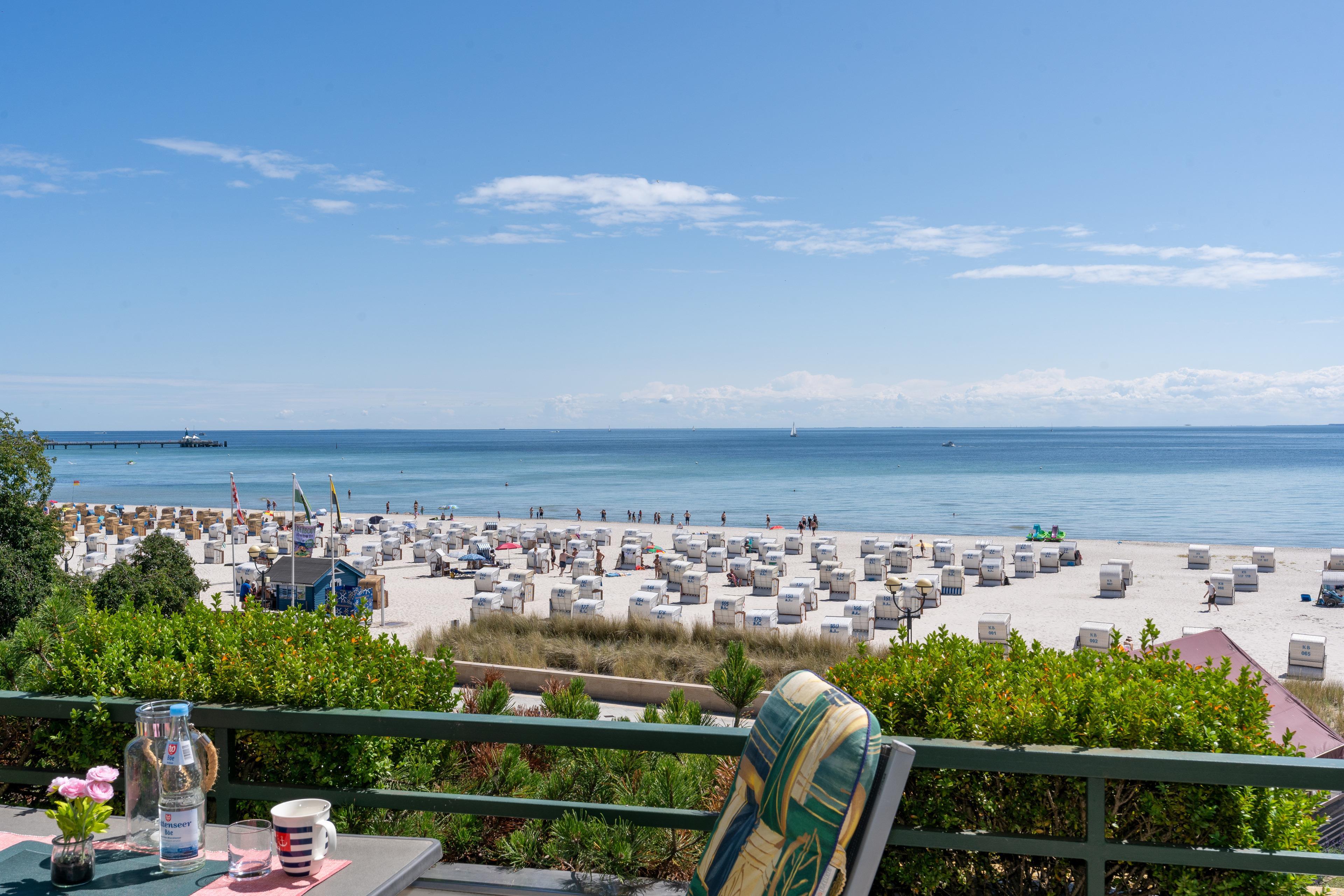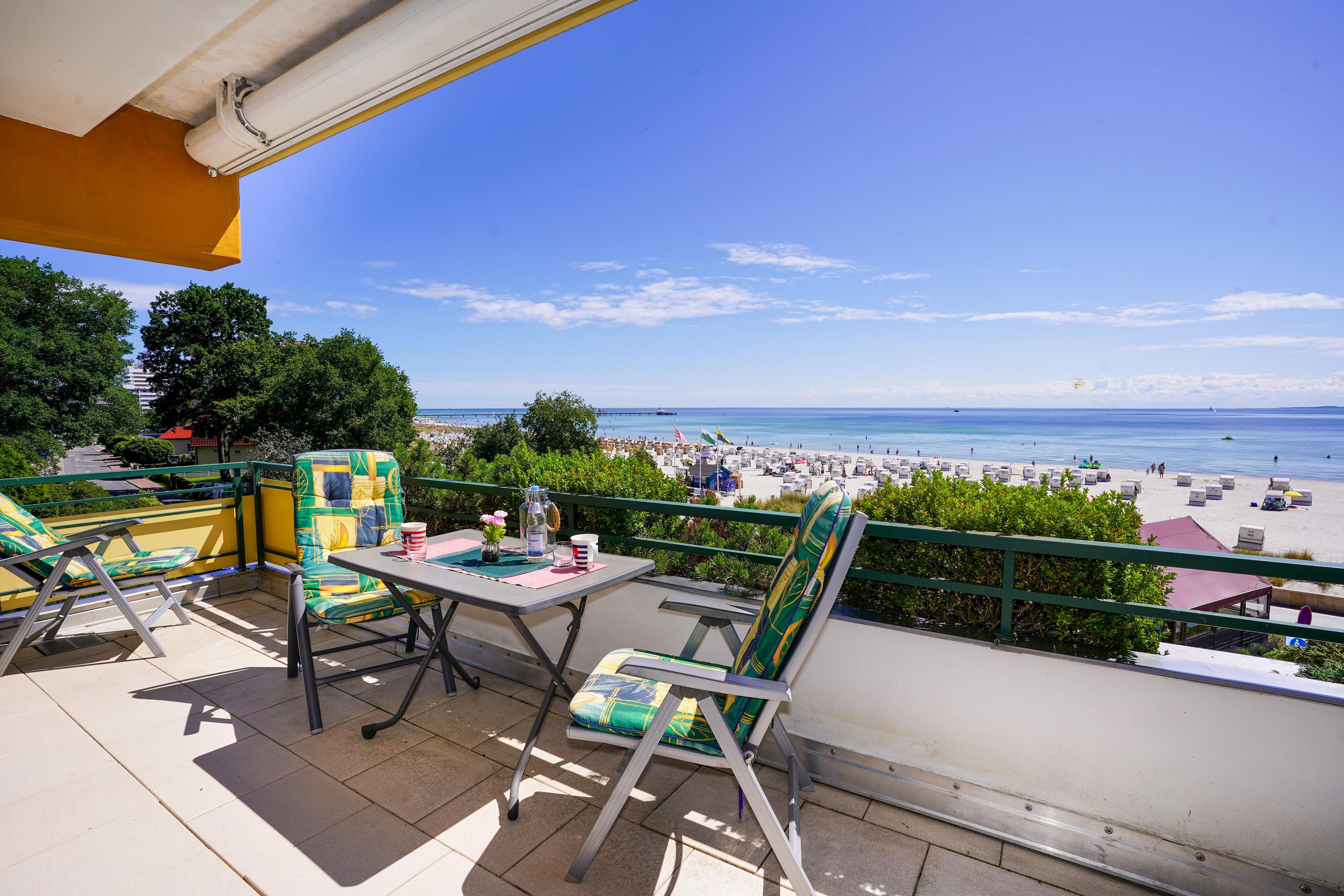 Traumhafter Blick auf das Meer und die Seebrücke von Grömitz. Schöne Wohnung im Hause Miramar, ca. 65 m² groß, 2-Zimmer-Ferienwohnung 308 im 3. Stock. Diese geschmackvoll eingerichtete Unterkunft bietet Platz für bis zu 4 Personen und wartet mit einem großzügigen Balkon in direkter Nähe zum Strand auf.