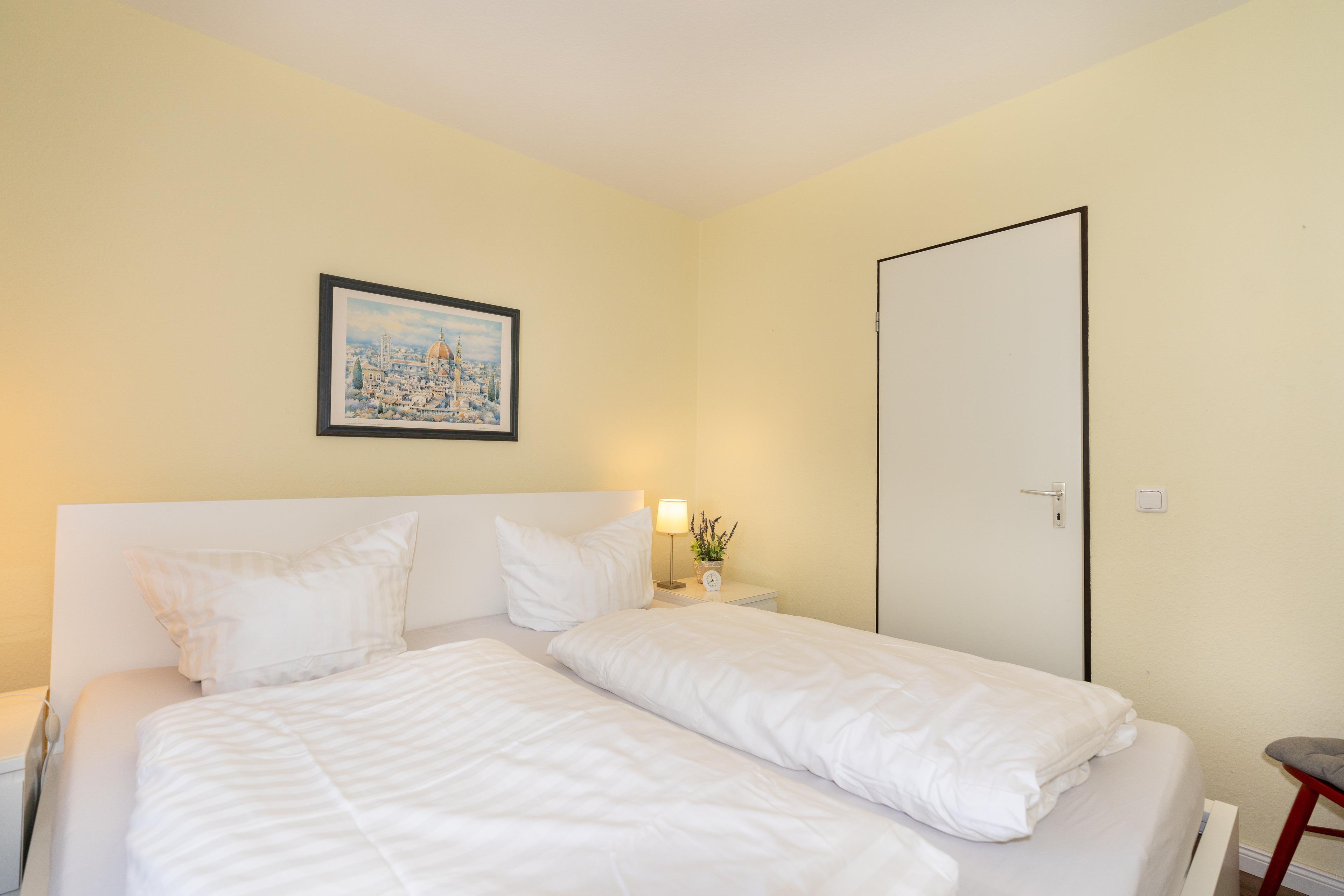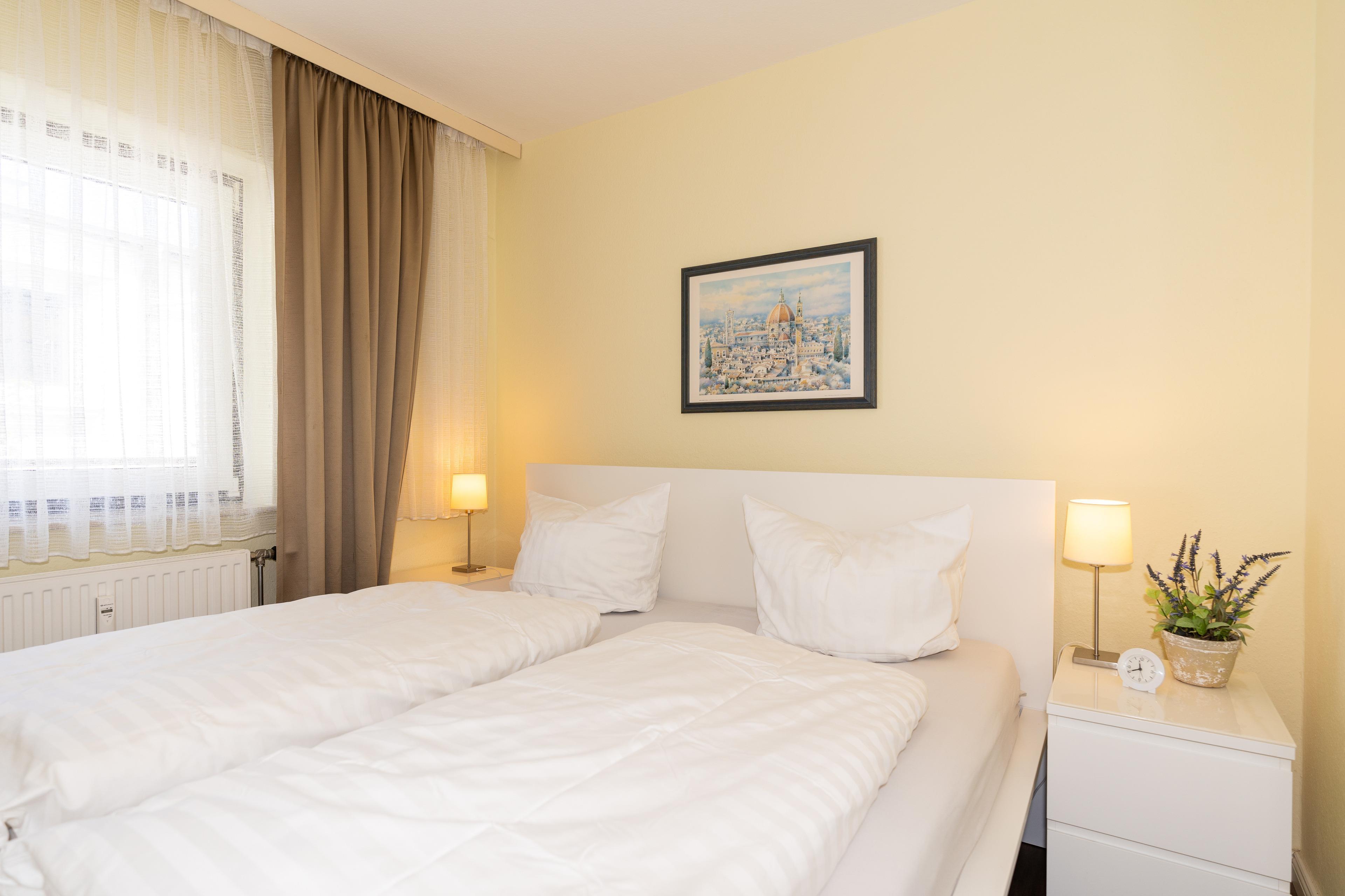 Für erholsame Nächte sorgt das separate Schlafzimmer, das mit einem gemütlichen Doppelbett (2 x 90 x 200 cm) und zwei Nachttischen ausgestattet ist. Ihre Urlaubsutensilien finden in einem geräumigen Kleiderschrank im Flur Platz.