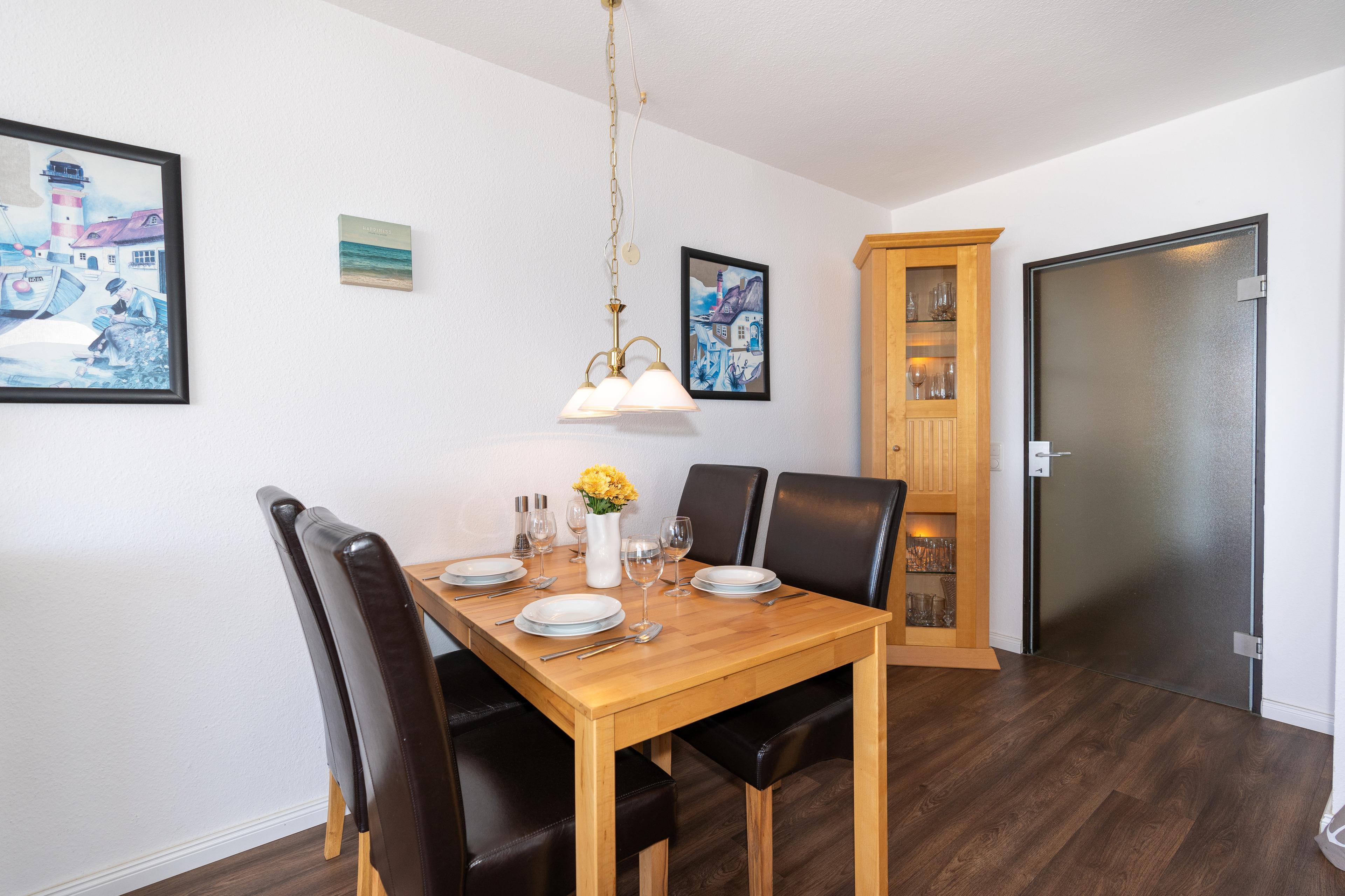Die gut ausgestattete Küche bietet Ihnen alle Möglichkeiten, Ihre eigenen Urlaubsmahlzeiten zuzubereiten. Genießen Sie Ihre Mahlzeiten am Esstisch im Wohnzimmer.