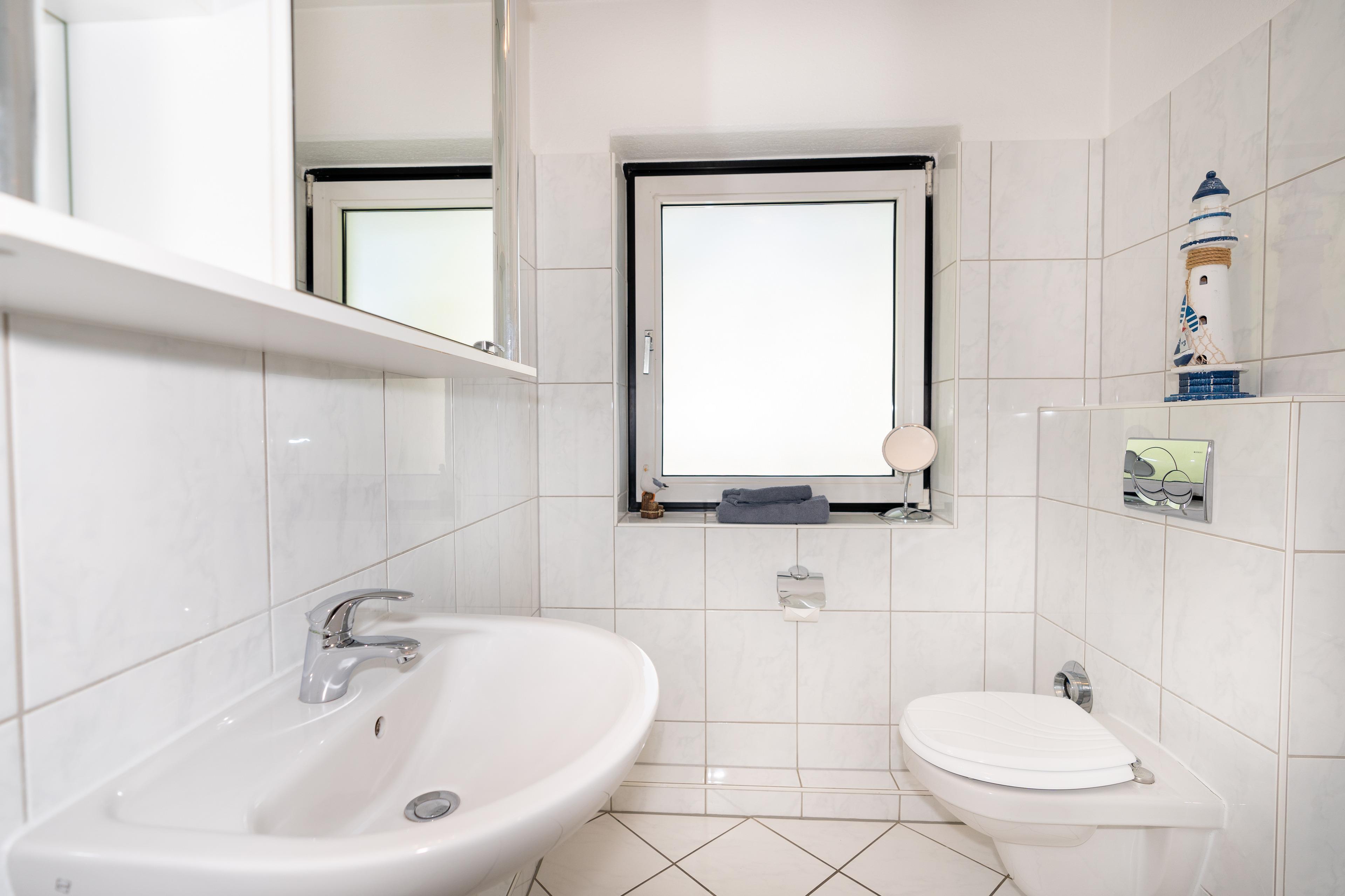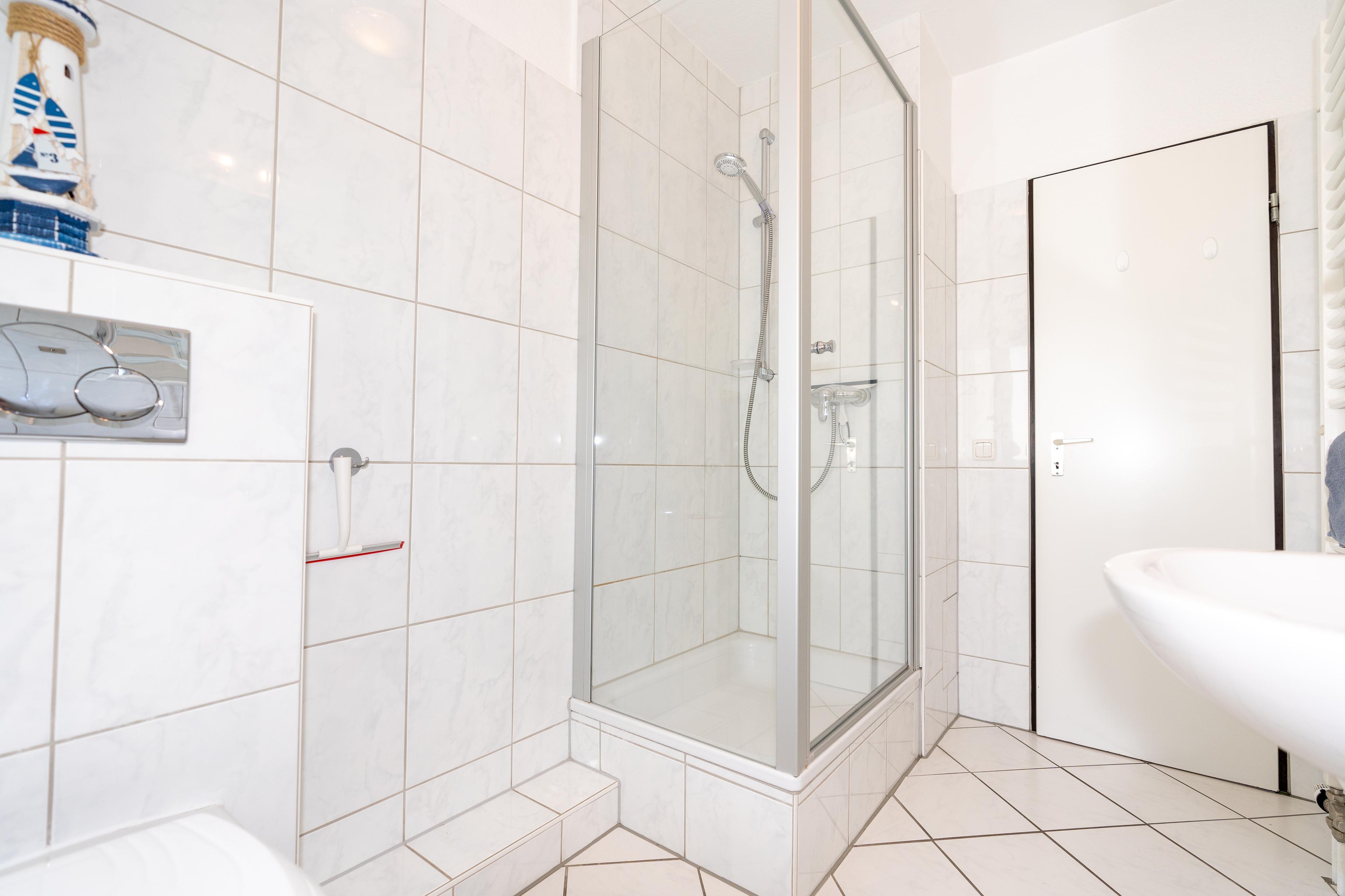 Über zwei Treppen gelangen Sie bequem zu Ihrem Feriendomizil in der 3. Etage. Im Eingangsbereich der Wohnung gelangen Sie in den Flur. Von hier aus gelangen Sie ins Tageslichtbad, ausgestattet mit Dusche, WC und Waschbecken.