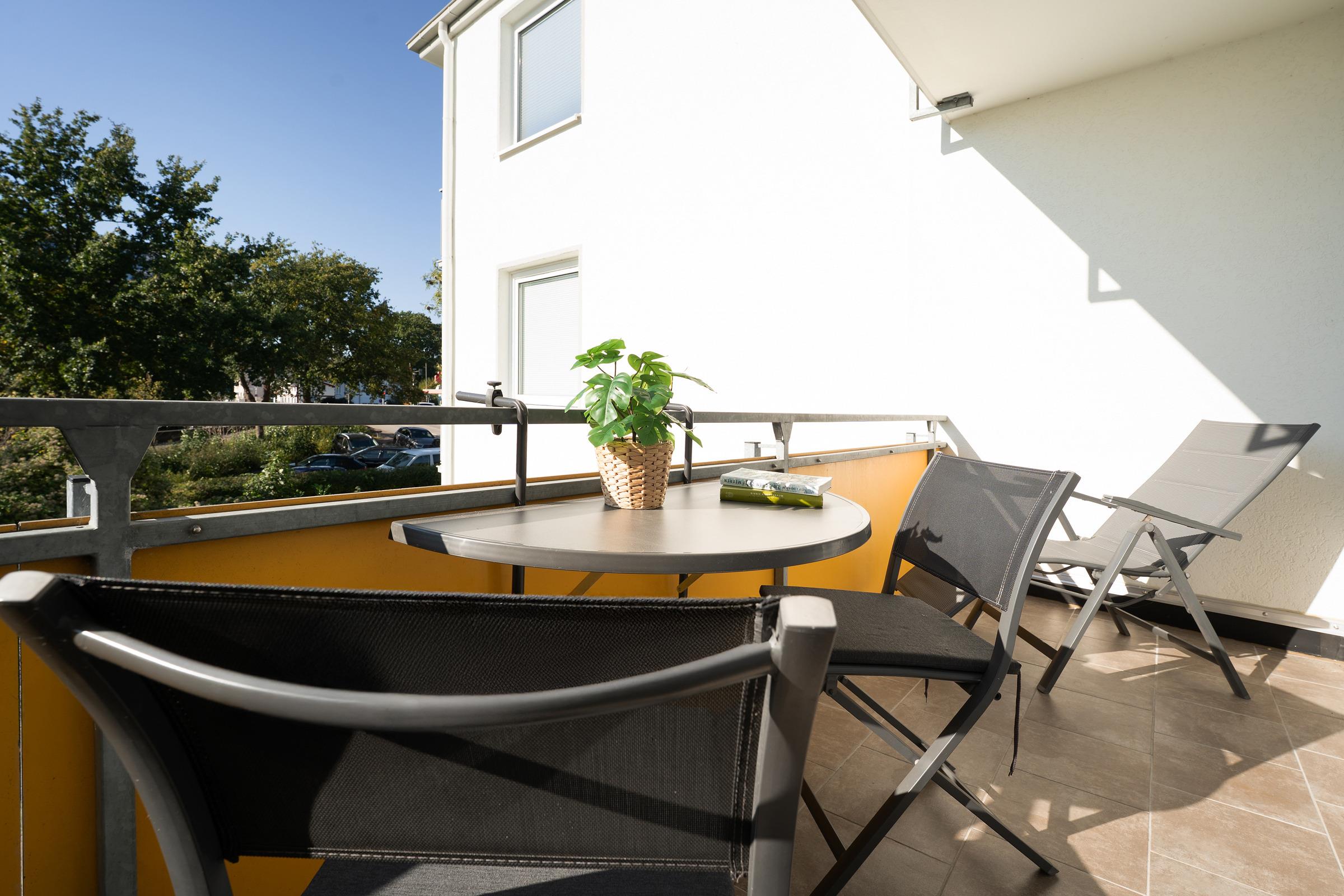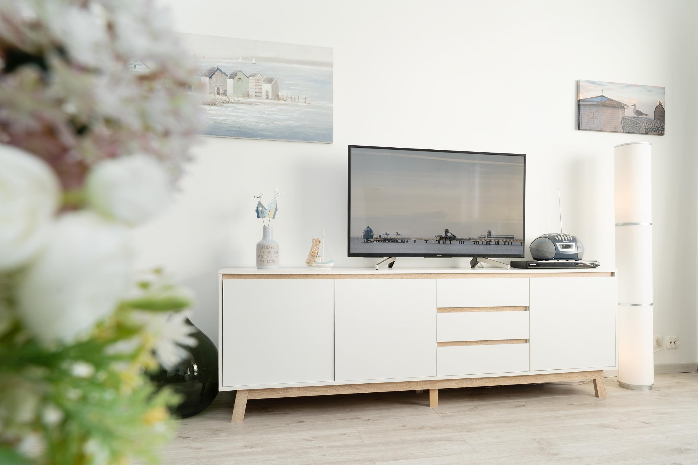 Diese freundliche Wohnung im 1. Stock empfängt Sie mit einem einladenden Wohnbereich, der mit einem gemütlichen Sofa, Flachbild-TV mit DVD-Player, CD-Player und Radio ausgestattet ist – ideal für entspannte Abende nach einem Strandtag. Der Zugang zum möblierten Balkon bietet Ihnen die Möglichkeit, frische Ostseeluft zu genießen und Ihre Mahlzeiten unter freiem Himmel einzunehmen. Die offene Küchenzeile ist funktional ausgestattet mit Cerankochfeld, Backofen, Geschirrspüler, Kühlschrank mit Gefrierfach sowie Kaffeemaschine (Senseo), Toaster und einen Wasserkocher. Im angrenzenden Essbereich finden alle Gäste bequem Platz. Im ersten Schlafzimmer befindet sich ein Doppelbett und ein Kleiderschrank. Das zweite Zimmer ist mit einem Etagenbett ausgestattet und bietet zwei weitere Schlafmöglichkeiten. Das moderne Bad verfügt über eine Dusche sowie ein WC.