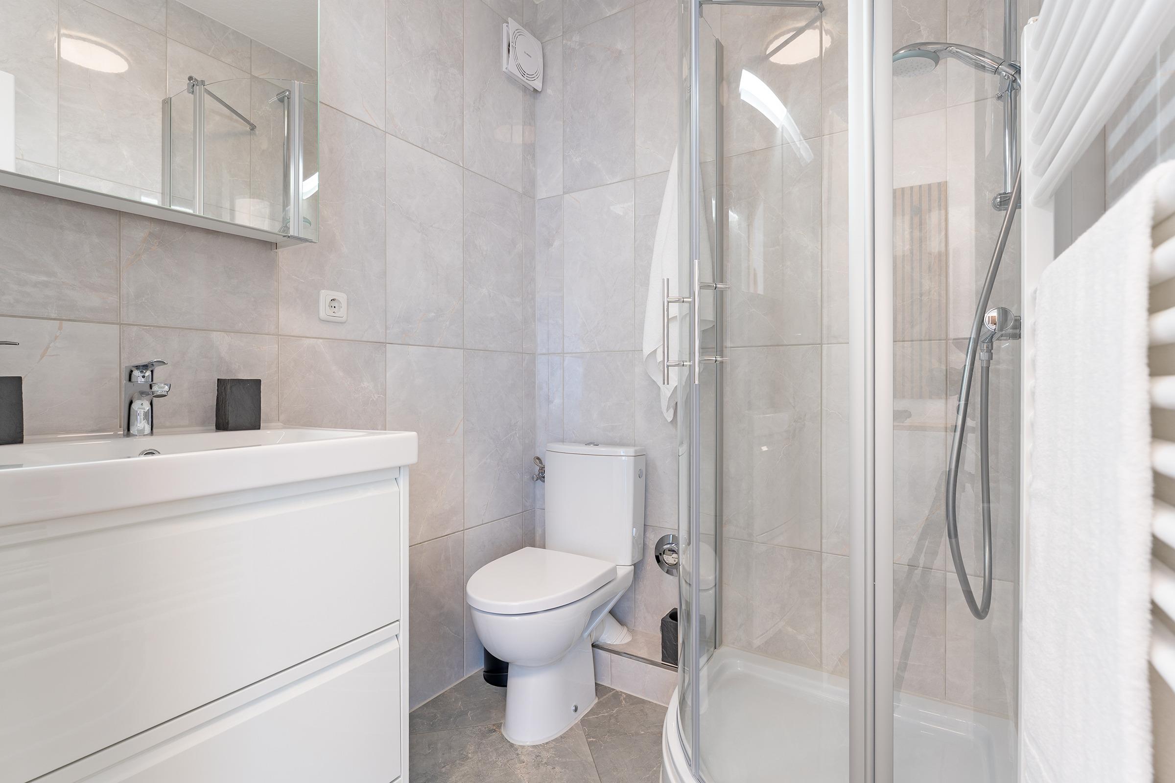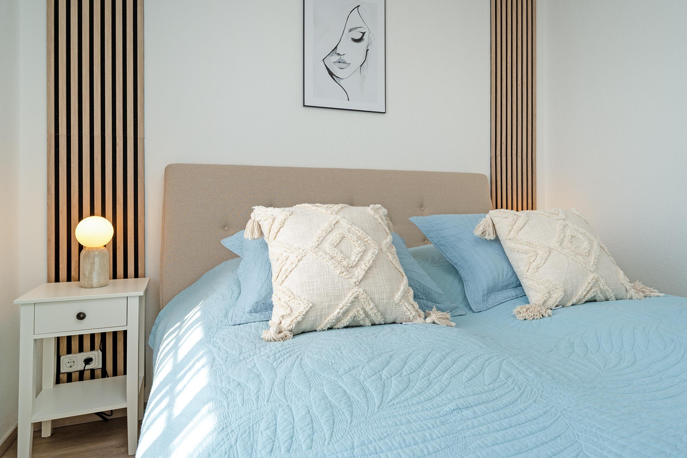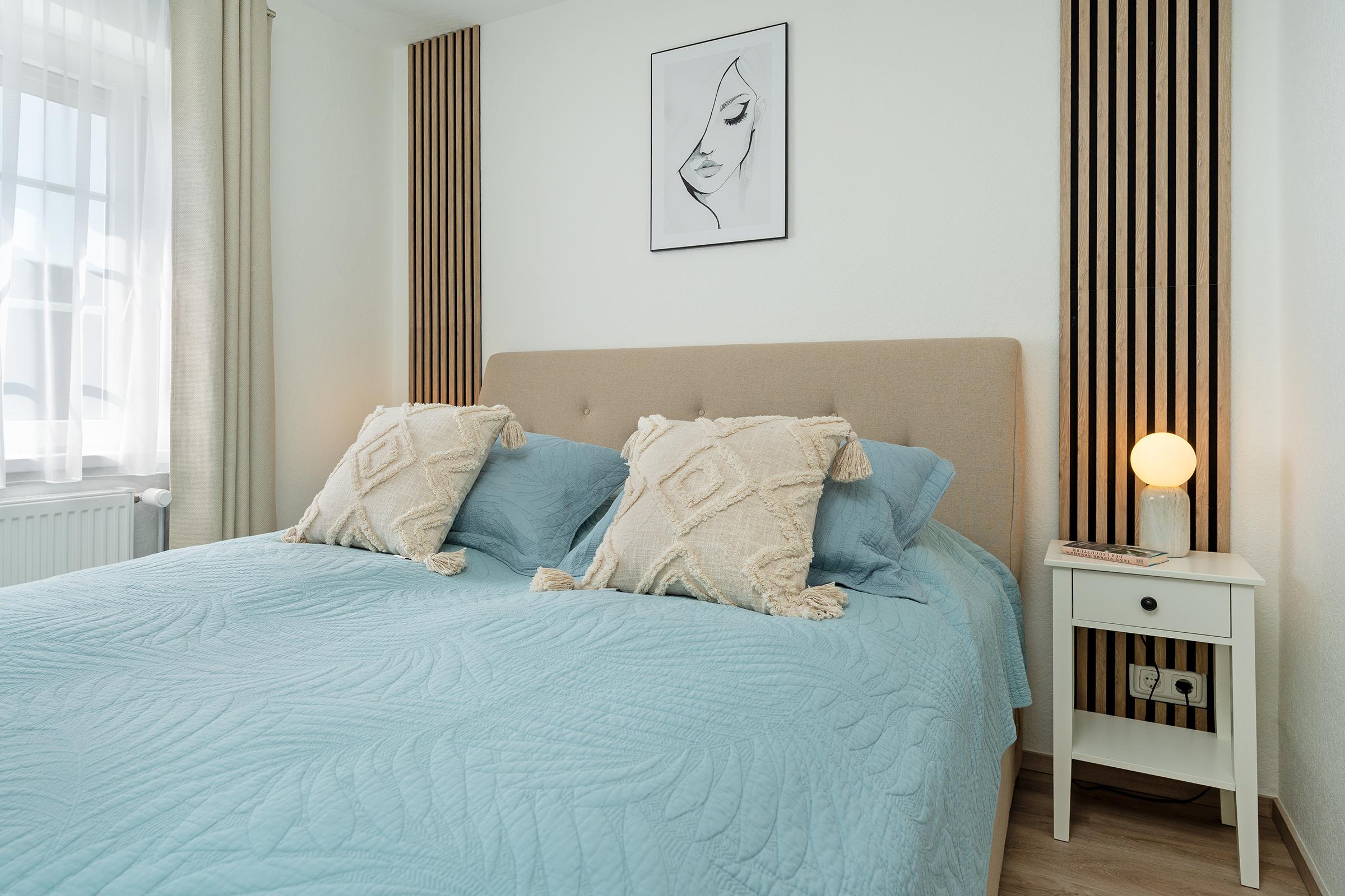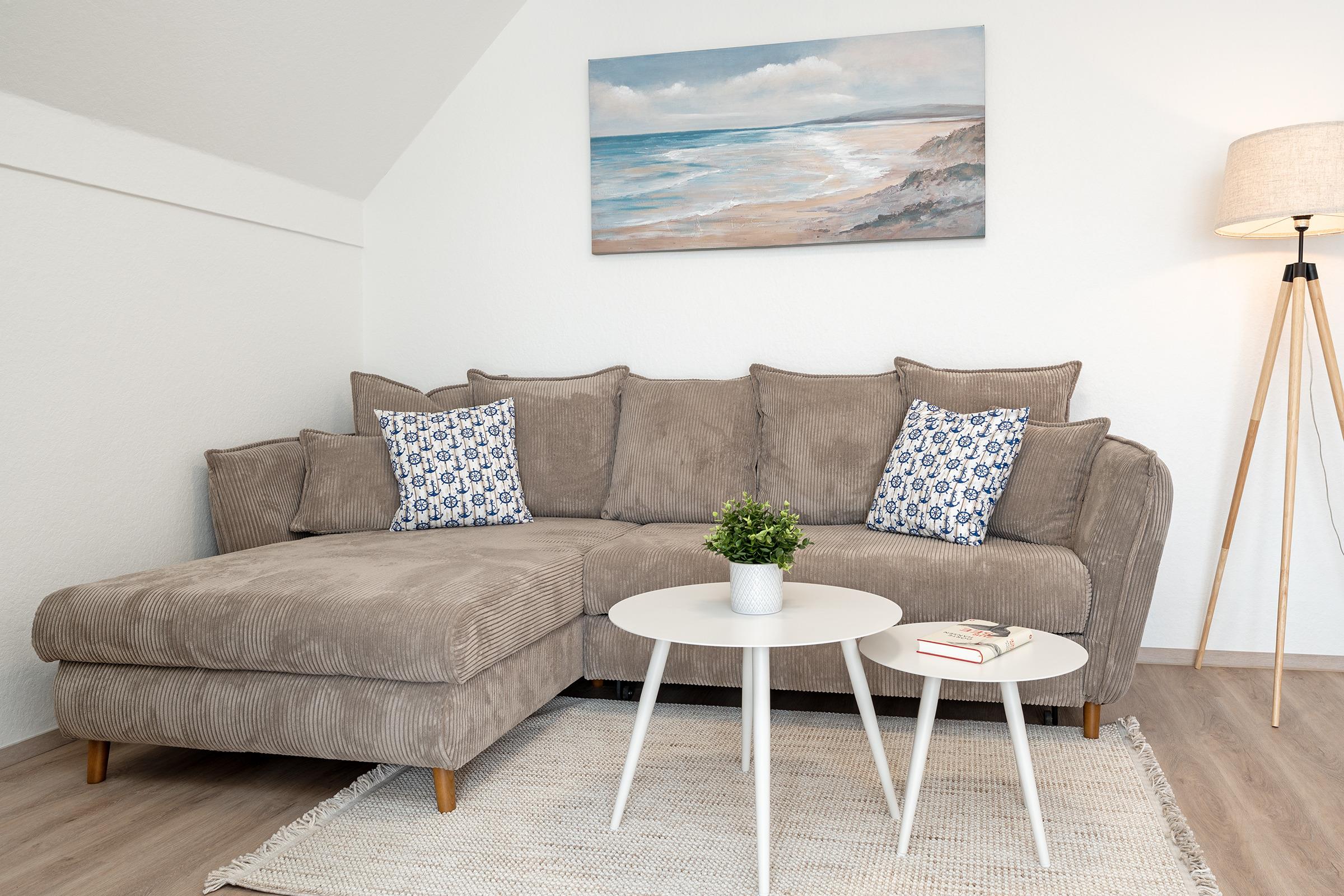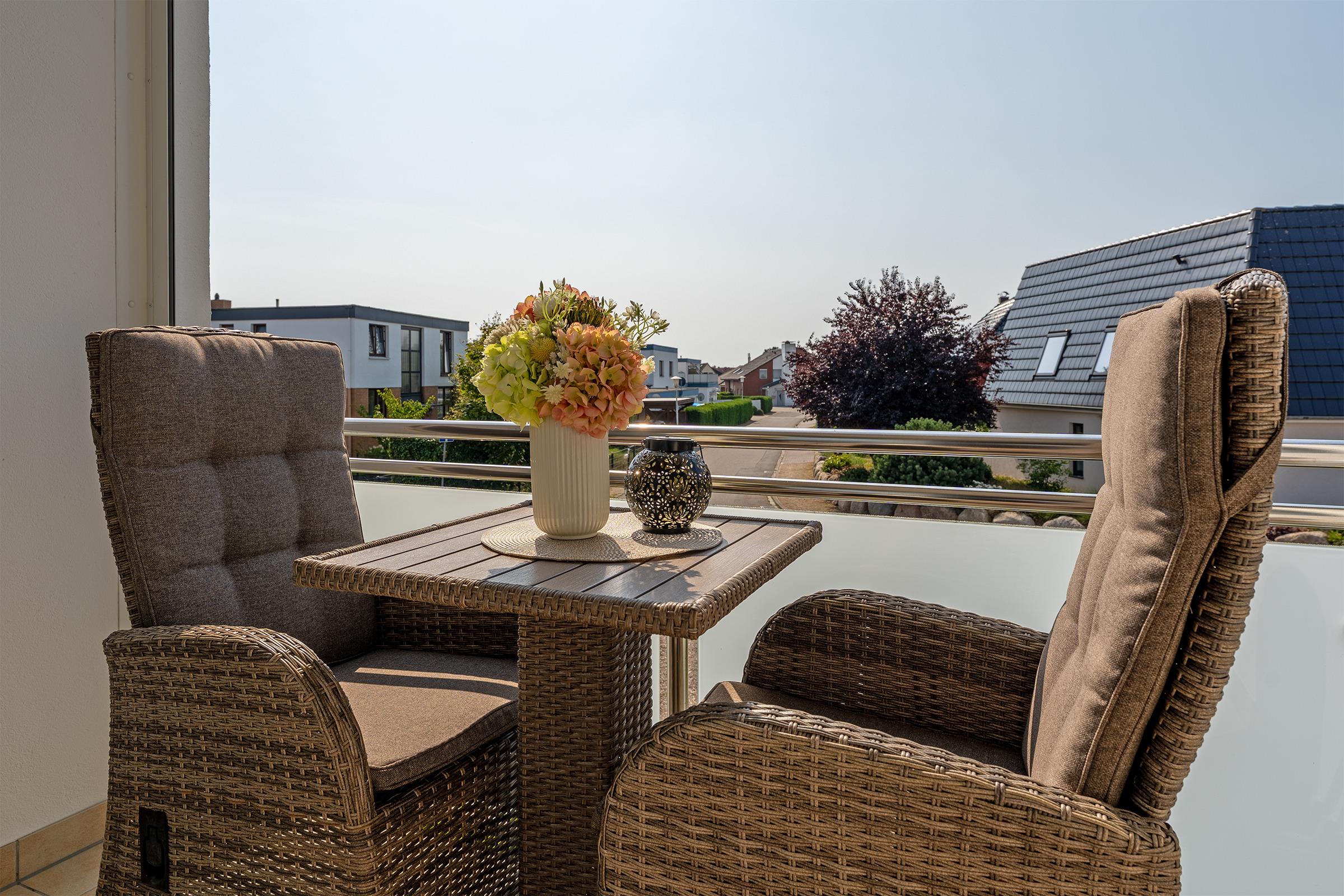 Die Wohnung überzeugt mit einem hellen Wohnbereich, der durch seine moderne Einrichtung und das bequeme Schlafsofa (145x235 cm) zum Verweilen einlädt. Ein Fernseher sorgt für Unterhaltung am Abend. Der möblierte Balkon lädt dazu ein, die frische Ostseeluft zu genießen und den Urlaubstag entspannt ausklingen zu lassen. Die gut ausgestattete Küchenzeile bietet Ihnen alle Annehmlichkeiten, darunter ein Backofen, Kühlschrank mit Gefrierfach, Wasserkocher und Toaster – perfekt für die Zubereitung kleiner Mahlzeiten. Der Essbereich schafft eine angenehme Atmosphäre für gemeinsame Stunden. Im Schlafzimmer erwartet Sie ein komfortables Doppelbett (2x 90x200 cm) für erholsamen Schlaf. Ein weiterer kleiner Raum mit Arbeitsplatz kann bei Bedarf als Home Office-Möglichkeit oder als ruhiger Rückzugsort für ein Kinderreisebett genutzt werden. Das Badezimmer ist mit WC und Dusche sowie einem beheizbaren Handtuchhalter und einem Haartrockner ausgestattet - so starten Sie gut in den Tag.