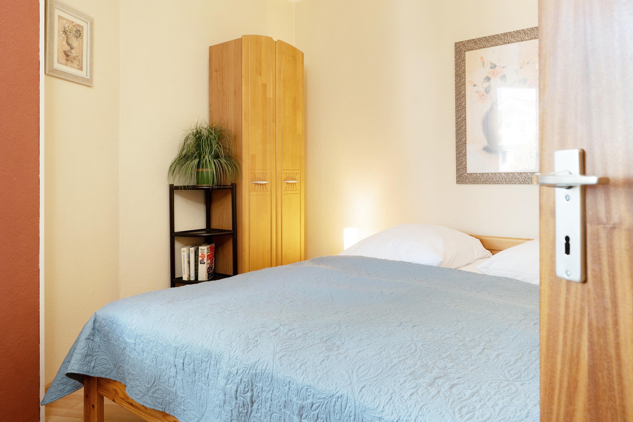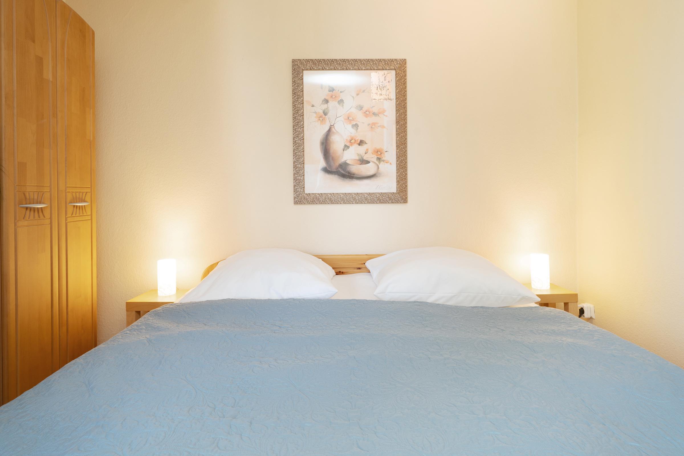 Schlafzimmer: 1 Doppelbett (180 x 200 cm , 2 Matratzen), Kleiderschrank