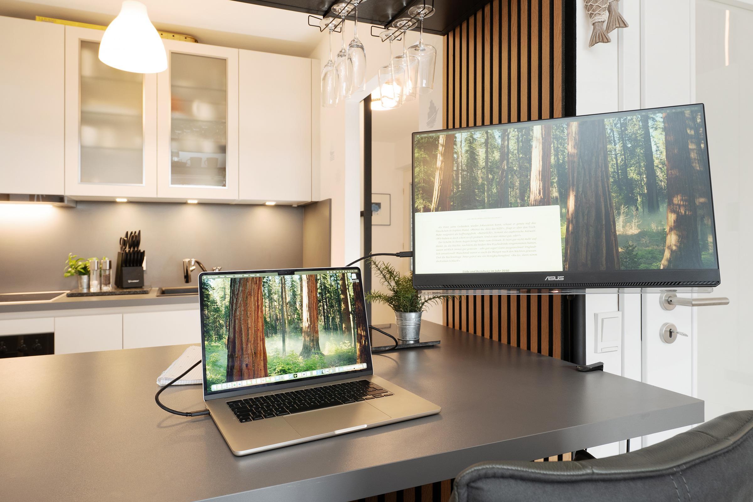 Ein PKW-Außenstellplatz ist für Sie reserviert. Für Ihre mitgebrachten Fahrräder steht ein Fahrradabstellplatz zur Verfügung. WLAN ist inklusive. Die Ferienunterkunft ist mit einer schnellen 100er Leitung und einem hochwertigen Arbeitsplatz ausgestattet und bietet beste Voraussetzungen für eine Workation oder ein entspanntes Arbeiten im Homeoffice.