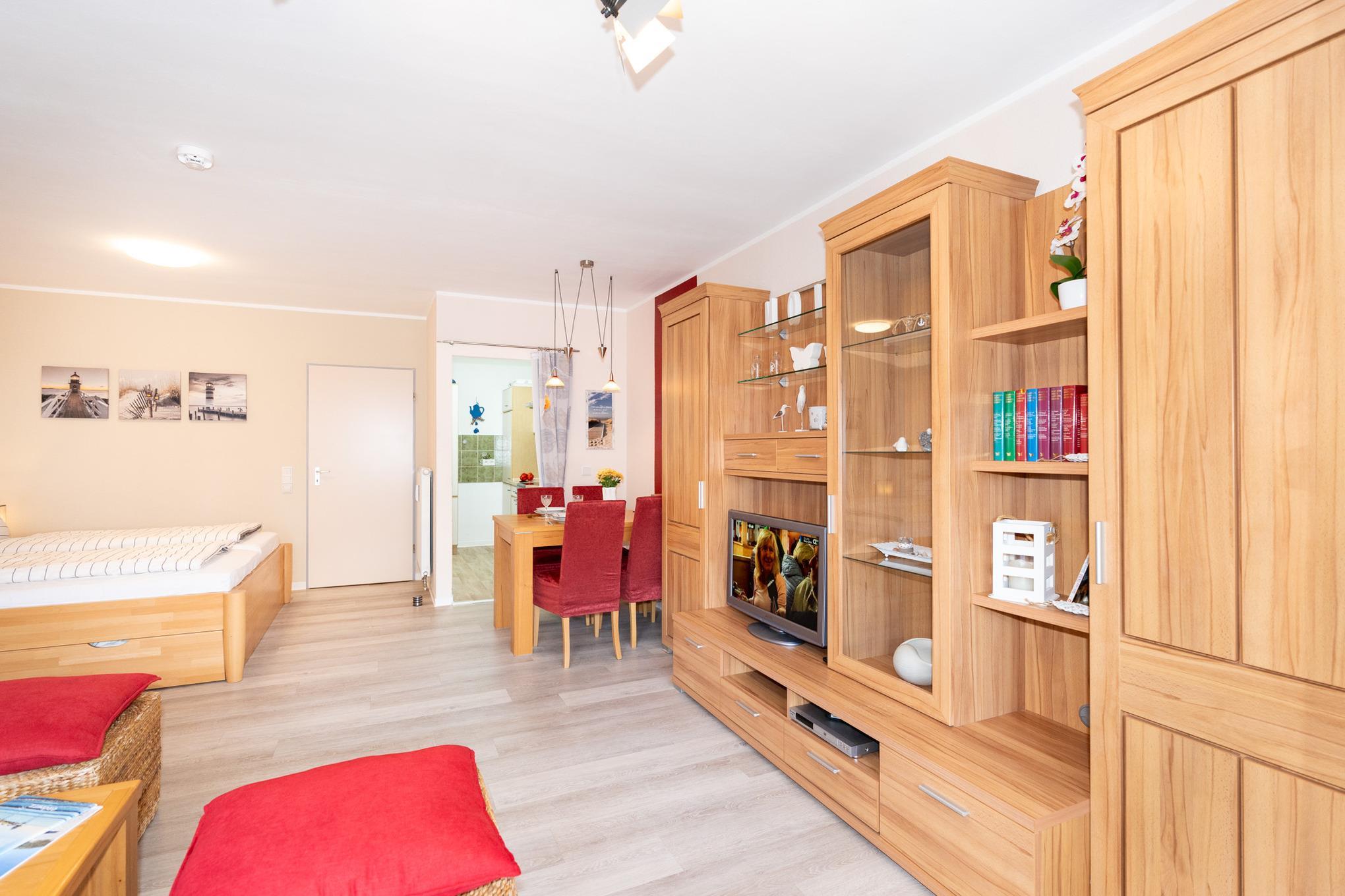 Komfortabel & Kompakt: Ihr Apartment bietet Ihnen alles, was Sie für einen erholsamen Urlaub brauchen: ein gemütliches Zimmer, eine separate, voll ausgestattete Einbauküche (mit allem, was Sie zum Kochen benötigen!), eine Diele und ein eigenes Bad.