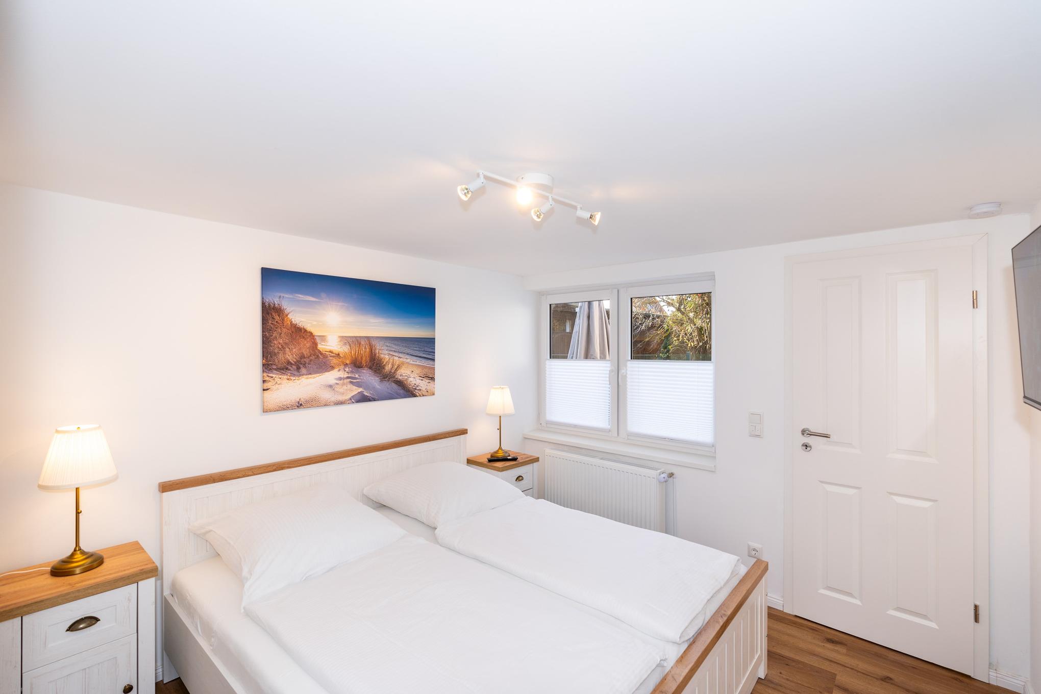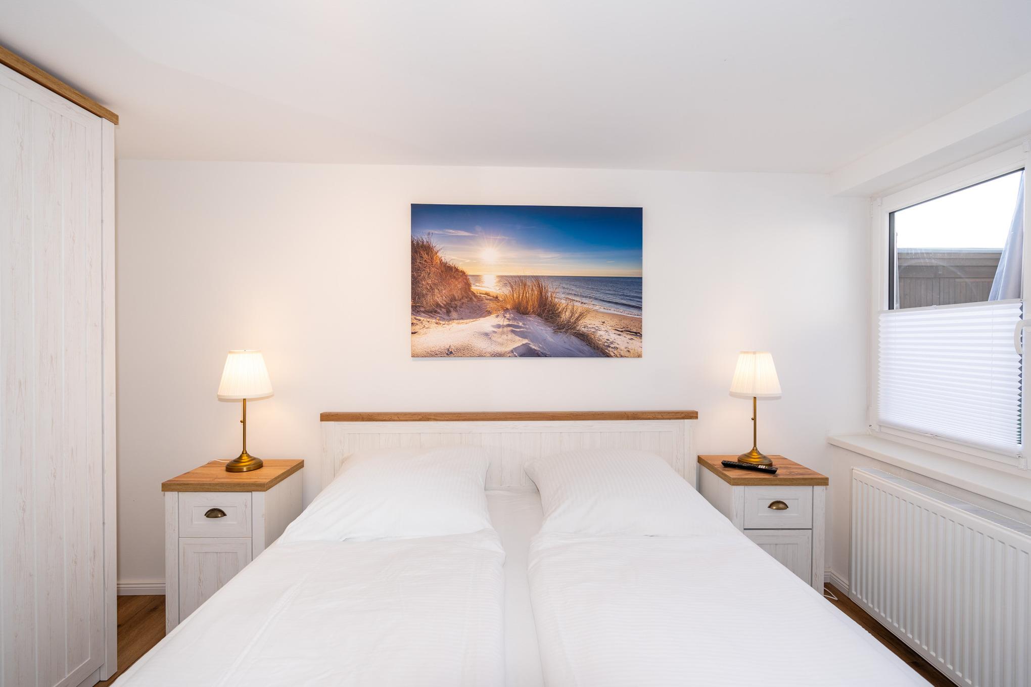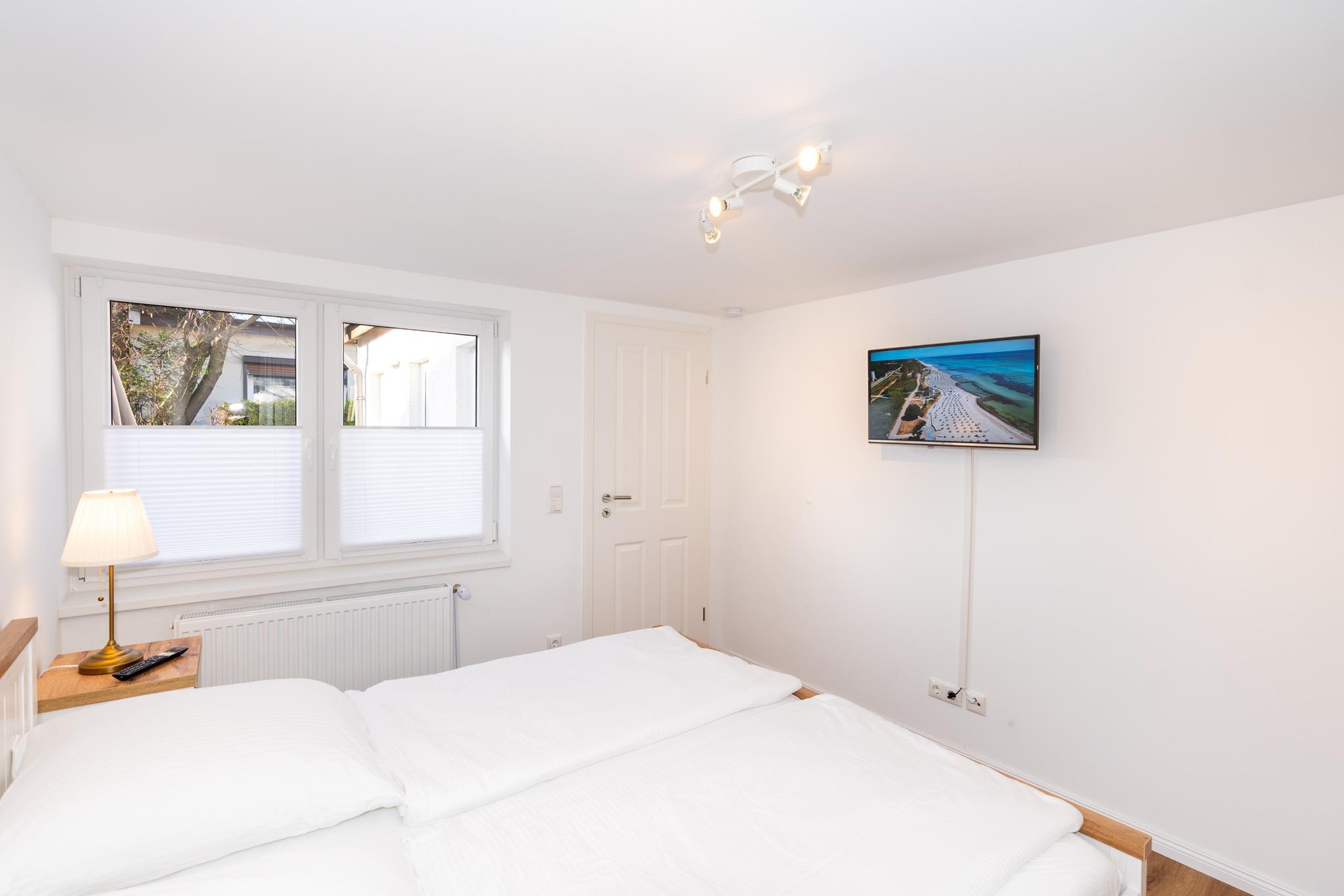 Ihnen stehen 2 Schlafzimmer mit jeweils einem Doppelbett (2x90x200), einem Kleiderschrank und zwei Nachttischen zur Verfügung. Highlight sind die jeweils an der Wand angebrachten Flat-TV.