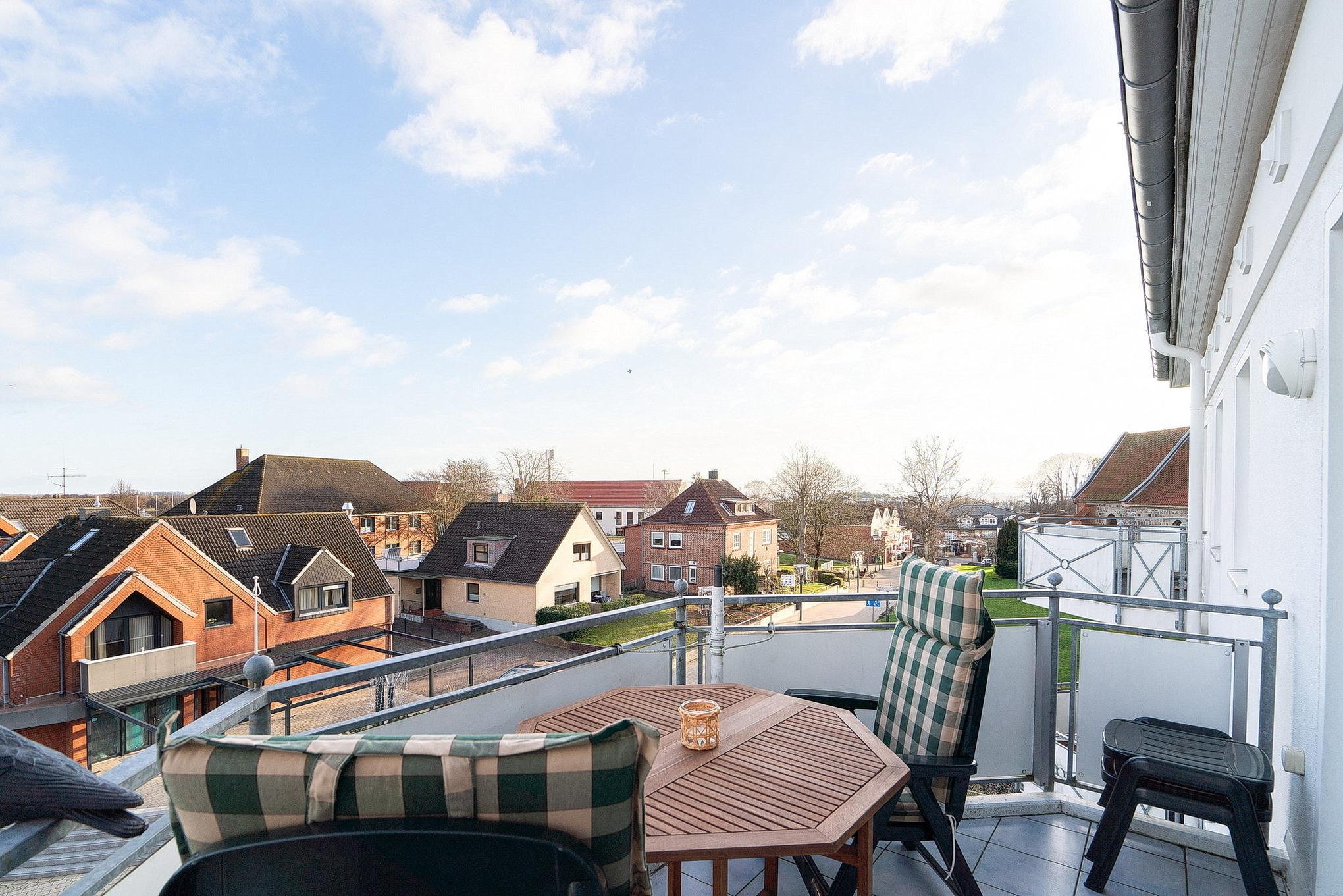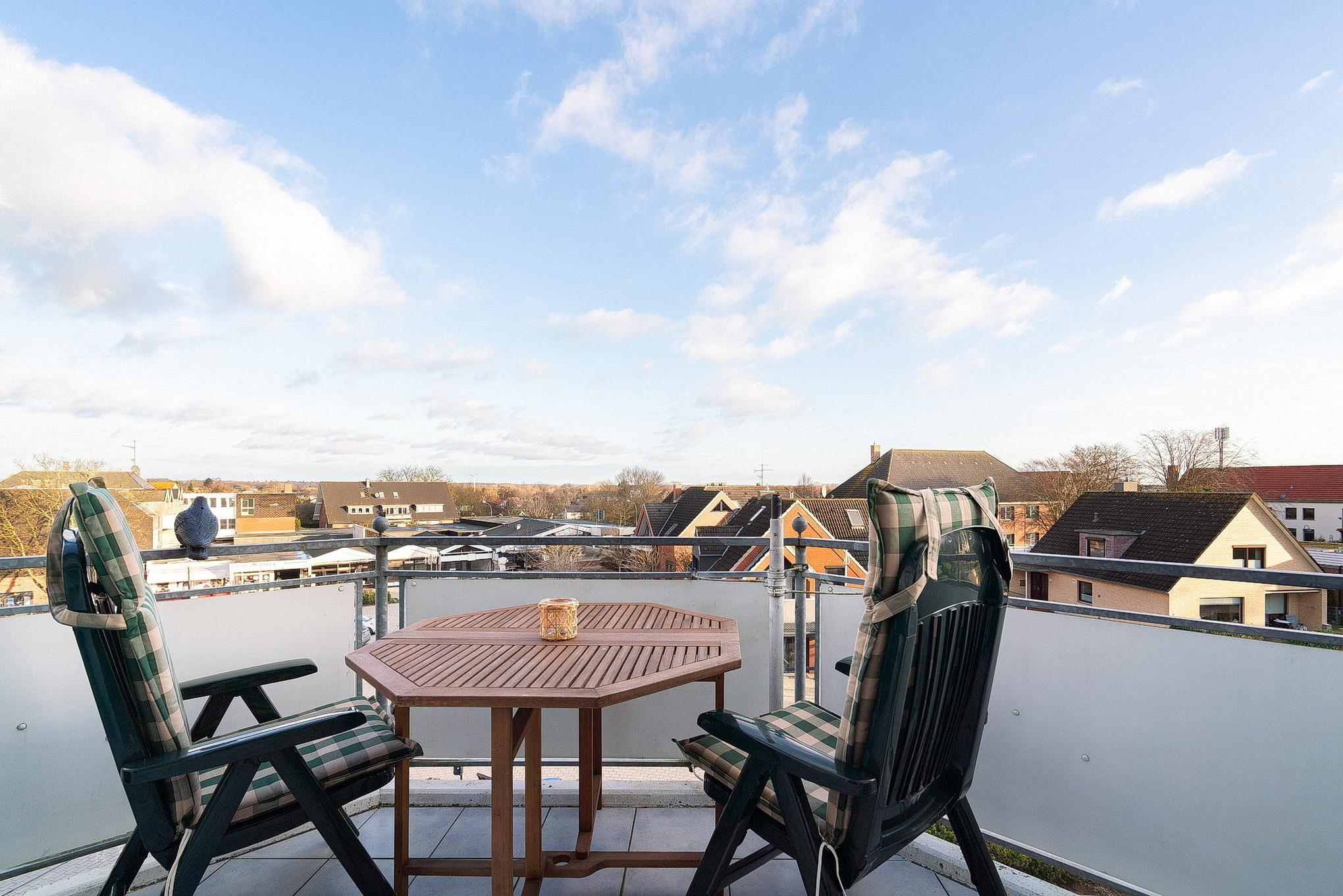 Kleiner Balkon (2,65m²) in nord-östliche Richtung, kostenloses W-Lan, PKW-Stellplatz, Waschmaschine und Trockner gegen Gebühr im Haus.