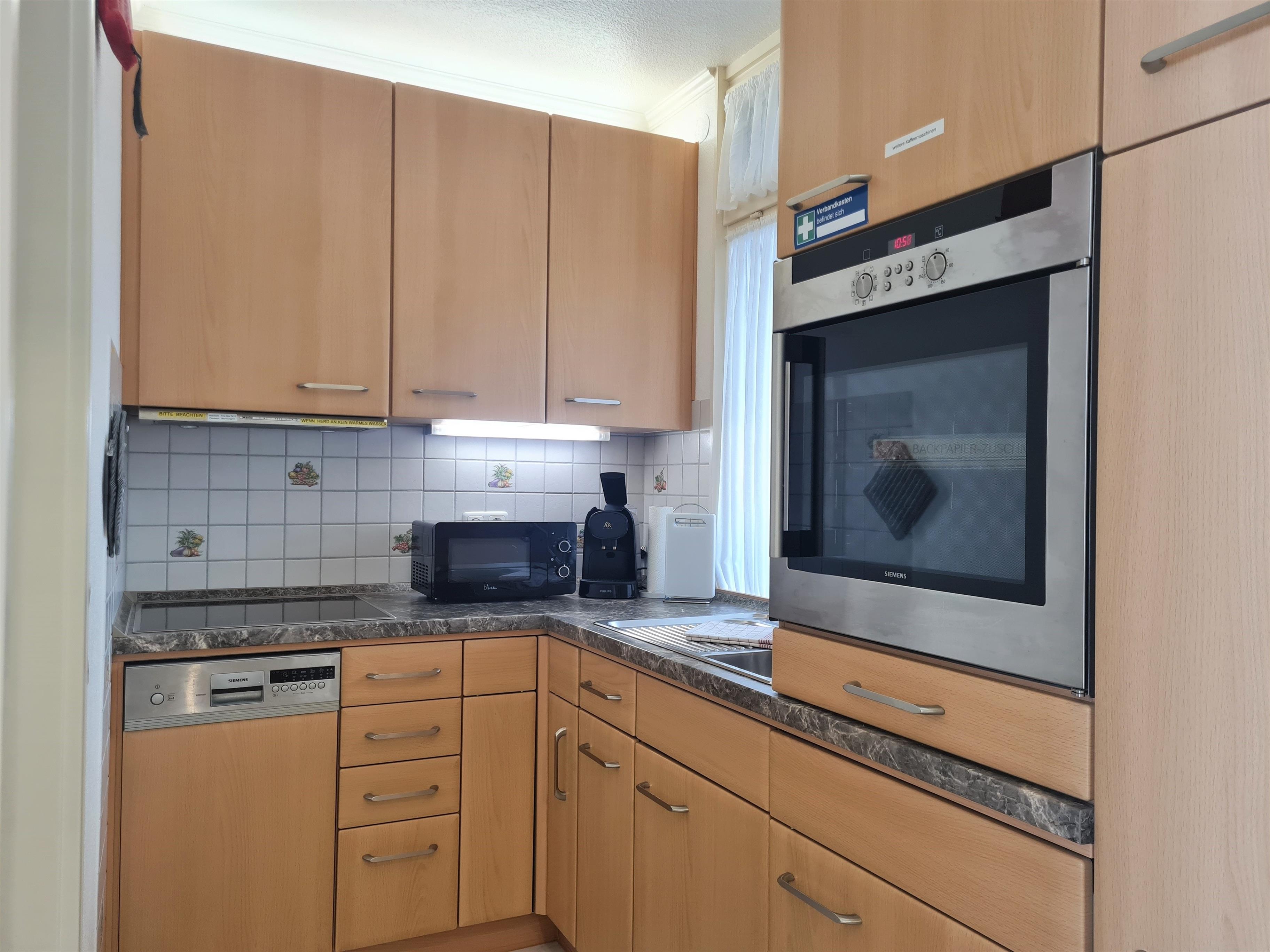 Vom Flur aus erreichen Sie die moderne separate Küche, diese ist u.a. mit Geschirrspülmaschine, Mikrowelle, Kaffee-Vollautomat, Senseo-Kaffee-Padmaschine, Kapsel-Kaffeemaschine, Eierkocher, Mixer/ Pürierstab, Backofen in Arbeitshöhe und weiteren Küchengeräten ausgestattet.