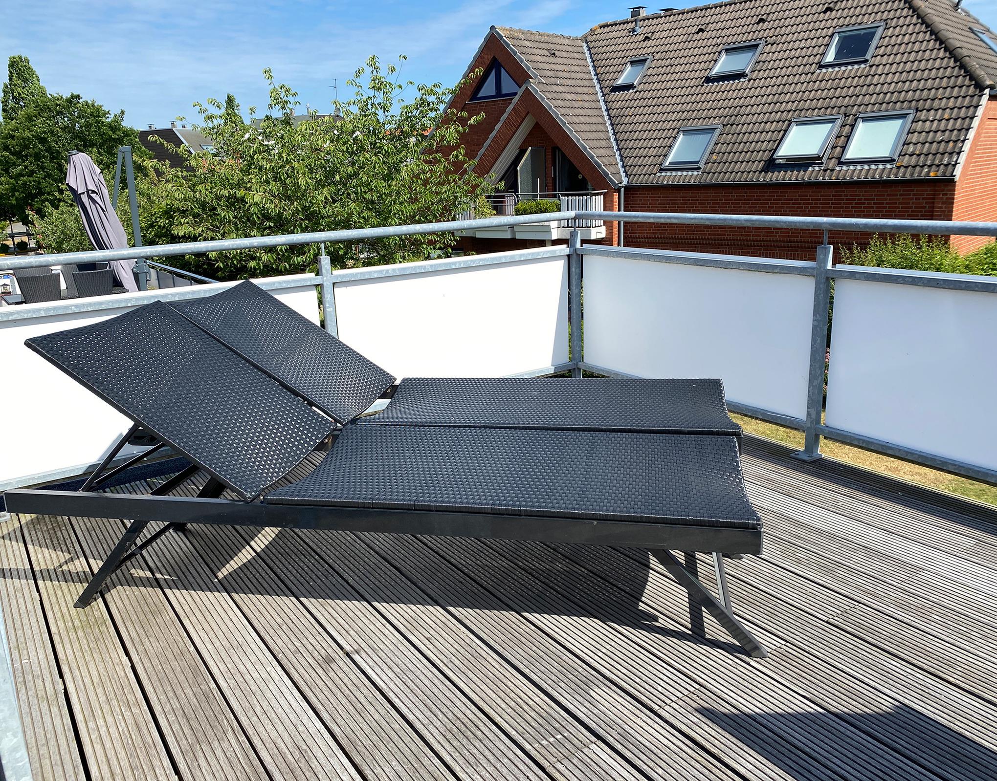 Es wird Ihnen an nichts fehlen: die voll ausgestattete Küche bietet jeglichen Komfort! Von dort aus gelangen Sie auf die 19 qm große Dachterrasse mit hochwertigen Gartenmöbeln, damit Sie die Sonne in vollen Zügen genießen können.