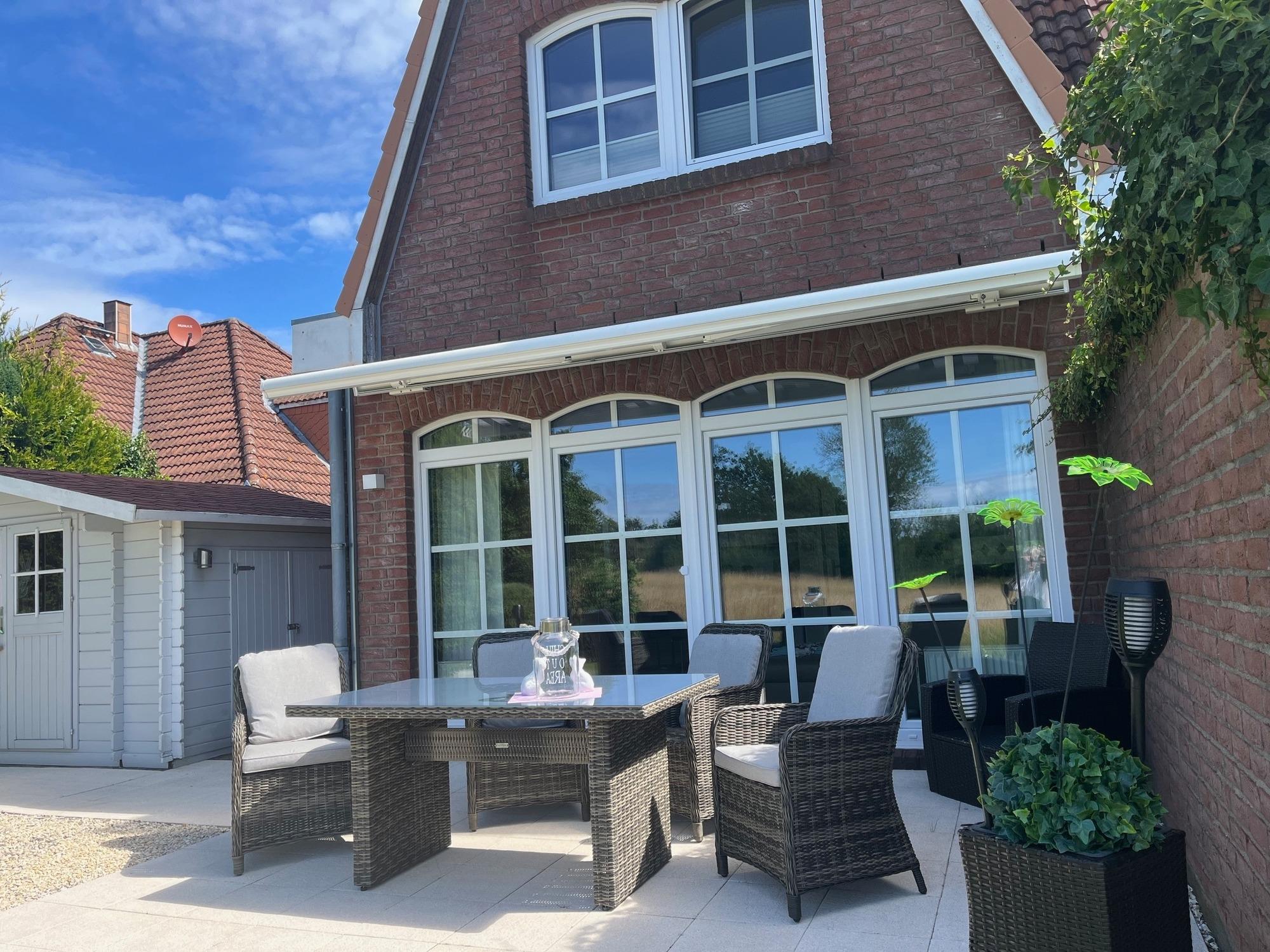 Auf der Terrasse können Sie bei Ihrem Lieblingsgetränk nicht nur am Nachmittag relaxen, sondern auch den Sonnenuntergang genießen.