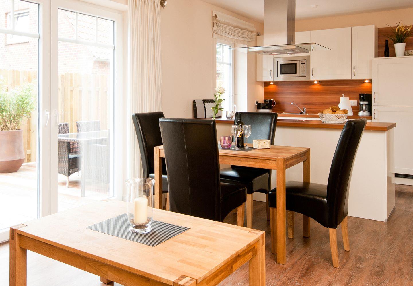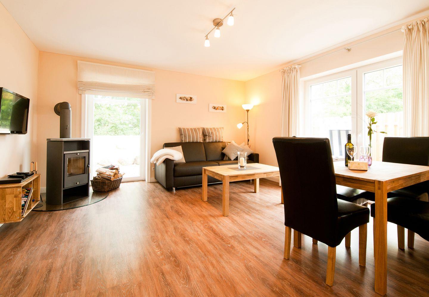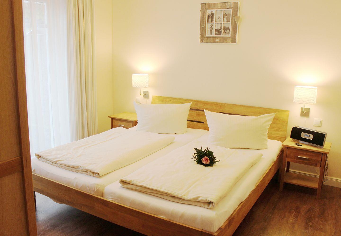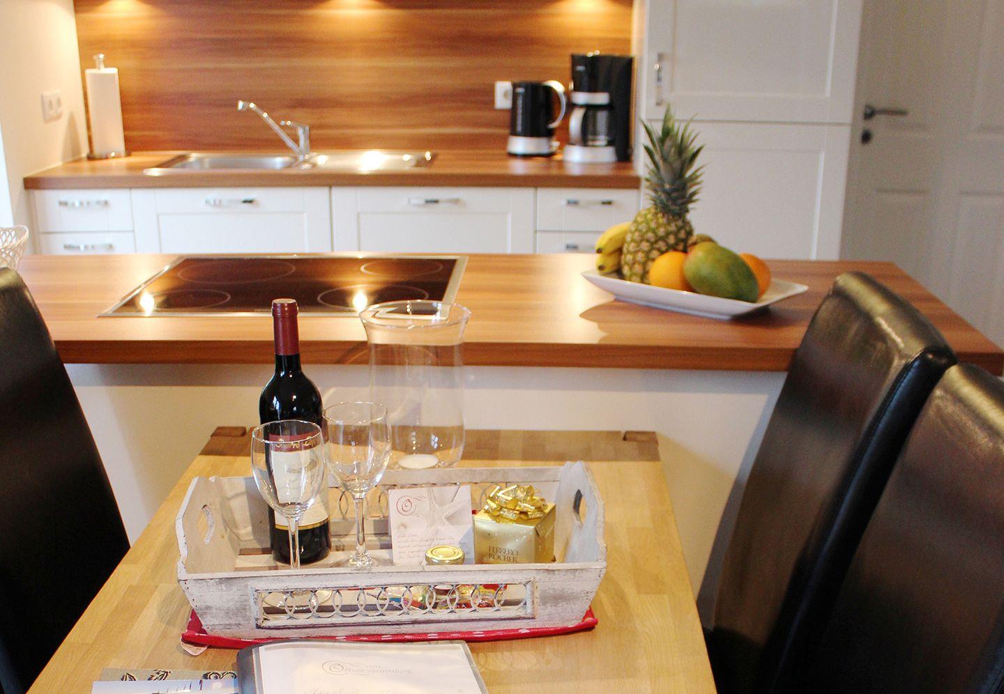Die ruhig gelegene Erdgeschoss Wohnung 'Ankerplatz' mit 55 m² bietet jeglichen Komfort und Luxus für bis zu 2 Personen. Zur Ausstattung gehören: Bad mit Sauna & Whirlwanne, Schlafzimmer mit Doppelbett, offene voll ausgestattete Wohn- Küche, Ledercouch im Wohnzimmer, Flat TV, Blu Ray Player, kostenloser Internet und W-LAN Anschluss, Fußbodenheizung, Safe für Ihre Wertsachen, Ostterrasse mit hochwertigen Gartenmöbeln, Parkplatz direkt am Haus. Das Schlafzimmer mit einem Doppelbett lädt zum gemütlichen Schlafen ein und verfügt über ein zusätzliches Flachbild-TV. Die voll ausgestattete Küche bietet jeglichen Komfort: Spülmaschine, Kaffeemaschine, Toaster, Wasserkocher, Eierkocher, Mikrowelle, Kühl- und Gefrierschrank, Töpfe, Pfannen, Geschirr, Besteck, Salz, Pfeffer, Aluminiumfolie, Backpapier etc. Im Wohnzimmer erwartet Sie ein Flachbildschirm mit DVD Recorder, ein kostenloser WLAN Anschluss um immer Up to Date zu sein, ein dänischer Kaminofen inklusive Holz und die Fußbodenheizung für wohlige Wärme an kalten Tagen. Die Terrasse mit hochwertigen Gartenmöbeln und einem Strandkorb lädt zum Verweilen in der Sonne ein. Alle vier Wohnungen sind Nichtraucherobjekte, allergikergerecht und voll ausgestattet. Wir legen sehr großen Wert auf einen hohen Sauberkeitstandard! Bei uns inklusive: Die Bettwäsche ist bereits im Preis enthalten und auch Strom, Wasser, Heizung, Kaminholz, Anzünder und Feuerzeug, alle Putzmittel (inkl. Geschirrspültabs), Hand-, Dusch- und Saunatücher, sowie Tischwäsche, Toilettenpapier und Küchenrolle. Auf Wunsch legen wir Ihnen Bademäntel (gegen Kaution) in die Wohnung. Ein abschließbarer Abstellraum für Ihre mitgebrachten Fahrräder ist vorhanden, auf Wunsch können Sie bei uns einen Bollerwagen leihen.