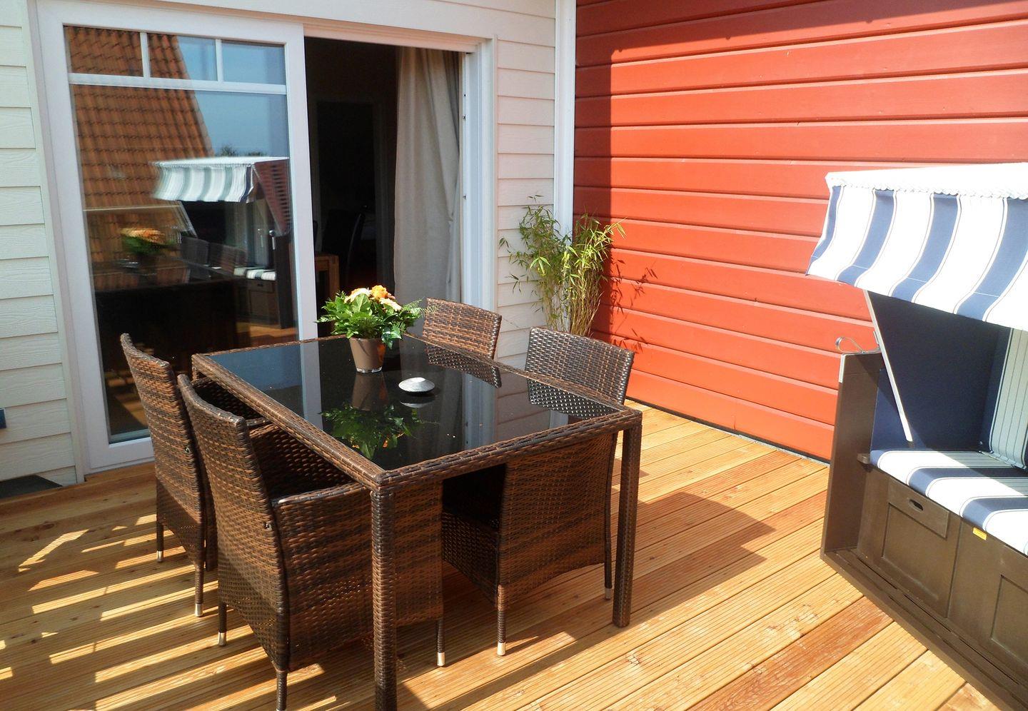 Die ruhig gelegene Wohnung 'Piratennest' mit 85 m² bietet in der ersten Etage jeglichen Komfort und Luxus für 4 Personen. Der angegebene Preis bezieht sich immer auf 2 Erwachsene und 2 Kinder, extra Personen können ggf. auf Anfrage dazu gebucht werden. Zur Ausstattung gehören: Bad mit Sauna und Whirlwanne, Gäste WC, 2 Eltern- Schlafzimmer mit Doppelbett, Kinderzimmer mit 2 Einzelbetten im Dachgeschoss (Galerie), offene voll ausgestattete Wohn- Küche, Kamin inkl. Holz, Flachbildschirm, DVD, kostenloser Internet und W-LAN Anschluss, Fußbodenheizung, Safe für Ihre Wertsachen, große Dachterrasse mit Ostseeblick und hochwertigen Liegen, Westbalkon, Parkplatz direkt am Haus. Die beiden Elternschlafzimmer mit je einem Doppelbett, sowie das Kinderzimmer mit zwei Einzelbetten, laden zum gemütlichen Schlafen ein. Die voll ausgestattete Küche bietet jeglichen Komfort: Spülmaschine, Kaffeemaschine, Toaster, Wasserkocher, Eierkocher, Mikrowelle, Kühl- und Gefrierschrank, Töpfe, Pfannen, Geschirr, Besteck, Salz, Pfeffer, Aluminiumfolie, Backpapier etc. gehören zu unserer Standartausstattung. Im Wohnzimmer erwartet Sie ein Flachbildschirm mit DVD Recorder, ein kostenloser WLAN Anschluss um immer Up to Date zu sein, ein dänischer Kaminofen inklusive Holz und die Fußbodenheizung für wohlige Wärme an kalten Tagen.