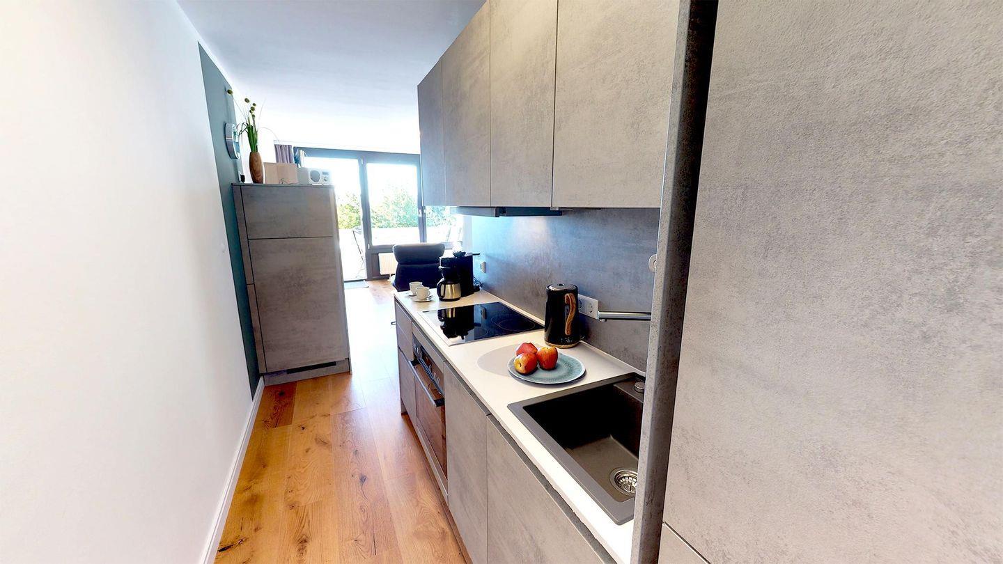 Durch die offene, modern ausgestattete Küche gelangen Sie in den gemütlichen Wohnbereich mit einer kleinen Essecke und einem einladenden Sofabereich. Ein Schlafzimmer verfügt über ein Einzelbett und ein Hochbett sowie einen Flachbildfernseher. Im zweiten Schlafzimmer erwartet Sie ein großes Doppelbett, ein Flachbildfernseher und ein Kleiderschrank. Das moderne Badezimmer mit Dusche und Sauna rundet die Wohnung ab (geringe Extragebühr durch Münzeinwurf, max. 2,00€ pro Saunagang).