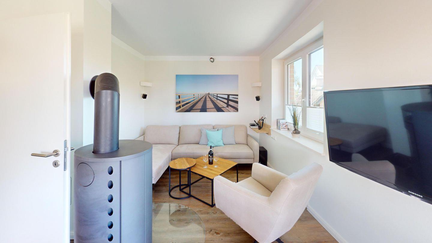 Moderne, gemütliche Ferienwohnung mit Dachterrasse, Sauna und Kamin in Strandnähe