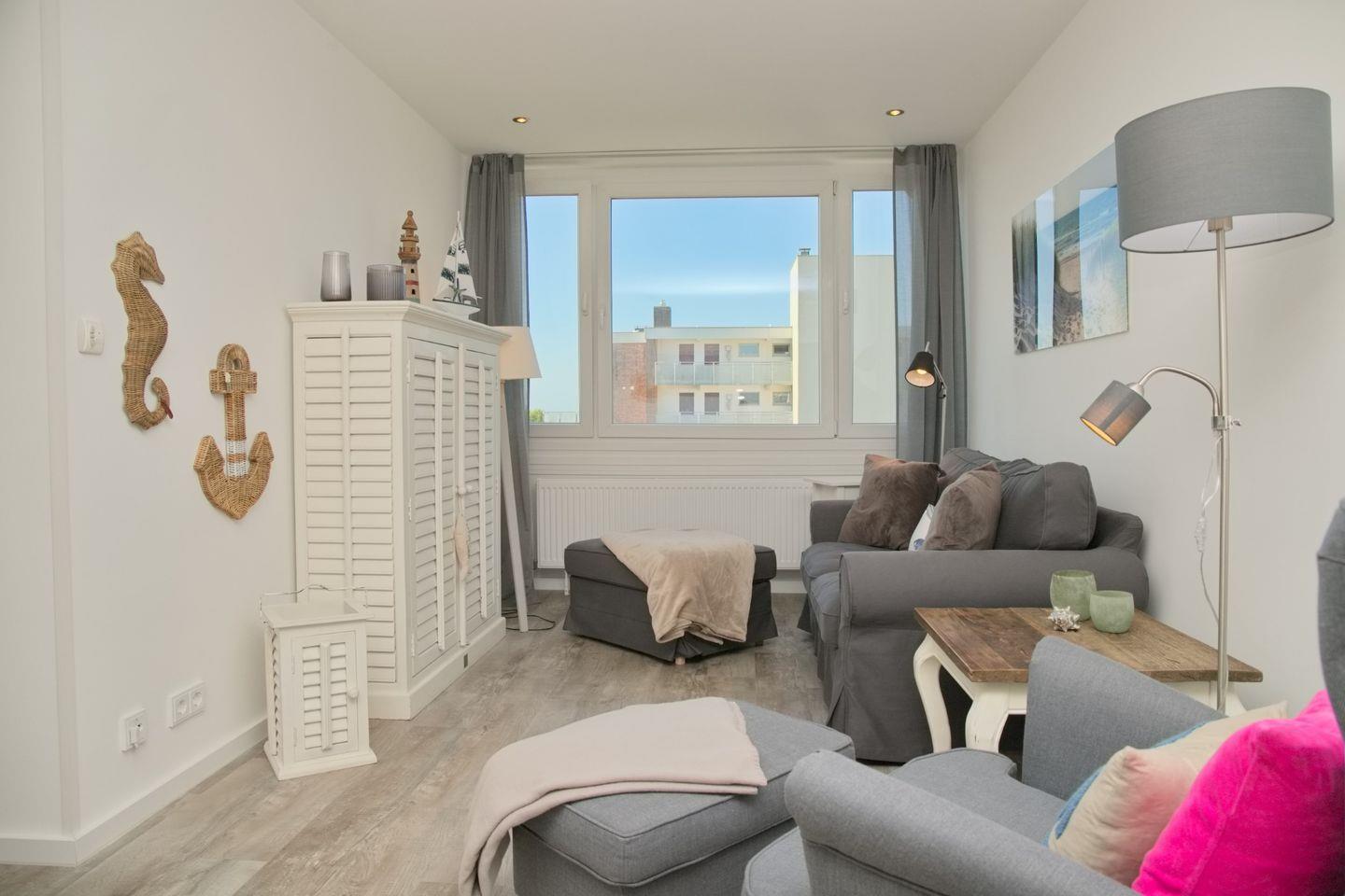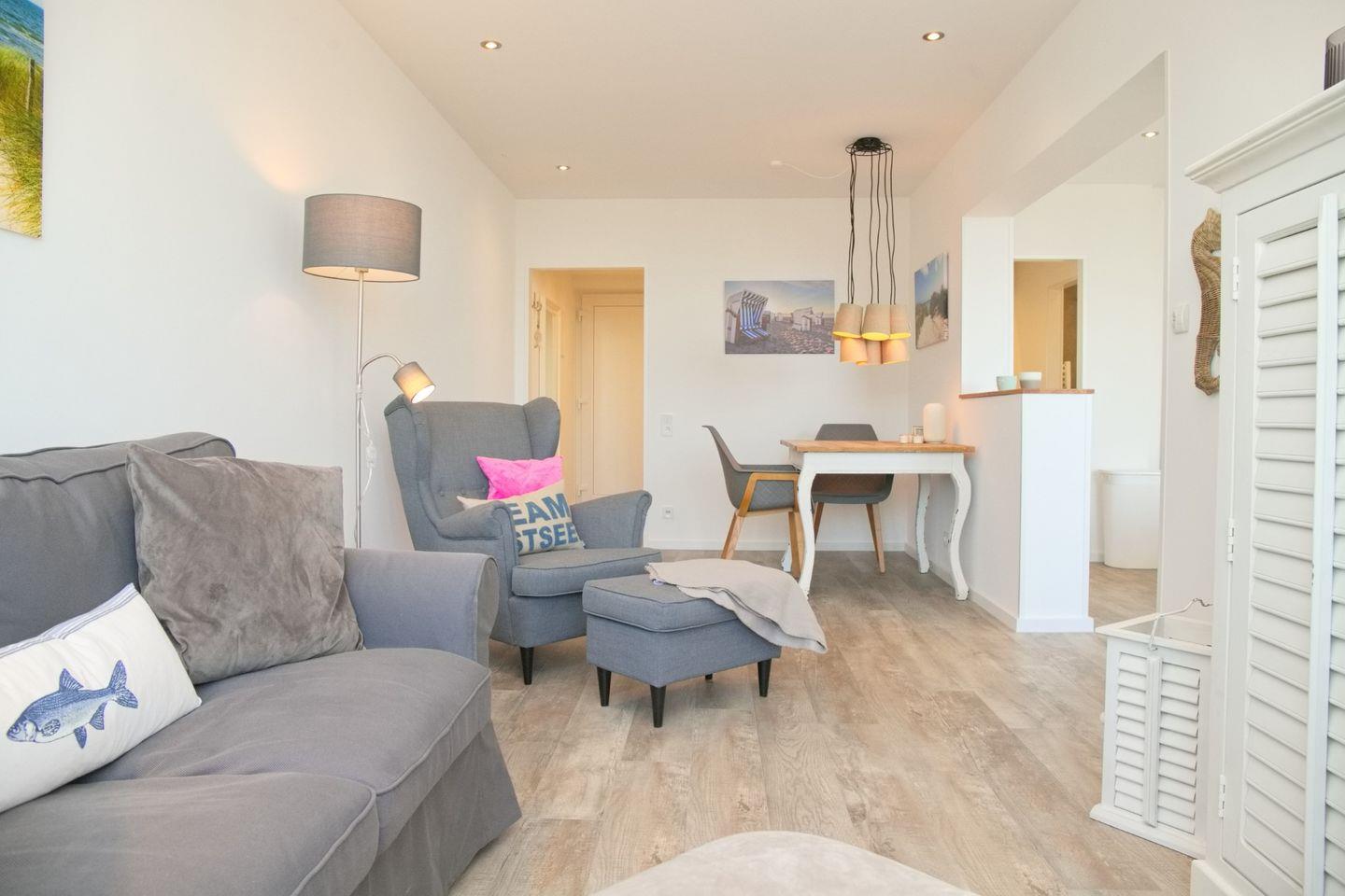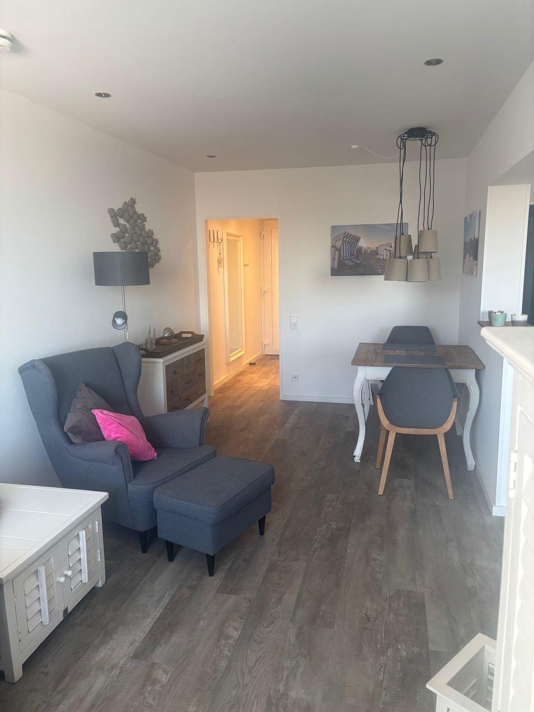 Treten Sie ein und lassen Sie sich von der Schönheit dieser Wohnung, welche im Mai 2023 komplett saniert wurde, verzaubern. Der geräumige und helle Wohnbereich lädt zum Entspannen ein und bietet einen atemberaubenden Blick auf die See. Setzen Sie sich auf den gemütlichen Balkon mit Liegestuhl und genießen Sie die Sonne, während Sie den malerischen Blick auf das Wasser und die umliegende Landschaft einfangen. Die elektrische Markise ermöglicht es Ihnen, die Sonne nach Belieben zu genießen oder sich im Schatten zu entspannen.