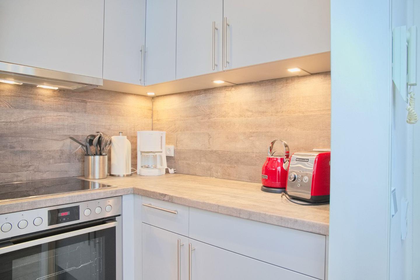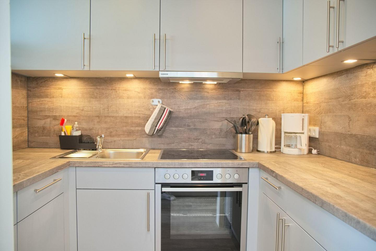 In der gut ausgestatteten Küche können Sie Ihre kulinarischen Fähigkeiten entfalten. Ein Geschirrspüler ermöglicht es Ihnen, die Küchenarbeit mühelos zu erledigen, während der Kühlschrank mit Gefrierfach genügend Platz für Ihre Lebensmittel bietet. Das Cerankochfeld und der Backofen stehen Ihnen zur Verfügung, um köstliche Mahlzeiten zuzubereiten. Eine Kaffeemaschine, ein Wasserkocher und ein Toaster sorgen dafür, dass Sie Ihren Tag mit einer Tasse Kaffee oder einem leckeren Frühstück beginnen können.