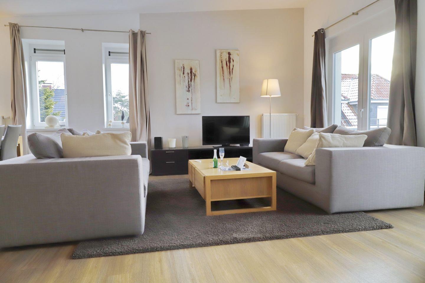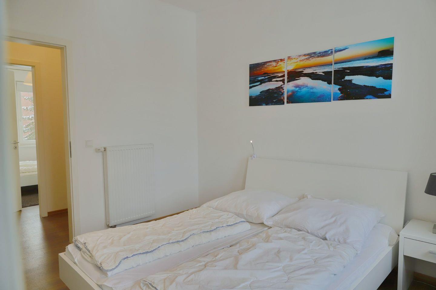 Helle und moderne Ferienwohnung in ruhiger Sackgassenlage mit Dachterrasse in Süd-/Westlage, kostenfreier Internetnutzung und Stellplatz.