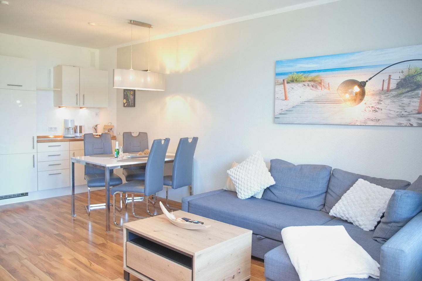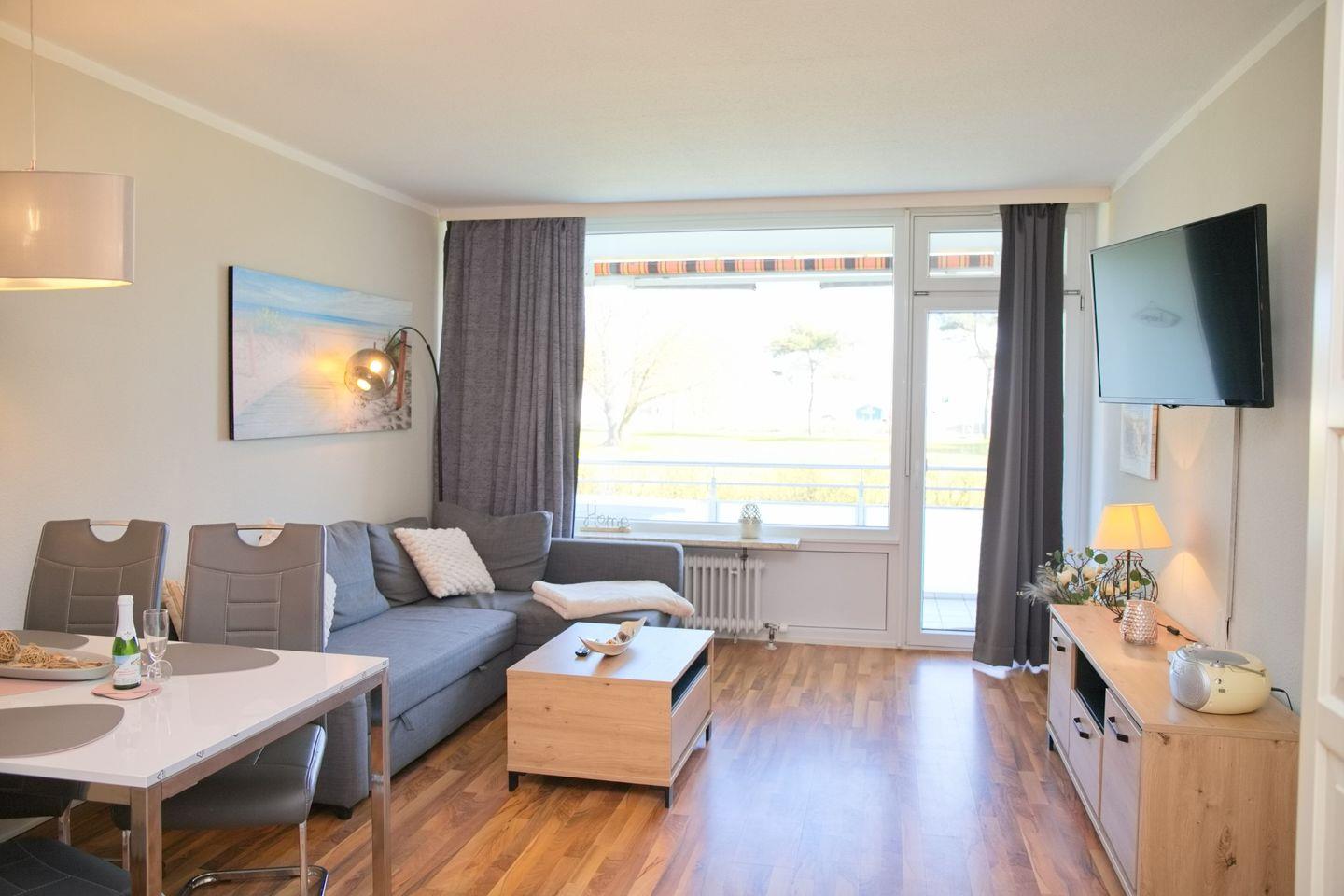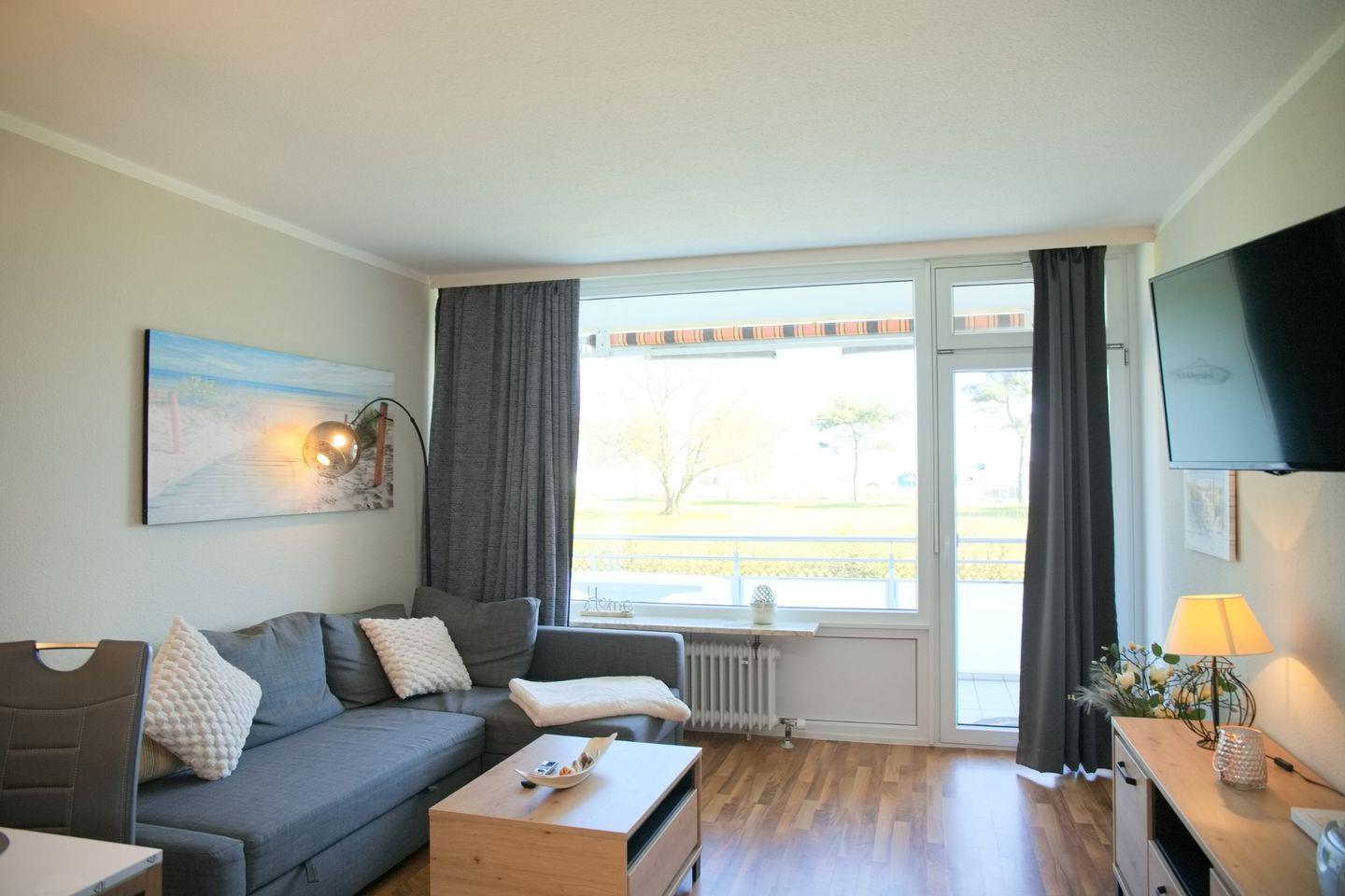 Moderne 2 Zimmer Ferienwohnung direkt an der Strandpromenade mit möblierten Südbalkon und schönem Seeblick. Nur ein Steinwurf vom Meer entfernt.