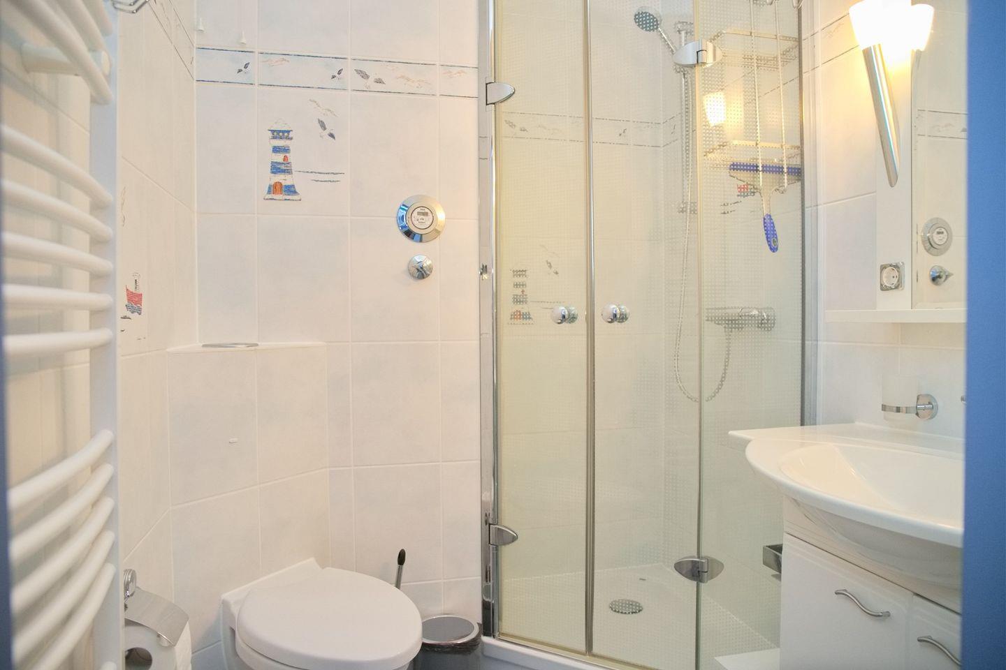 Das moderne Badezimmer ist ausgestattet mit einer Eckdusche, einem WC, einem Waschtisch und einem beleuchteten Spiegel. Hier starten Sie erfrischt in den Tag. In dieser Wohnung ist das Rauchen nicht gestattet, aber Haustiere sind herzlich willkommen. WLAN wird demnächst verfügbar sein. Ihr Auto können Sie bequem in der Garage Nr. 8 parken. Für die allgemeine Nutzung stehen Ihnen zudem eine Waschmaschine und ein Trockner zur Verfügung, die mit 50-Cent-Münzen bedient werden. Ein Fahrradkeller mit Stromanschluss rundet das Angebot ab.