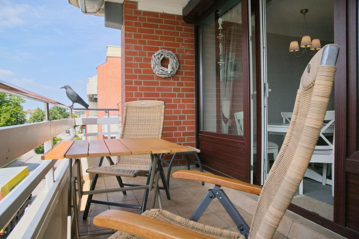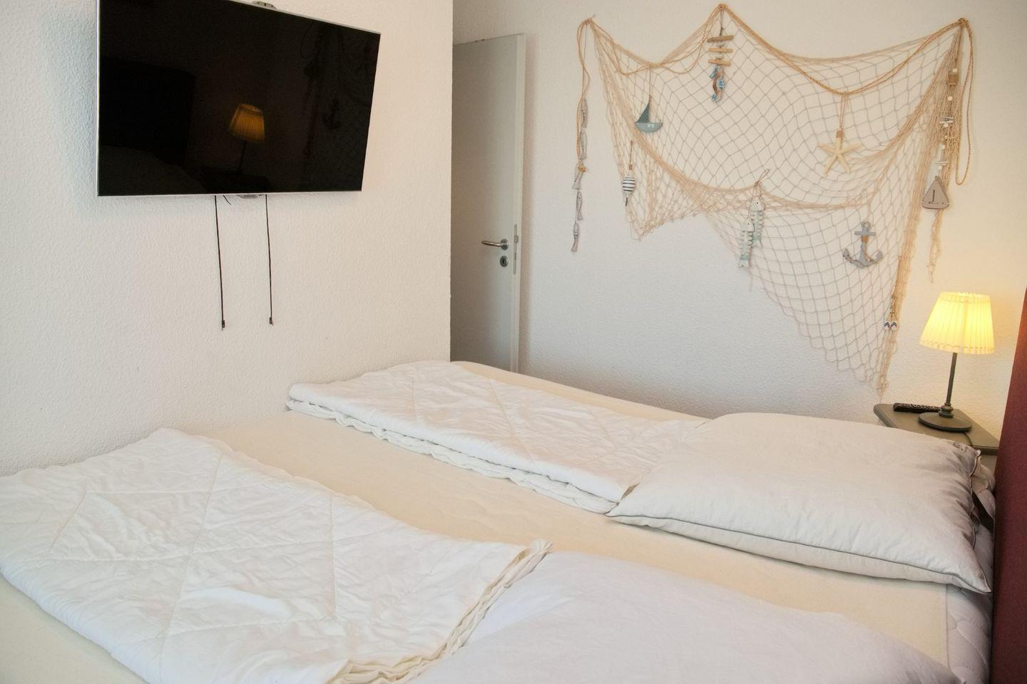 Willkommen in dieser gemütlichen 2-Zimmer-Wohnung in der 3. Etage, die ideal für bis zu 4 Erwachsene und maximal 2 Hunde geeignet ist. Diese Ferienwohnung bietet Ihnen nicht nur einen möblierten Balkon mit Markise und tollem seitlichen Meerblick, sondern auch alle Annehmlichkeiten, die Sie für einen erholsamen Urlaub benötigen. Das großzügige Wohnzimmer lädt mit einer großen Wohnlandschaft mit integrierter Schlaffunktion (Liegefläche 140x200 cm), einem Flachbild-TV und einer Kommode zum Entspannen ein. In der angrenzenden Essecke finden 4 Personen bequem Platz für gemeinsame Mahlzeiten und gesellige Stunden.