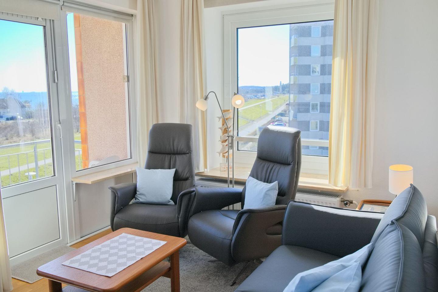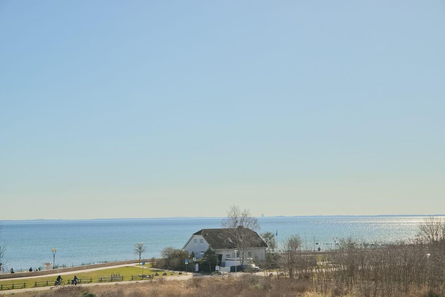 Komfortable Ferienwohnung direkt hinter dem Deich mit möblierten Südbalkon und traumhaften Panoramablick über die gesamte Lübecker Bucht.